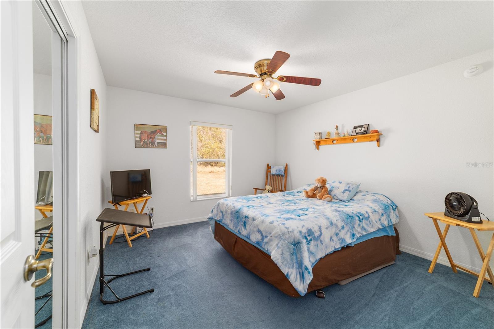 Country living with room for everyone—just minutes from town! This spacious 6-bedroom, 3-bath ranch on 3 fully fenced acres with a gated entrance offers the ideal blend of privacy, flexibility, and functionality. With over 2,600 square feet of living space and a triple-split floor plan, the layout is perfectly suited for multi-generational living or a potential in-law setup. One wing features 2 bedrooms and 1 bath, while the opposite wing offers 3 additional bedrooms and a bath, creating excellent separation of space for family or guests. Step inside to an inviting entry foyer that opens to a light-filled living room with vaulted ceilings and a cozy fireplace. The kitchen is well-appointed with granite countertops, stainless-steel appliances, a closet pantry, breakfast bar, and both formal and casual dining areas to suit everyday living and entertaining alike. The primary suite is privately tucked away and showcases a pop-up tray ceiling, French doors leading to the pool, a generous walk-in closet, and an ensuite bath with garden tub, dual vanities with seated vanity space, and a roll-in shower.