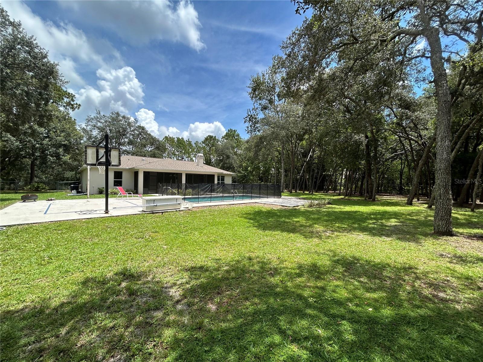 Beautiful Pine Ridge Pool home on 1.07 acres. Porcelain tile throughout, recently painted, open floor plan with eat in kitchen. Spacious bedrooms, main has dual sided wood burning fireplace shared with living room. Main bathroom has dual sink vanity with large walk in shower, and large walk in closet. Kitchen cabinets have granite countertops, pantry, dining area. Laundry room has extra storage cabinets with utility sink. Plenty of nook shelving in living room for personal momentos. Peaceful grove like backyard with room for camper and boat parking. 2 sheds. Pool size is 14’x28’ with removable pet fencing. Screened in patio, dog run. Sprinkler system, wired for generator. Appliances stay. Club house, tennis and pickle ball courts. Quiet setting with shopping, hospitals, restaurants, boating, fishing, kayaking, beaches, nearby. Easy access to Suncoast Parkway. MOVE-IN ready. LOCKBOX.