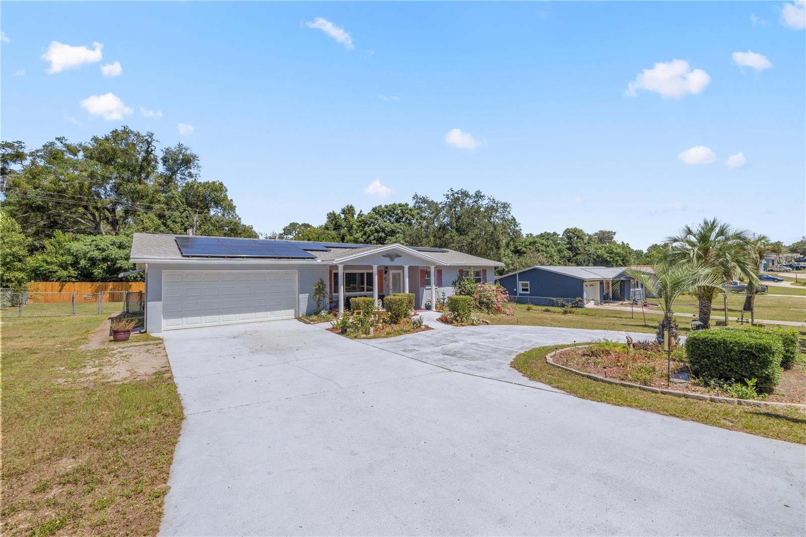 Welcome to your dream home! This charming three-bedroom, two-bathroom residence offers modern comforts and convenient living. Situated close to the Suncoast Parkway and just minutes from all the best shopping in town, this home boasts an unbeatable location. Step inside to find a beautifully remodeled kitchen, perfect for the home chef, featuring sleek countertops, updated appliances, and ample storage space. The spacious living areas are ideal for both relaxation and entertaining guests. The home is move-in ready with a roof installed in 2023, an air conditioning system that is less than three years old, and a hot water heater replaced within the last seven years, ensuring your comfort and peace of mind. Additionally, the house is equipped with solar panels that power the entire home, installed five years ago with a 25-year warranty, providing sustainable and cost-effective energy. Outside, enjoy a fully fenced backyard, offering privacy and a safe space for family and pets to play. This home combines modern updates with practical features, making it the perfect place for your family to create lasting memories. Don’t miss the opportunity to make this house your new home!