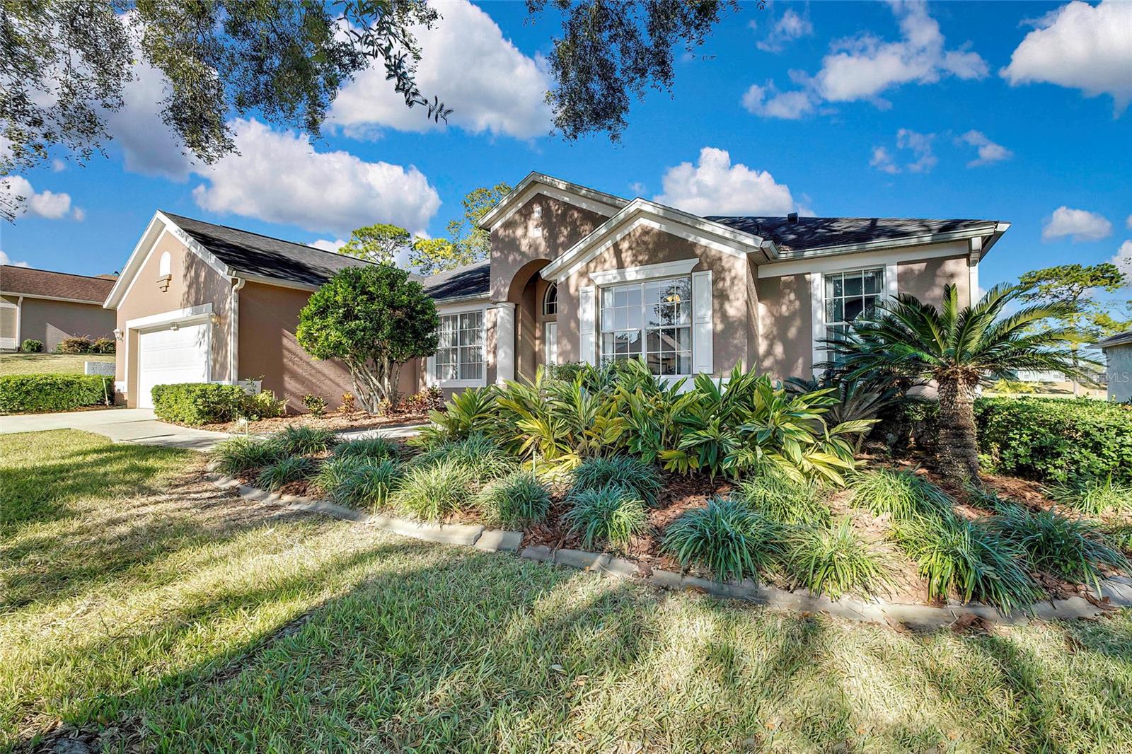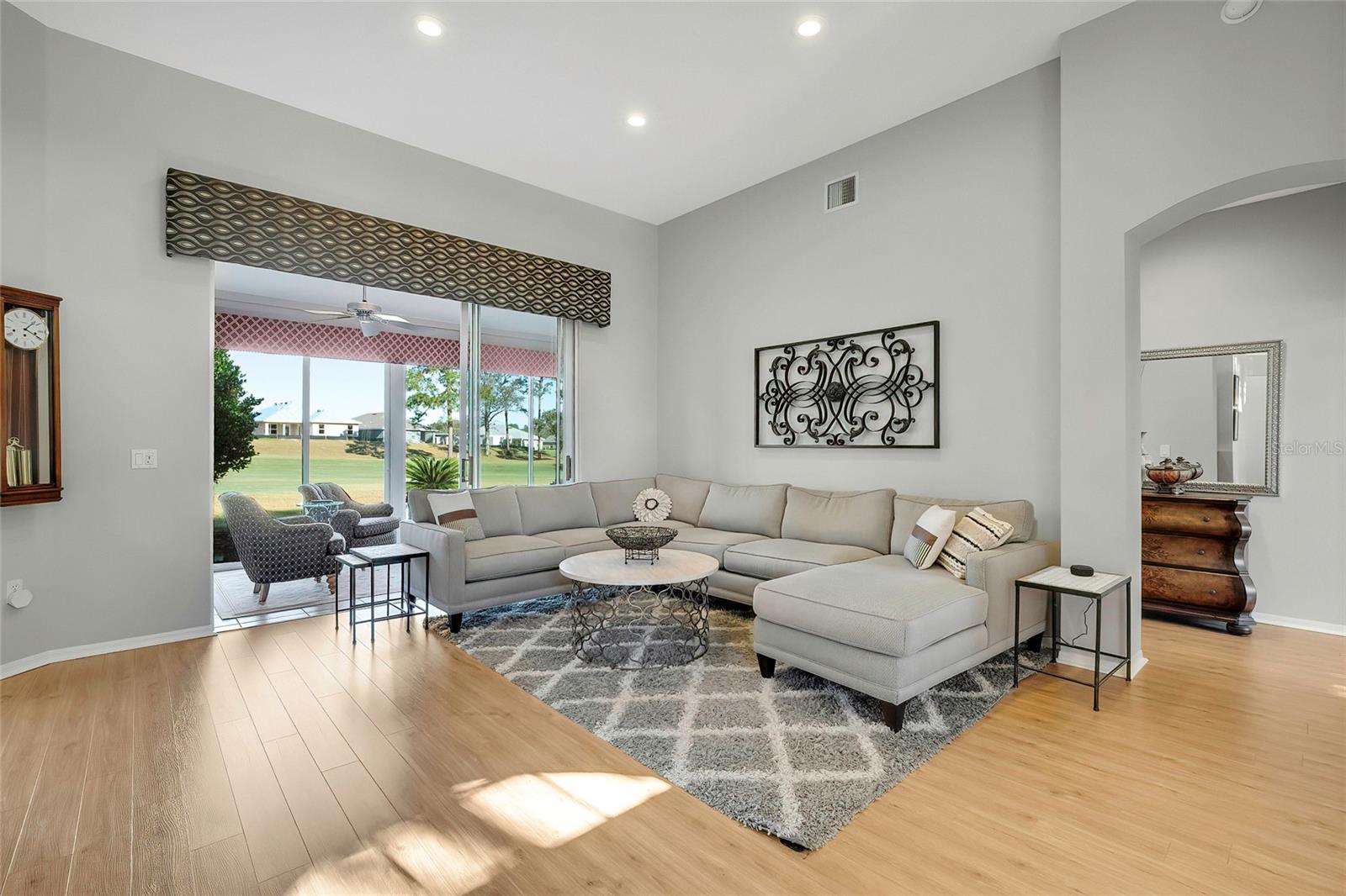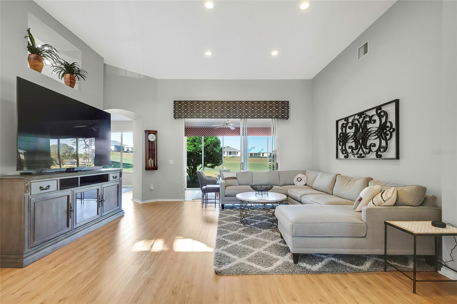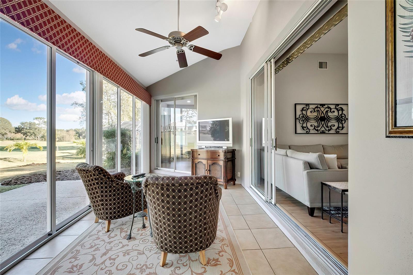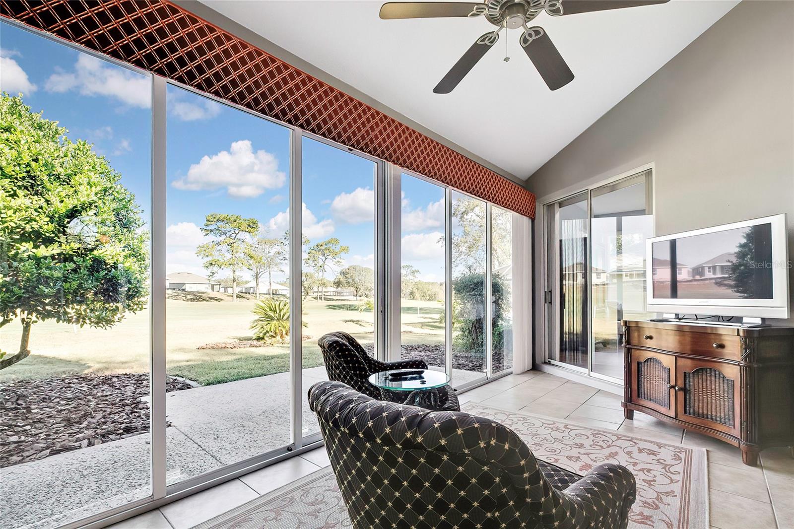 SELLER IS OFFERING 1-YEAR HOME WARRANTY!! Welcome to this stunning, fully furnished 3-bedroom, 2-bathroom block home nestled in the desirable Laurel Ridge community, directly on the fairway of Twisted Oaks Golf Course. This turnkey property is move-in ready, offering an exceptional opportunity for snowbirds or those seeking their perfect forever home. Breathtaking golf course views fill the home with abundant natural light, streaming through large windows. The versatile floor plan includes a formal dining room, an eat-in kitchen, a spacious living room, and a cozy family room. The third bedroom is currently used as an office but can easily be converted back into a bedroom. The primary suite features a sitting area, dual sinks, and an accessible, no-curb walk-in shower. Seamless luxury vinyl plank flooring throughout the home enhances its elegant feel. The air-conditioned, enclosed sunporch offers additional living space with panoramic views of the golf course—a perfect spot to relax and unwind. The beautifully landscaped yard includes a sprinkler system and decorative curbing, adding to the home’s curb appeal. Whether you’re looking for a seasonal retreat or a forever home, this property offers the ultimate blend of luxury, comfort, and convenience. Schedule your private showing today and experience Laurel Ridge living at its finest! Experience serene, golf course community living—schedule your showing today!