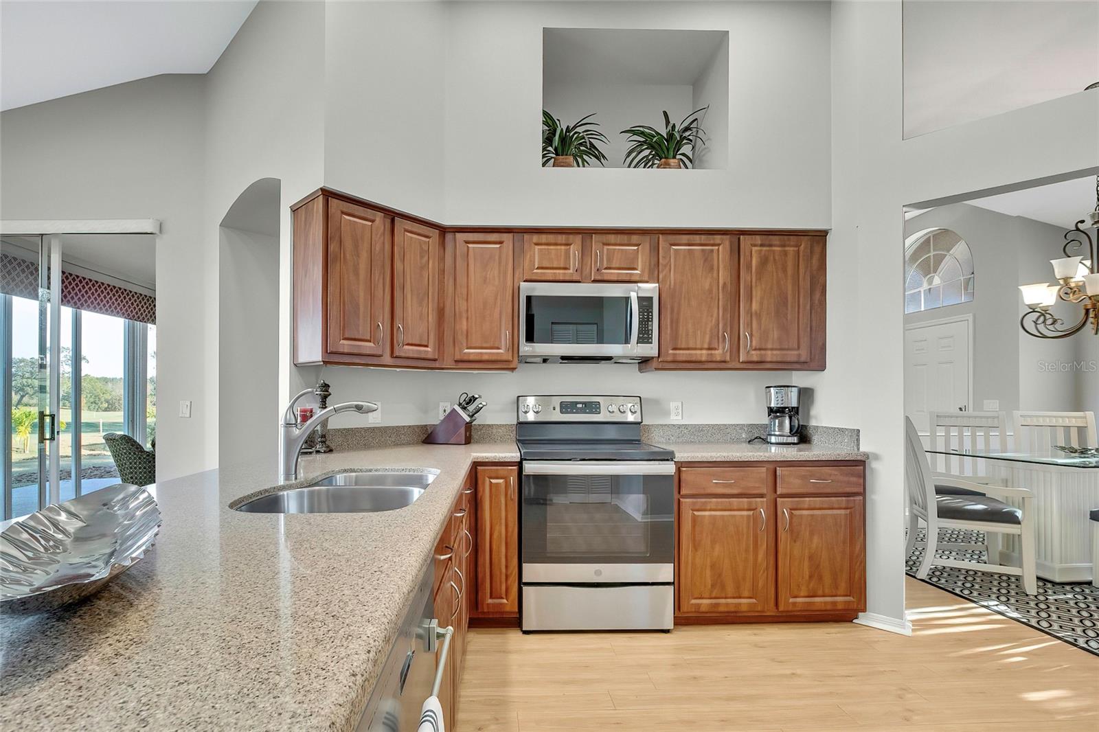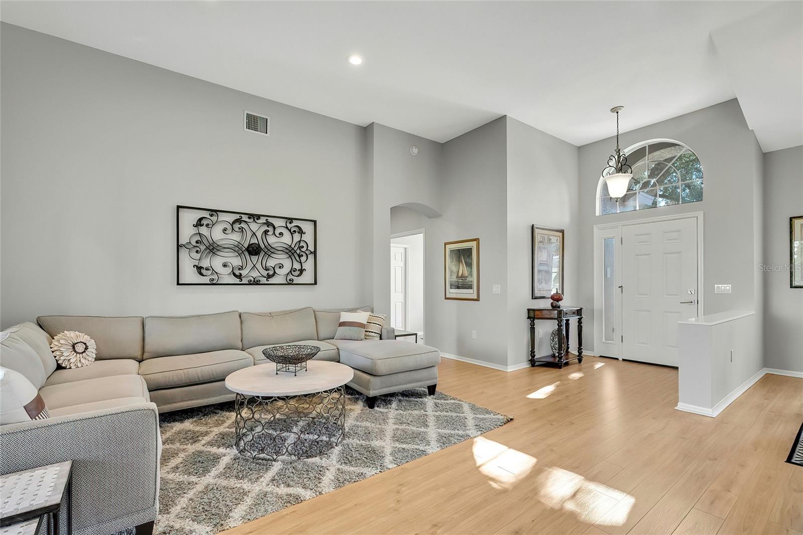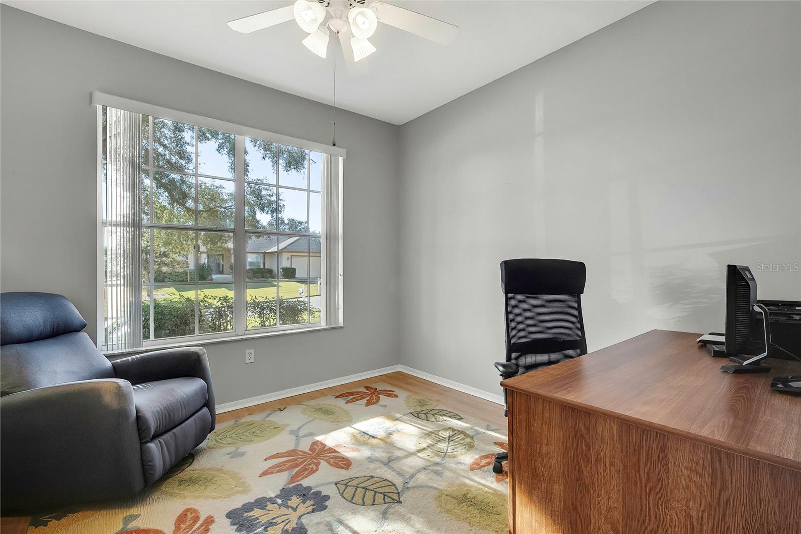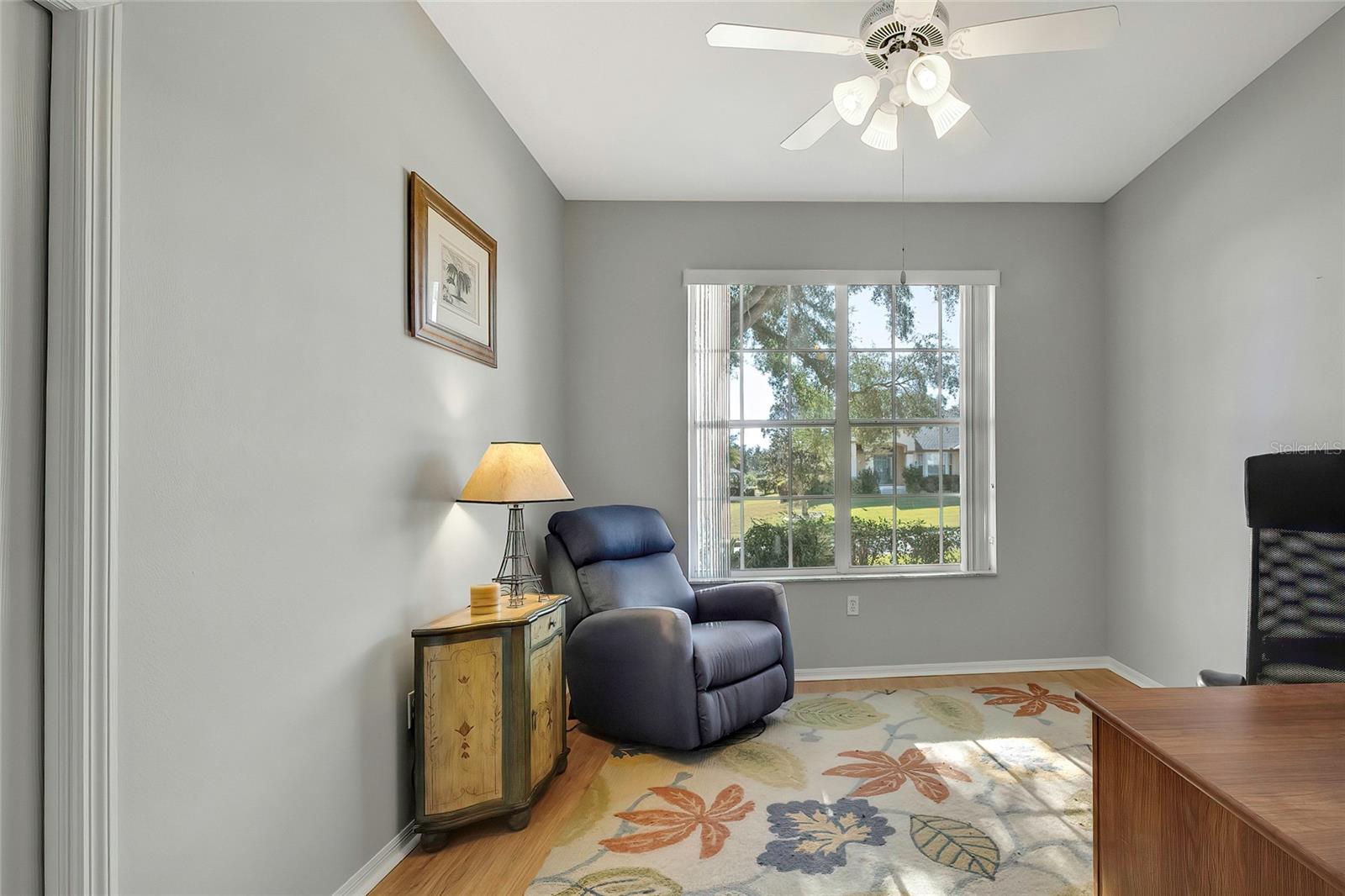 SELLER IS OFFERING 1-YEAR HOME WARRANTY!! Welcome to this stunning, fully furnished 3-bedroom, 2-bathroom block home nestled in the desirable Laurel Ridge community, directly on the fairway of Twisted Oaks Golf Course. This turnkey property is move-in ready, offering an exceptional opportunity for snowbirds or those seeking their perfect forever home. Breathtaking golf course views fill the home with abundant natural light, streaming through large windows. The versatile floor plan includes a formal dining room, an eat-in kitchen, a spacious living room, and a cozy family room. The third bedroom is currently used as an office but can easily be converted back into a bedroom. The primary suite features a sitting area, dual sinks, and an accessible, no-curb walk-in shower. Seamless luxury vinyl plank flooring throughout the home enhances its elegant feel. The air-conditioned, enclosed sunporch offers additional living space with panoramic views of the golf course—a perfect spot to relax and unwind. The beautifully landscaped yard includes a sprinkler system and decorative curbing, adding to the home’s curb appeal. Whether you’re looking for a seasonal retreat or a forever home, this property offers the ultimate blend of luxury, comfort, and convenience. Schedule your private showing today and experience Laurel Ridge living at its finest! Experience serene, golf course community living—schedule your showing today!