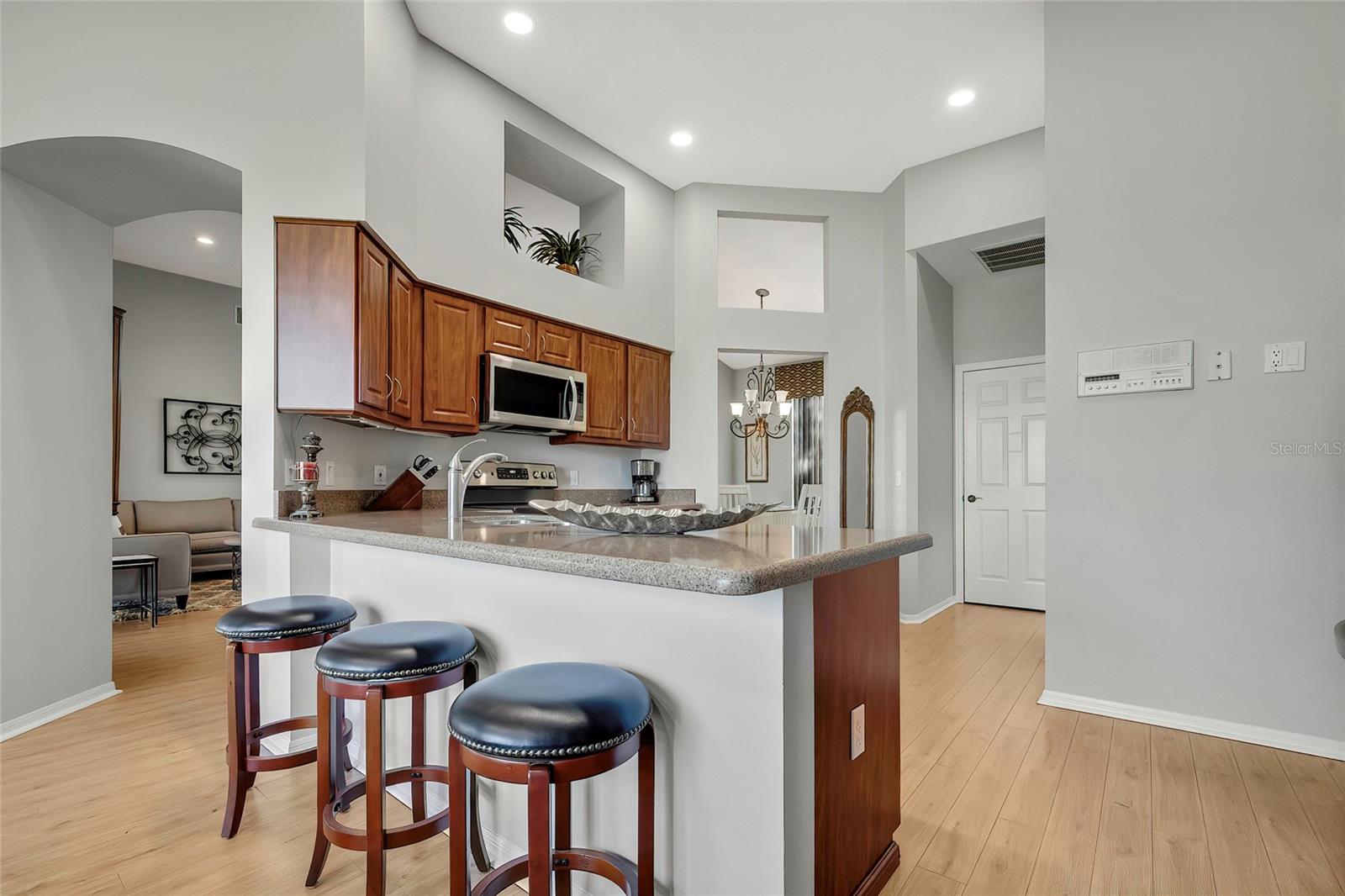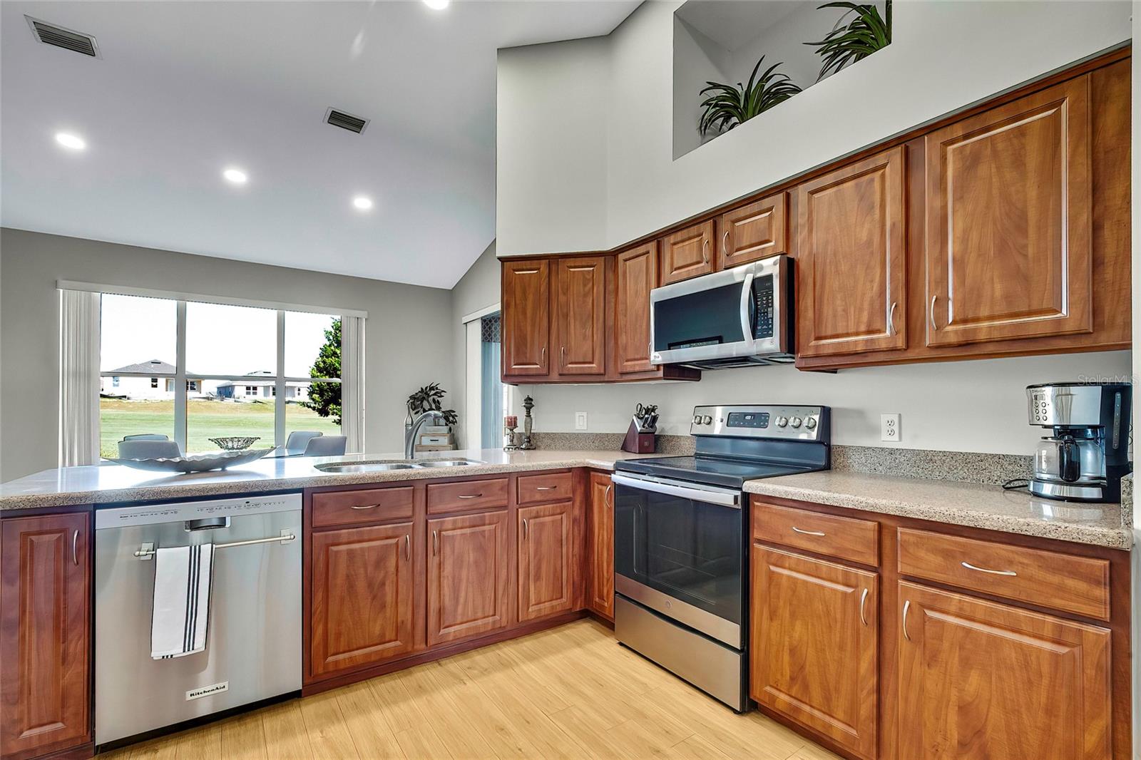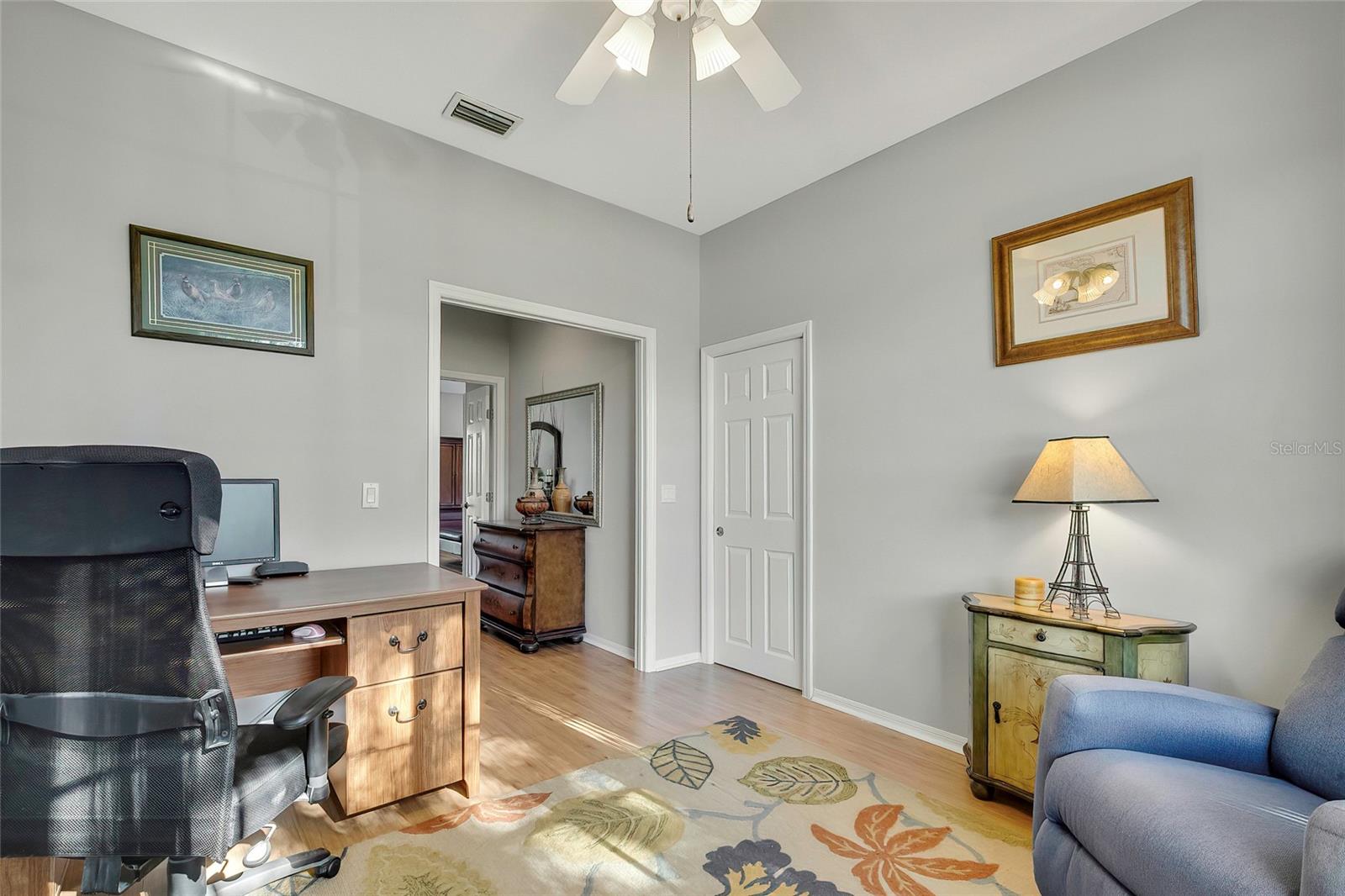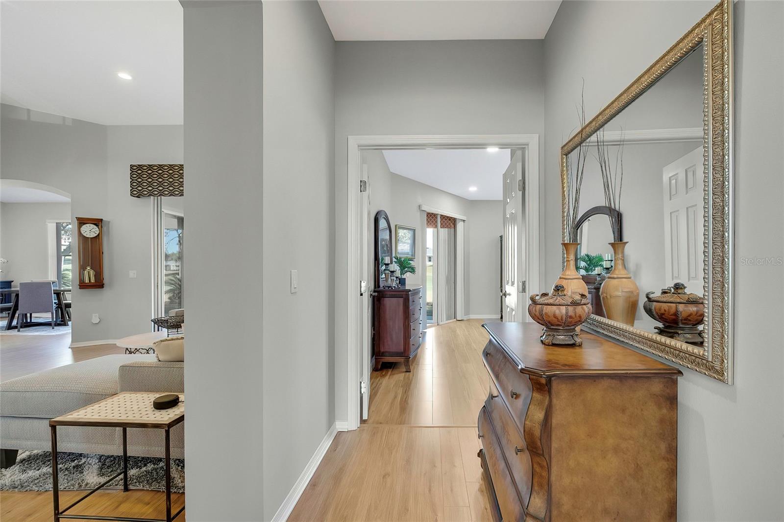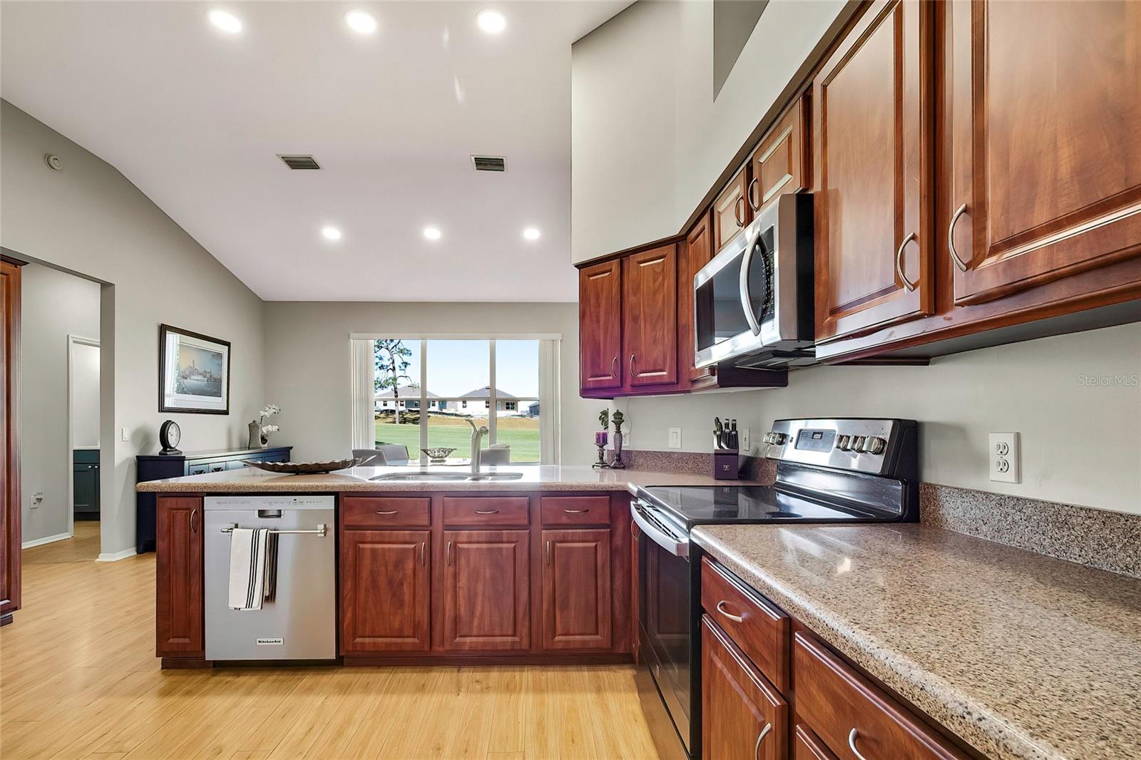 SELLER IS OFFERING 1-YEAR HOME WARRANTY!! Welcome to this stunning, fully furnished 3-bedroom, 2-bathroom block home nestled in the desirable Laurel Ridge community, directly on the fairway of Twisted Oaks Golf Course. This turnkey property is move-in ready, offering an exceptional opportunity for snowbirds or those seeking their perfect forever home. Breathtaking golf course views fill the home with abundant natural light, streaming through large windows. The versatile floor plan includes a formal dining room, an eat-in kitchen, a spacious living room, and a cozy family room. The third bedroom is currently used as an office but can easily be converted back into a bedroom. The primary suite features a sitting area, dual sinks, and an accessible, no-curb walk-in shower. Seamless luxury vinyl plank flooring throughout the home enhances its elegant feel. The air-conditioned, enclosed sunporch offers additional living space with panoramic views of the golf course—a perfect spot to relax and unwind. The beautifully landscaped yard includes a sprinkler system and decorative curbing, adding to the home’s curb appeal. Whether you’re looking for a seasonal retreat or a forever home, this property offers the ultimate blend of luxury, comfort, and convenience. Schedule your private showing today and experience Laurel Ridge living at its finest! Experience serene, golf course community living—schedule your showing today!