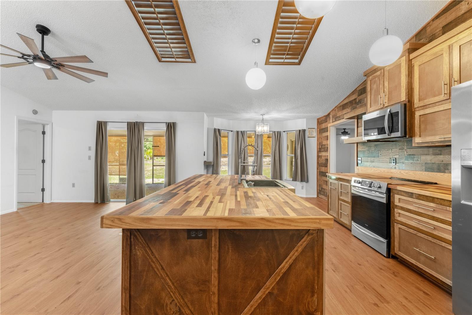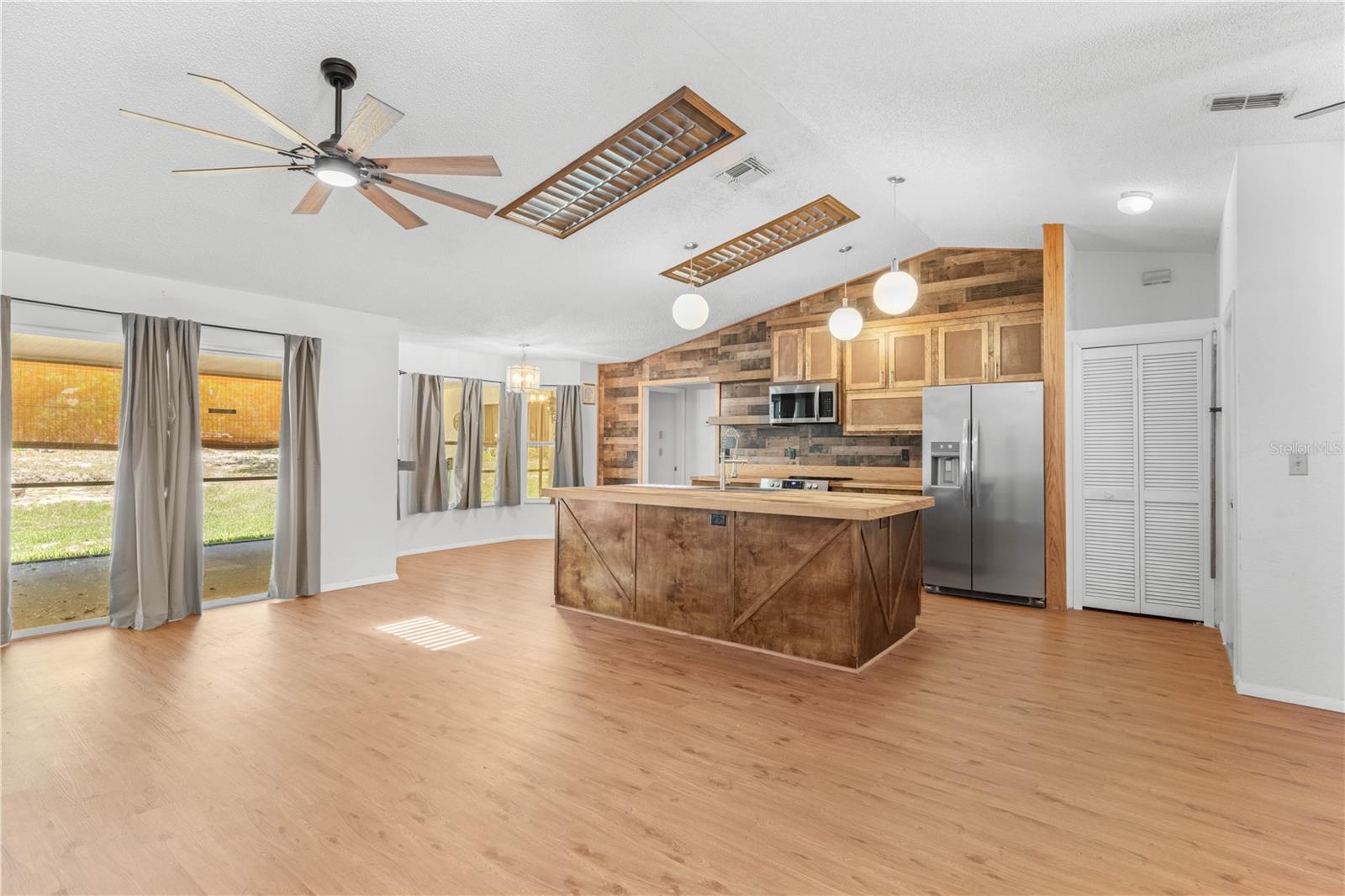 Check out this 3 Bedroom 2 Bath Home with a side entry garage on just over an acre of land. Open floor plan with vaulted ceilings, skylights, formal dining, breakfast nook, and pantry. The custom kitchen features solid wood cabinets with butcher block countertops, new stainless steel appliances, and a large farmhouse sink. Luxury vinyl plank flooring has been installed throughout the home and the bedrooms have been updated with carpet. Large master bedroom has two walk-in closets, dual sinks, tiled shower including sliding door access to the back porch. You have access to your screened-in 38x14 back porch with sliding doors from 2 of the 3 bedrooms. Roof 2017, AC 2013, Water heater 2023, Solar Panels 2023 $200 monthly, Electric bill is only $45/month Duke Power service fee. Plus a 20x12 detached workshop/ utility building. Pine Ridge is an equestrian community with an low HOA of $95/year. The Pine Ridge Equestrian Center barn is surrounded by 13 tree-shaded, generously sized pastures with auto-waterers and horse-friendly flexible fences backed up by hot wire. The grounds also include the large main arena, a jump ring, a dressage arena, an obstacle arena, and a round pen. Over 28 miles of deeded trails can easily be accessed from the Equestrian Center with plenty of parking for residents who want to trailer over to attend events or use the arenas.