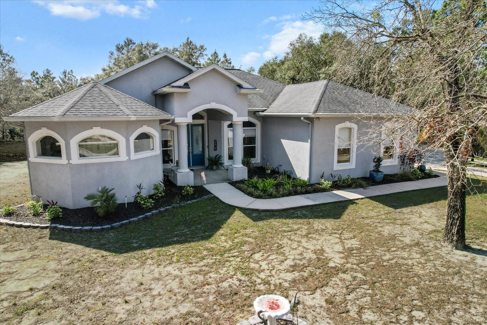 Country living in Pine Ridge Estates, just minutes from everything! Welcome to this beautifully designed 4 bedroom, 3 bathroom home, complete with a versatile den and a spacious 3 car garage. Situated on 4.83 acres, this property offers ample space for horses and outdoor activities while keeping you close to modern conveniences. Step inside to find an inviting living area featuring an updated kitchen with sleek, modern finishes, newer appliances, large pantry, and ample counter space - ideal for cooking and entertaining. The built-in bar adds an extra touch of luxury, ideal for entertaining. Retreat to the oversized bedrooms and bathrooms offering plenty of space and comfort. Primary suite offers plenty of space and huge bathroom with jetted tub and walk in shower. A cozy wood-burning fireplace adds warmth and charm to the living area. Tile throughout the home, and bedrooms feature berber carpeting. Outside, enjoy the peaceful surroundings with plenty of room for horses, gardening, or relaxing by the fire pit. Located just minutes from new shops, restaurants, the YMCA and only 10 minutes to the Suncoast Parkway, this home provides a balance of privacy and accessibility. Water enthusiasts will love being just minutes from Crystal River and Homosassa; two great spots for fishing, kayaking and boating. This property is sure to impress! ***with acceptable offer, seller will pay for a new roof. **** measurements are approximate and must be verified by buyer