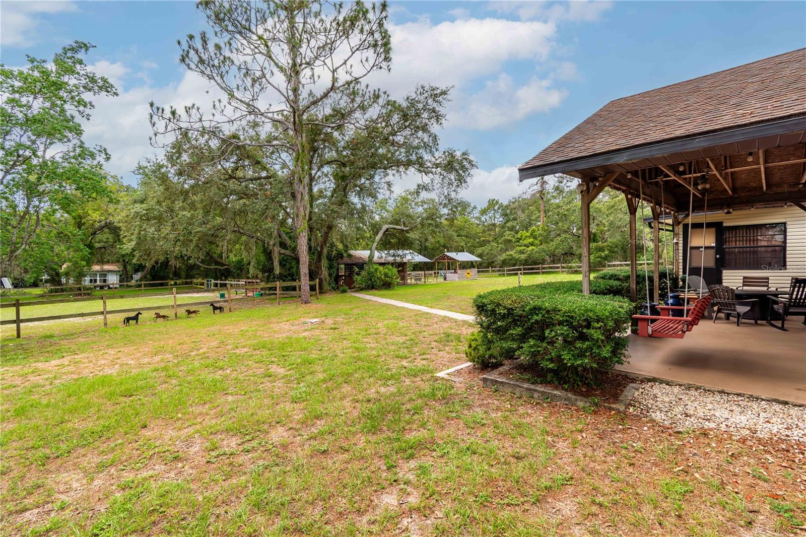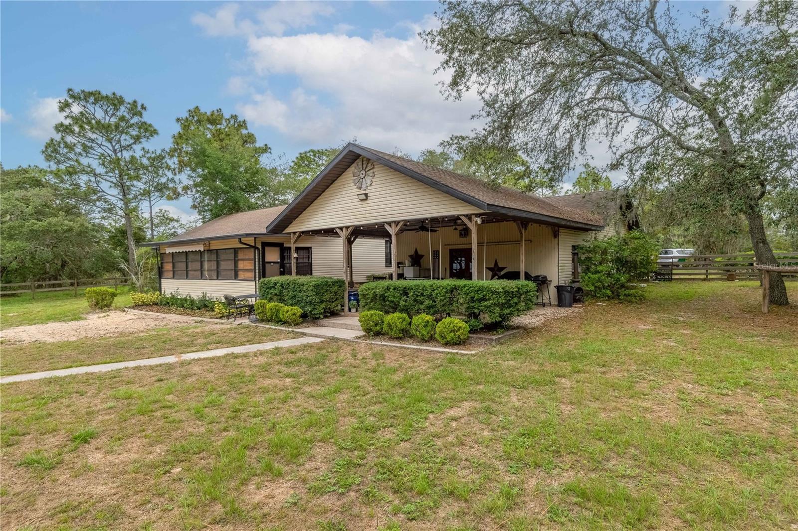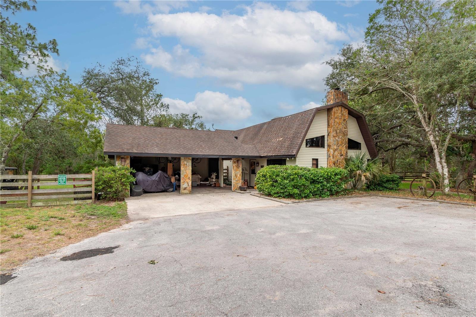Tucked away within the popular equestrian community of Pine Ridge, this rare 5-acre gem offers both freedom and functionality. without the constraints of an HOA With no HOA constraints and bordering one of the community’s scenic horse trails, this thoughtfully designed 1.5-story home is ideal for horse enthusiasts and those craving space with convenience. Inside, you'll find 3 spacious bedrooms and 2 full baths, along with multiple living areas including a formal living room, a cozy family room, an eat-in kitchen, and a formal dining room. A vaulted loft adds versatility, perfect for use as an office, studio, or additional lounge. A fully enclosed 15x30 porch wrapped in tongue-and-groove pine extends your living space with rustic charm and year-round usability. Step outside to a setup that’s ready for both equestrian needs and entertaining. A 20x50 barn offers four matted stalls, each with individual 30-ft corrals, a wash rack, and an open tack/feed area. There's potential for a fifth stall conversion and a separate 12x12 pavilion with corral– ideal as a sixth stall or equipment storage. A level 100x100 paddock lies just off the barn, with two additional paddocks branching from the corrals. Approximately two acres remain untouched, offering space for a round pen, more paddocks, or peaceful hacking through natural Florida terrain. A 24x24 open-air pavilion provides the perfect entertaining space with barn views and is wired for a hot tub or spa. Additional perks include a 12x24 enclosed workshop behind a two-vehicle carport—ideal for hobbies, tools, or storage. Located just minutes from Lecanto’s expanding shopping and dining scene, and just a short drive to the Suncoast Parkway for easy access to Tampa. Less than 45 minutes to the World Equestrian Center and Florida Horse Park, and only 8 miles to the Gulf for boating and fishing. Crystal River and Homosassa’s natural springs are nearby, perfect for kayaking or swimming with manatees. Whether you're a dedicated equestrian, hobby farmer, or simply seeking space to live, work, and play, this unique property blends rural charm with modern convenience in one of Citrus County’s most desirable locations.