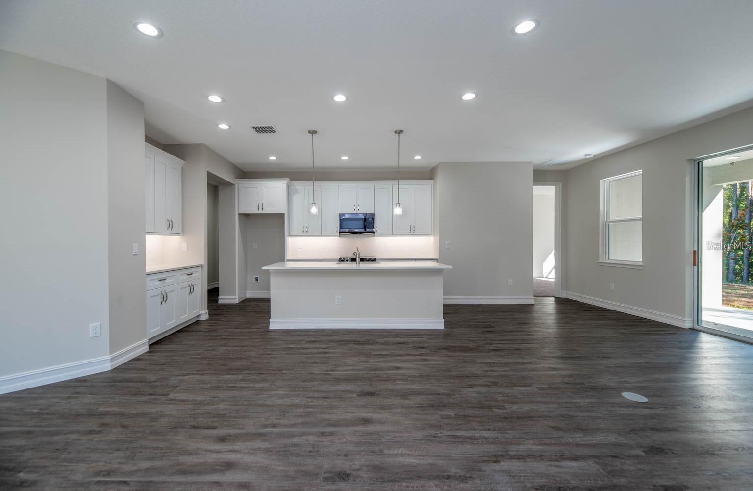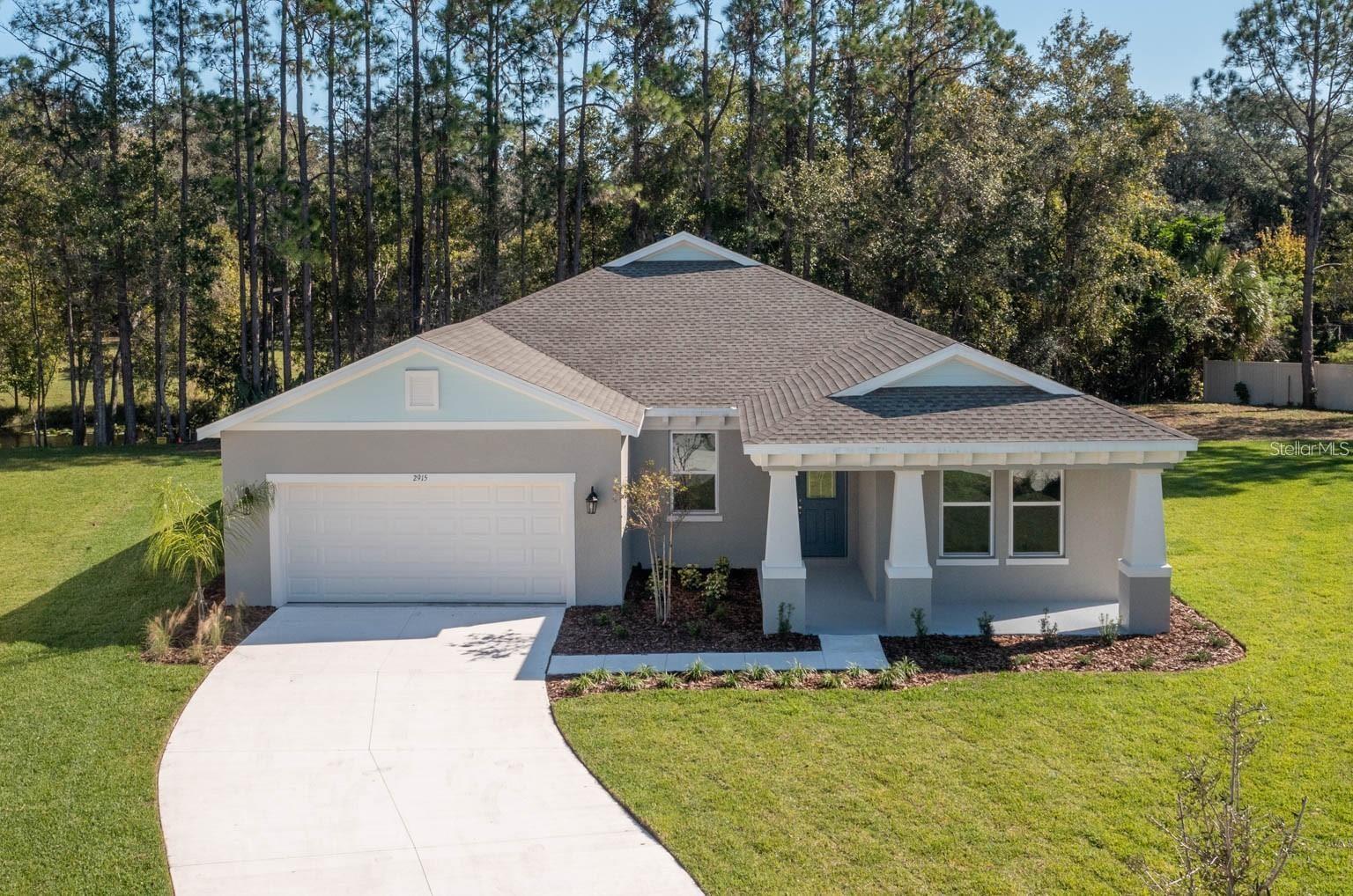 One or more photo(s) has been virtually staged. Under Construction. NEWLY BUILT spacious 1 story home is placed on OVER 1 ACRE and wrapped by a private wooded lot in Pine Ridge. Ready in May/June of 2025, so you might have time to bring your personal touch. Entering the home you will fall in love with the high ceilings coupled with a huge open floor plan of a large kitchen, family room, and dining room all with views into your private wooded backyard. The kitchen features quartz countertops, an island with a breakfast bar that seats 4, subway tile backsplash, soft close cabinets with underlighting, and a LARGE walk-in pantry. This home has luxury waterproof vinyl flooring in all the common areas and upgraded grand 8 foot doors. The master bedroom has a large frameless glass shower and his/hers vanities with quartz countertops. Twirl around in your large 10 by 8 walk-in closet. The spacious 2 car garage leaves you plenty of space to store tools, equipment, and other personal items while still being able to park in the garage. Virtually no HOA fees of $95 a year and NO FLOOD INSURANCE in this quaint spacious pocket located high and dry with tons of privacy. This home is in the perfect private location for you if you are looking for a large upgraded one story new home with acreage and privacy. Another unique feature to where this home is placed is it is on a no outlet street. So the only cars passing by will be homeowners at the end of the street. The builder is offering a credit for closing costs if the Builder's Lender is used. Come see this beautiful home placed in a beautiful community today and why Spire Homes is one of the top builders in Central Florida today!