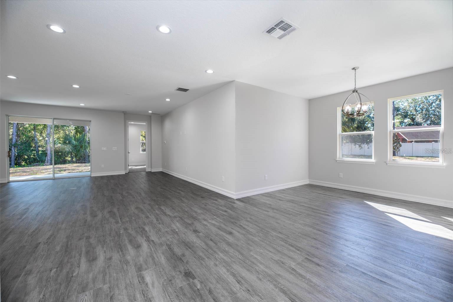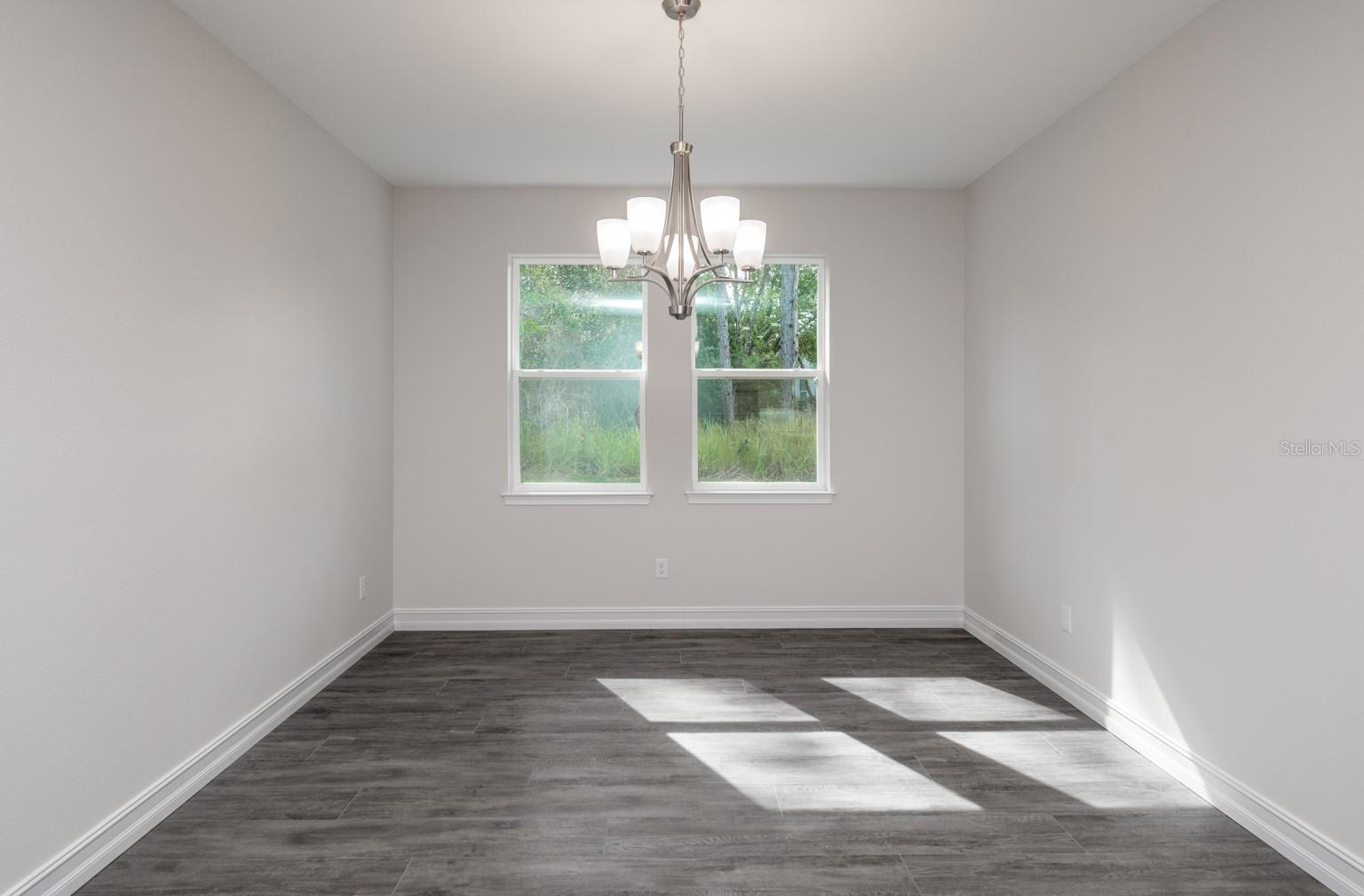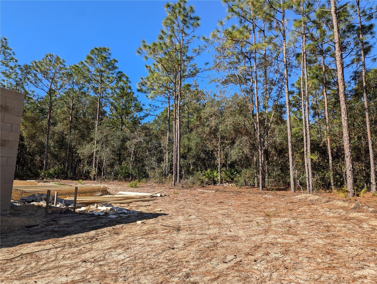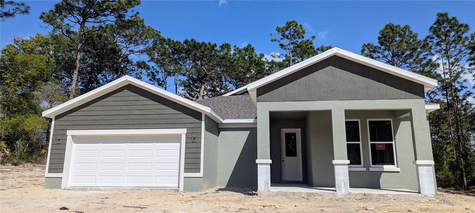 One or more photo(s) has been virtually staged. Under Construction. NEWLY BUILT spacious 1 story home is placed on OVER 1 ACRE and wrapped by a private wooded lot in Pine Ridge. Ready in May/June of 2025, so you might have time to bring your personal touch. Entering the home you will fall in love with the high ceilings coupled with a huge open floor plan of a large kitchen, family room, and dining room all with views into your private wooded backyard. The kitchen features quartz countertops, an island with a breakfast bar that seats 4, subway tile backsplash, soft close cabinets with underlighting, and a LARGE walk-in pantry. This home has luxury waterproof vinyl flooring in all the common areas and upgraded grand 8 foot doors. The master bedroom has a large frameless glass shower and his/hers vanities with quartz countertops. Twirl around in your large 10 by 8 walk-in closet. The spacious 2 car garage leaves you plenty of space to store tools, equipment, and other personal items while still being able to park in the garage. Virtually no HOA fees of $95 a year and NO FLOOD INSURANCE in this quaint spacious pocket located high and dry with tons of privacy. This home is in the perfect private location for you if you are looking for a large upgraded one story new home with acreage and privacy. Another unique feature to where this home backs up to a large privately open field offering more separation for you. This street also has sidewalks which is a nice bonus for this pocket of the community. The builder is offering a credit for closing costs if the Builder's Lender is used. Come see this beautiful home placed in a beautiful community today and why Spire Homes is one of the top builders in Central Florida today!