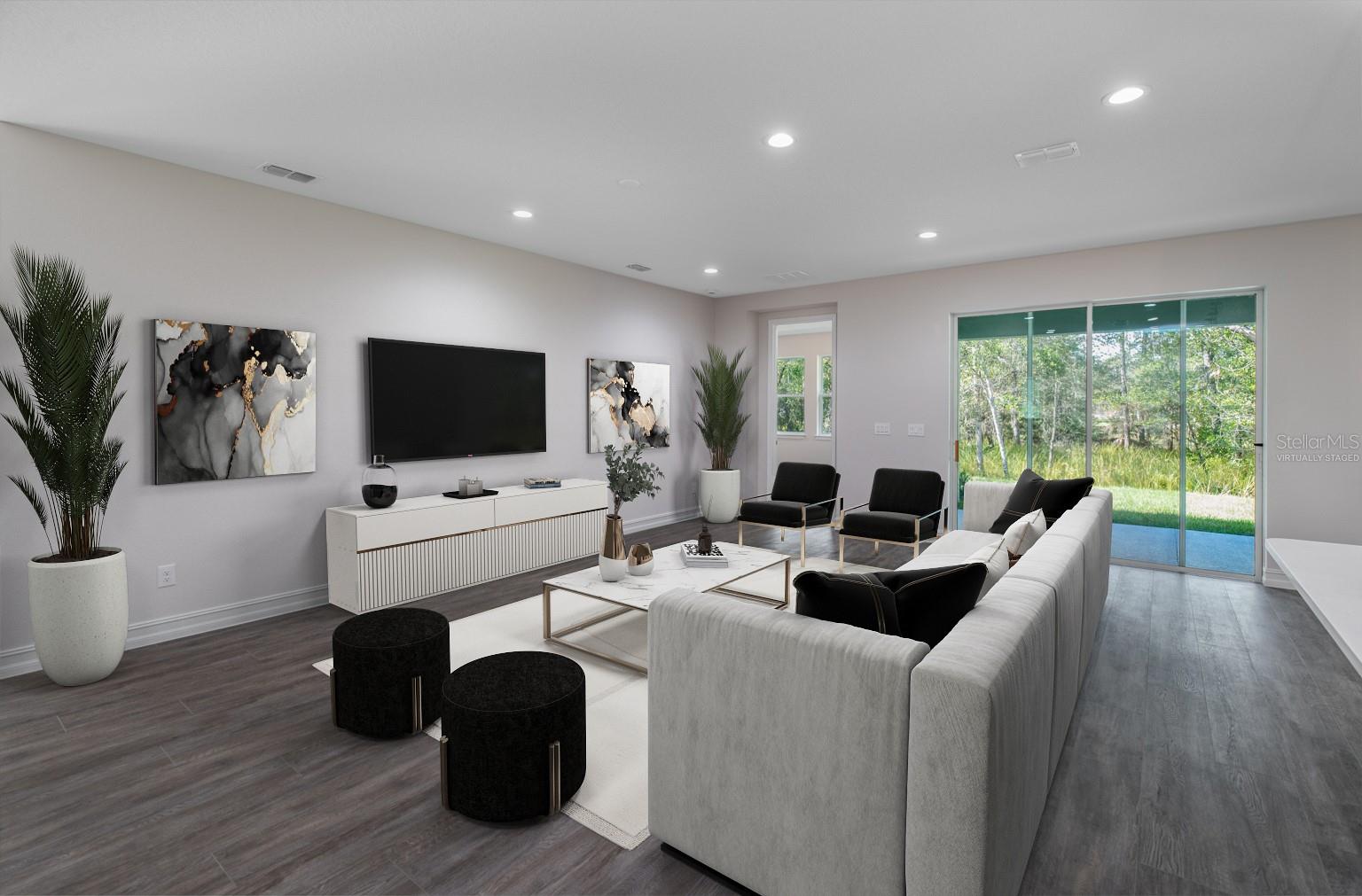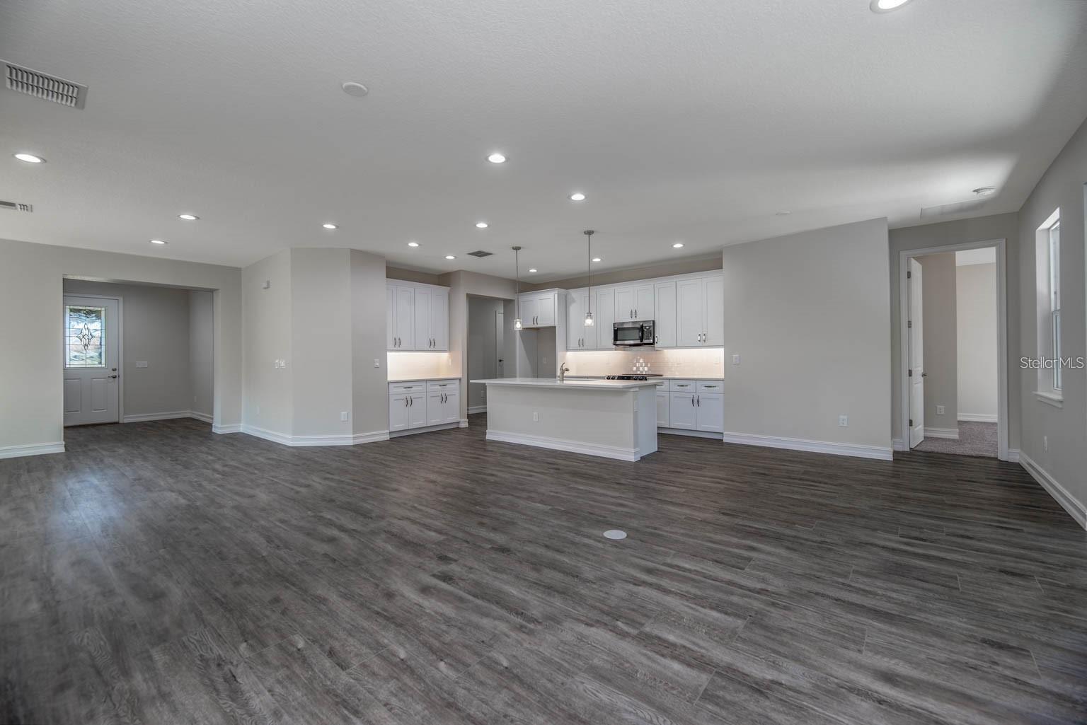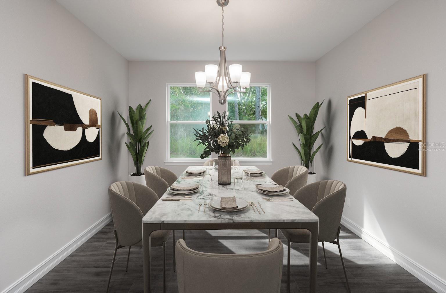 One or more photo(s) has been virtually staged. Under Construction. NEWLY BUILT spacious 1 story home is placed on OVER 1 ACRE and wrapped by a private wooded lot in Pine Ridge. Ready in May/June of 2025, so you might have time to bring your personal touch. Entering the home you will fall in love with the high ceilings coupled with a huge open floor plan of a large kitchen, family room, and dining room all with views into your private wooded backyard. The kitchen features quartz countertops, an island with a breakfast bar that seats 4, subway tile backsplash, soft close cabinets with underlighting, and a LARGE walk-in pantry. This home has luxury waterproof vinyl flooring in all the common areas and upgraded grand 8 foot doors. The master bedroom has a large frameless glass shower and his/hers vanities with quartz countertops. Twirl around in your large 10 by 8 walk-in closet. The spacious 2 car garage leaves you plenty of space to store tools, equipment, and other personal items while still being able to park in the garage. Virtually no HOA fees of $95 a year and NO FLOOD INSURANCE in this quaint spacious pocket located high and dry with tons of privacy. This home is in the perfect private location for you if you are looking for a large upgraded one story new home with acreage and privacy. Another unique feature to where this home backs up to a large privately open field offering more separation for you. This street also has sidewalks which is a nice bonus for this pocket of the community. The builder is offering a credit for closing costs if the Builder's Lender is used. Come see this beautiful home placed in a beautiful community today and why Spire Homes is one of the top builders in Central Florida today!