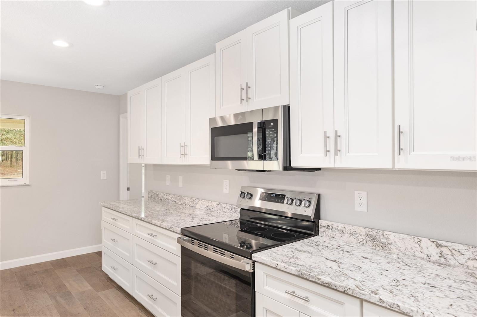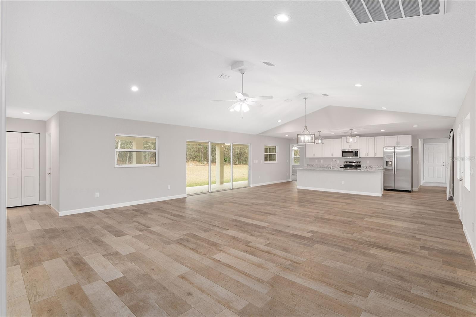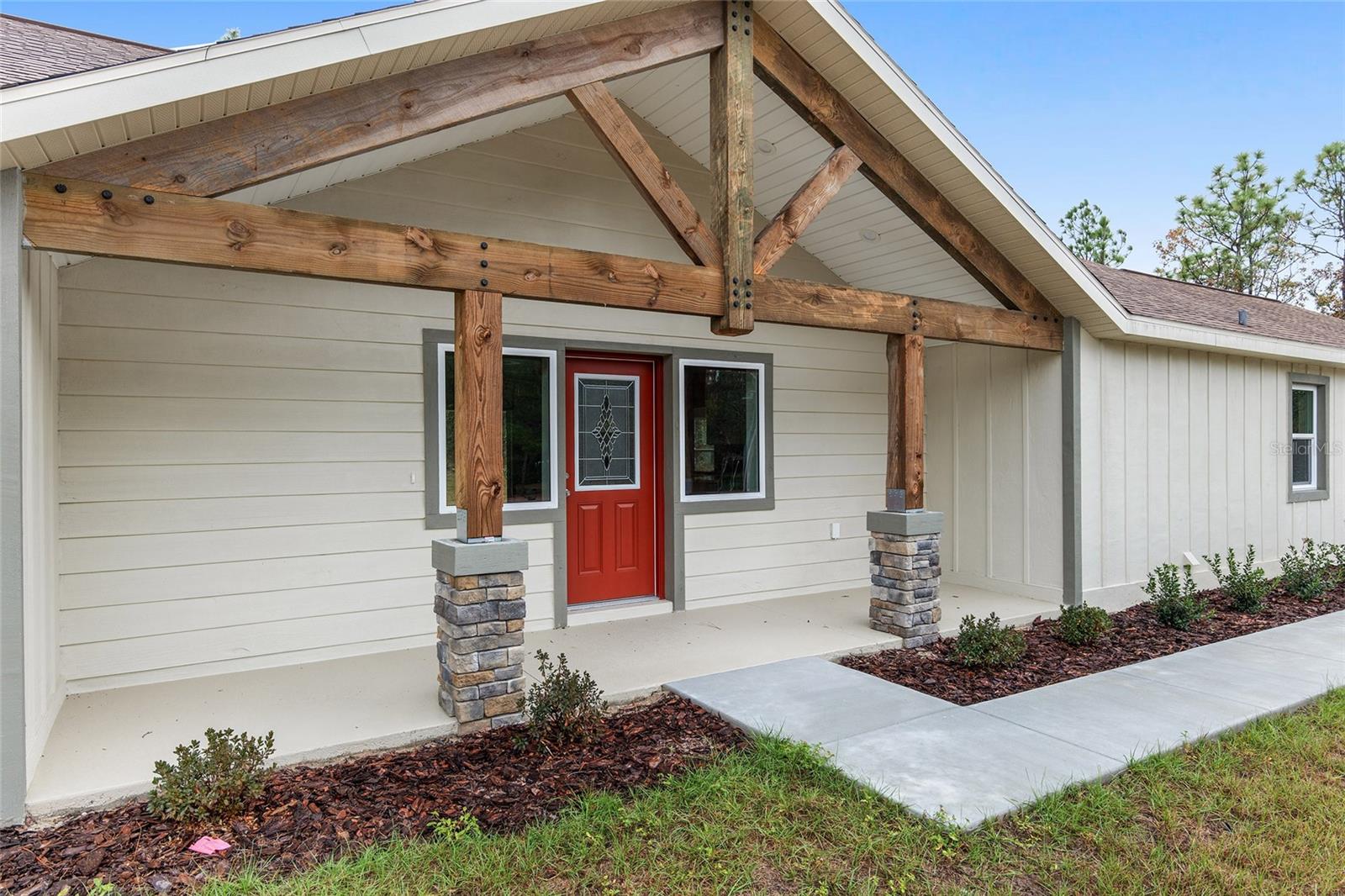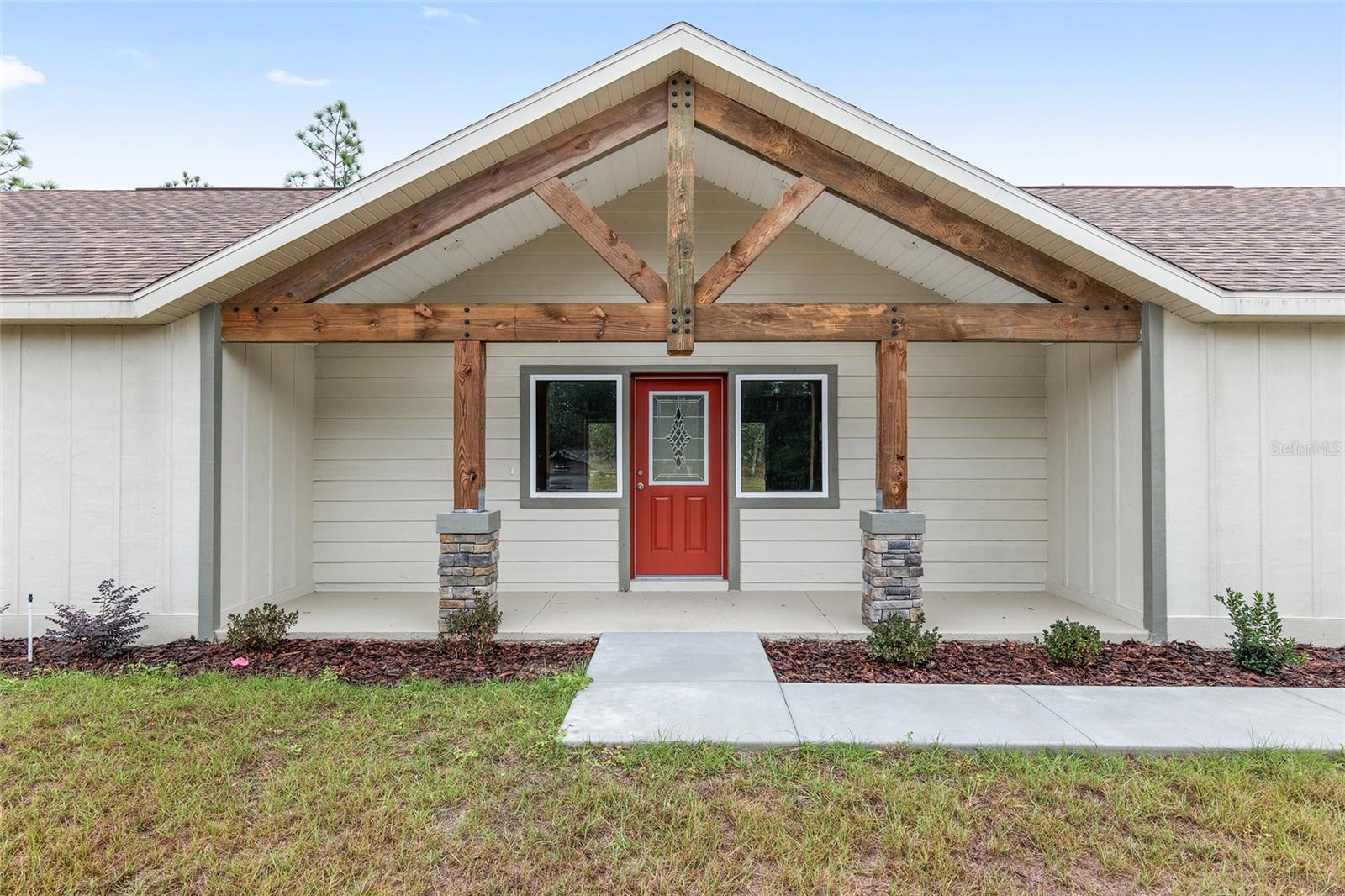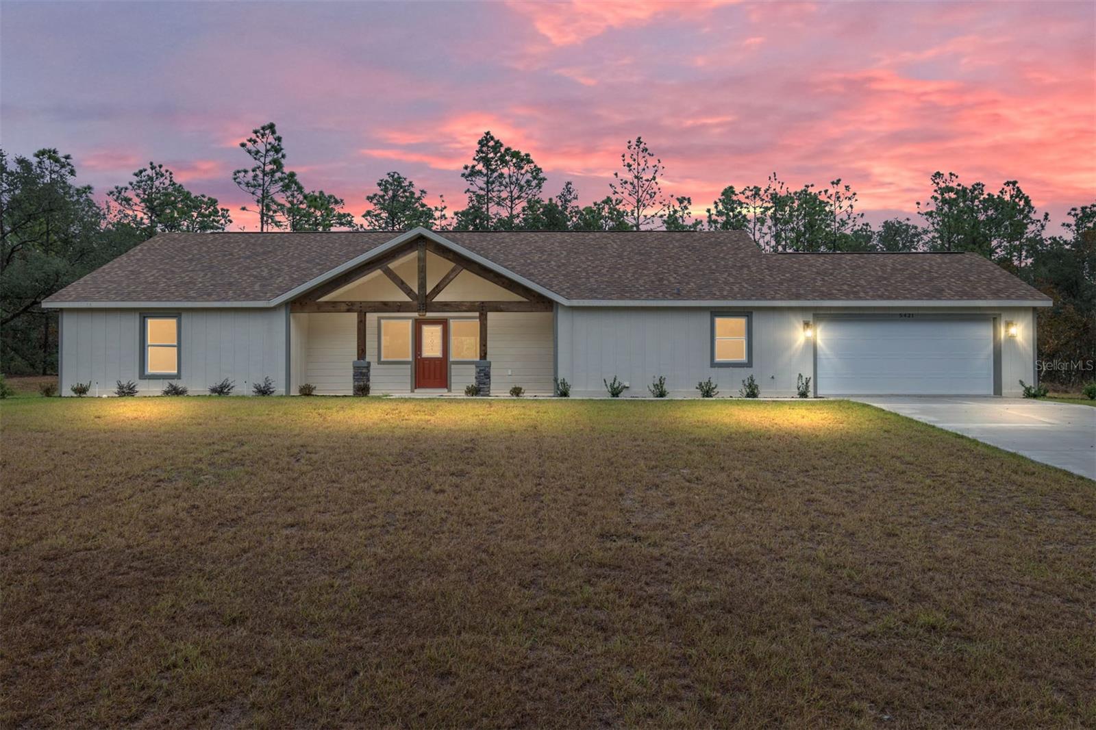 Nestled on over an acre of land, this brand-new home offers over 2,000 sq ft of luxurious living space, perfectly balancing seclusion and convenience. As you approach the front door, you're greeted by a charming, spacious front porch, setting the tone for the inviting open-concept design inside. The modern layout seamlessly connects the living room, kitchen, and dining areas, creating an ideal flow for entertaining guests or relaxing with family. The split floorplan ensures privacy, with the generously-sized primary suite tucked away in its own corner of the home. Enjoy direct access to the private covered back patio, a perfect spot for unwinding outdoors. The spa-inspired primary bath features a soaking tub, separate shower, and dual vanities, complemented by a large walk-in closet for added convenience and storage. Located in the desirable Pine Ridge Estates, you'll enjoy the benefits of a well-maintained HOA, offering an affordable and balanced community lifestyle without excessive restrictions. This exceptional home is waiting for you – schedule your showing today and see firsthand what makes it so special!