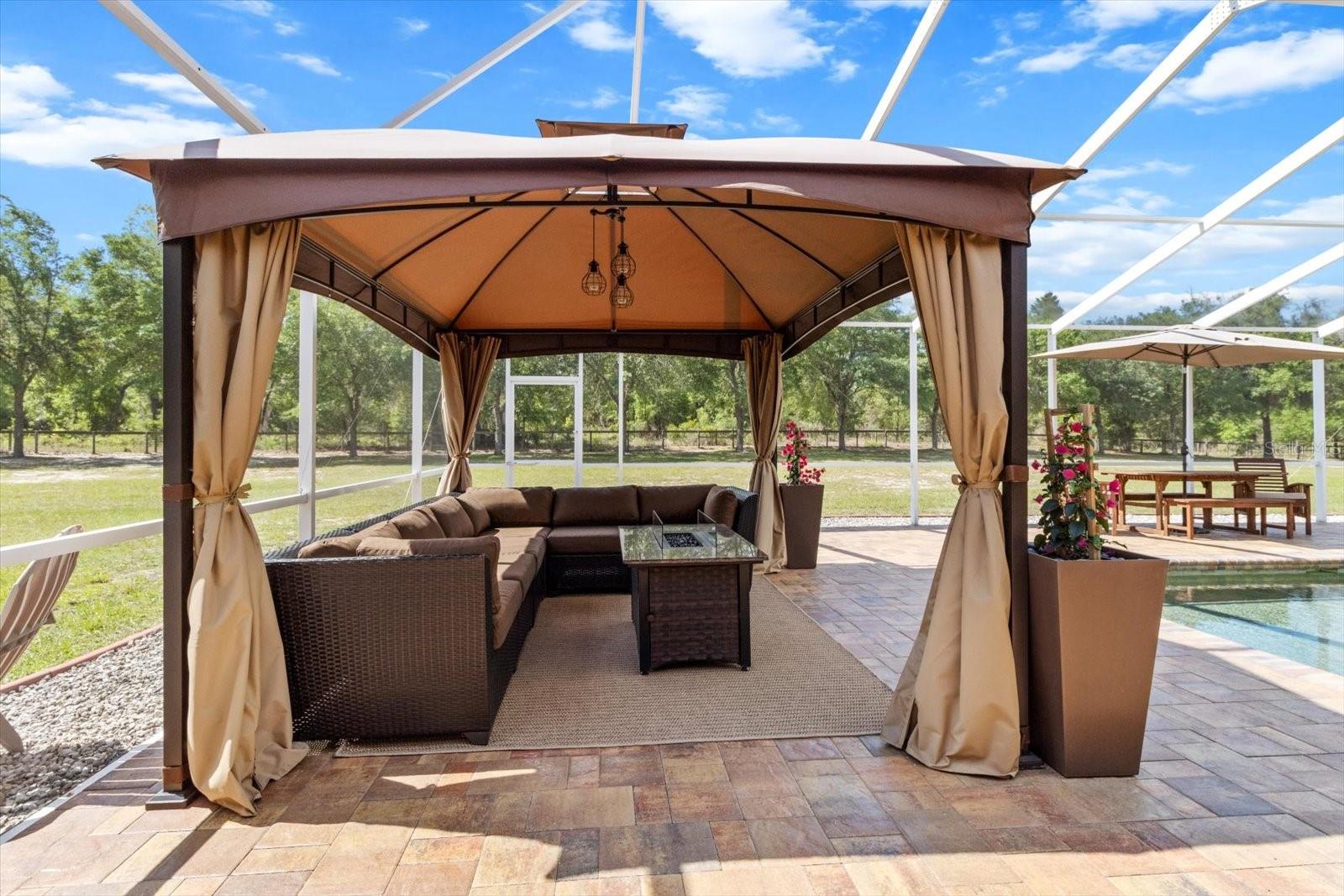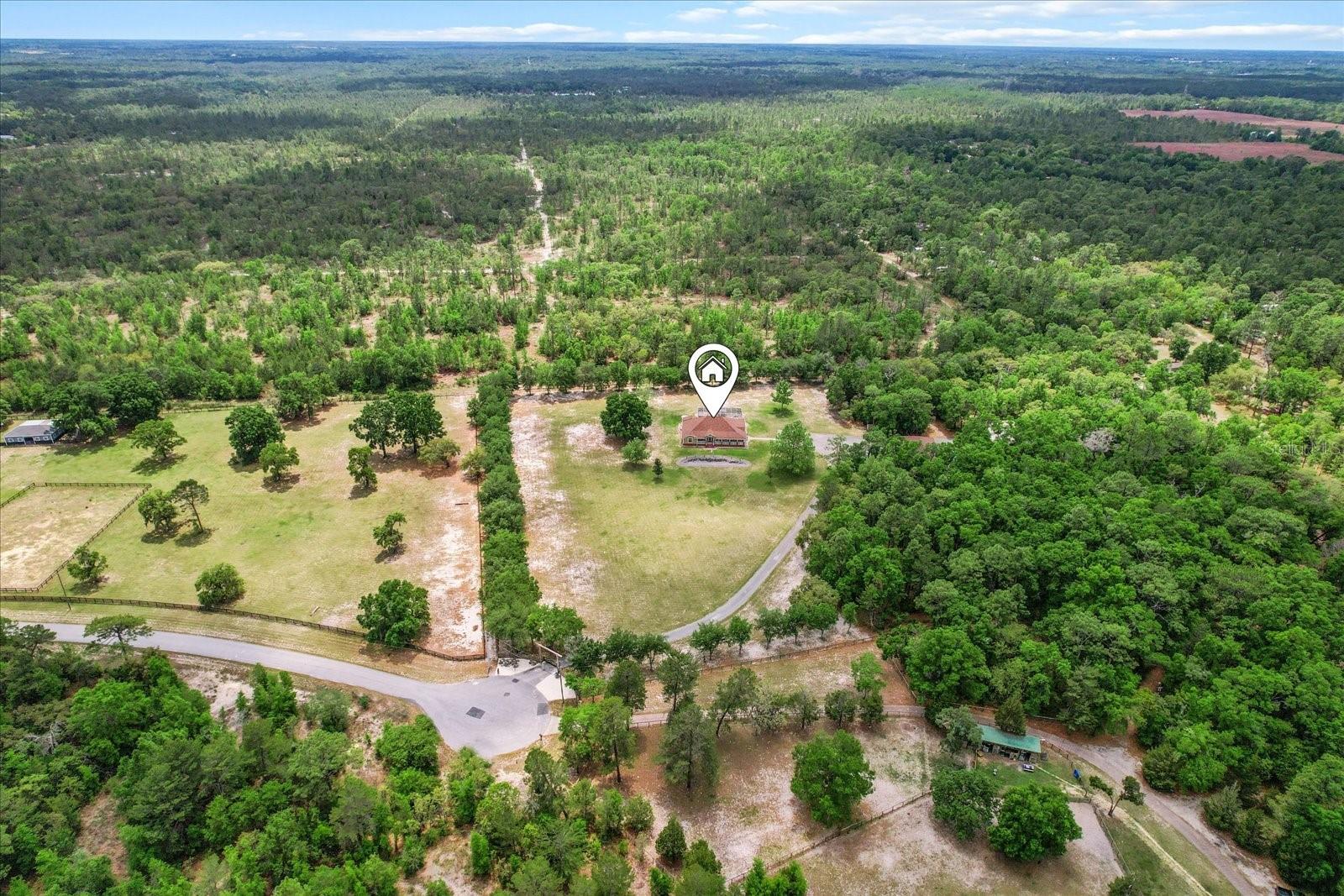 COUNTRY LIVING MEETS LUXURY WITH THIS GORGEOUS POOL HOME ON A 10 ACRE ESTATE IN BEAUTIFUL PINERIDGE FARMS! Welcome to your charming farmhouse in Pineridge Farms, a sought-after neighborhood in the heart of Florida’s Nature Coast. No HOA & all the peace & quiet you could ask for! Bring your toys, animals, hobbies, & dreams of a laid-back lifestyle…this property can handle it all! The ideal ranch-style home, complete with a wraparound porch and a vintage screen door that adds just the right touch of country charm. A rambling 2600 sqft of living area features 4 beds & 2 baths. The common area of the home boasts a wide-open concept, anchored by a kitchen built for gathering, complete with a huge island, breakfast bar, Corian counters, & solid wood cabinetry. Gorgeous gleaming hardwood floors throughout the home & tongue and groove pine in the tray ceilings. A large master suite & with plenty of room for a king bed & large furniture. You'll also love the two walk-in closets & walk-in shower. Featuring a split floor plan with the 3 guest bedrooms on the other side of the home ensuring privacy & relaxation. Speaking of relaxation, double doors lead to the massive screened-in back porch & pool area, where you can relax or entertain guests by the glimmering saltwater pool while listening to the trickle of the spill over spa. The pool & spa are heated with solar panels & an electric heat pump, so it’s swim season all year-round. After the day’s work is done, pull up a rocking chair on the wraparound porch, listening to the gentle breeze through the trees. Got toys & tools? Then you need this serious garage! The massive detached garage with three bays (2 front/1 rear), an office/gym (cooled/htd with mini split), full bathroom, its own 200-amp electric panel, & separate septic—great for projects & workshop. Need even more space? Well, there is also a steel 50x61 (approx.) pole barn, perfect for trailers, boats, RVs, & more! Upgrades include ROOF in 2023, a solar-powered entry gate, whole-house wired for surround sound & security, & a storm-safe laundry room with a dog wash station. The boundary of the property is fully fenced with about half of the property cleared & half left in its natural wooded state, giving you a nice balance of function & nature. All of this located in the heart of the Nature Coast, with some of the best fishing, hiking, hunting, biking, & recreation in this part of the nation. This one’s full of charm, space, & freedom—just waiting for you to call it home.