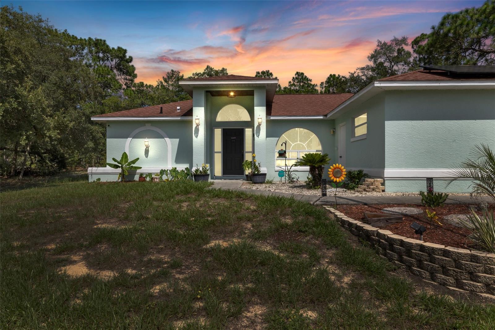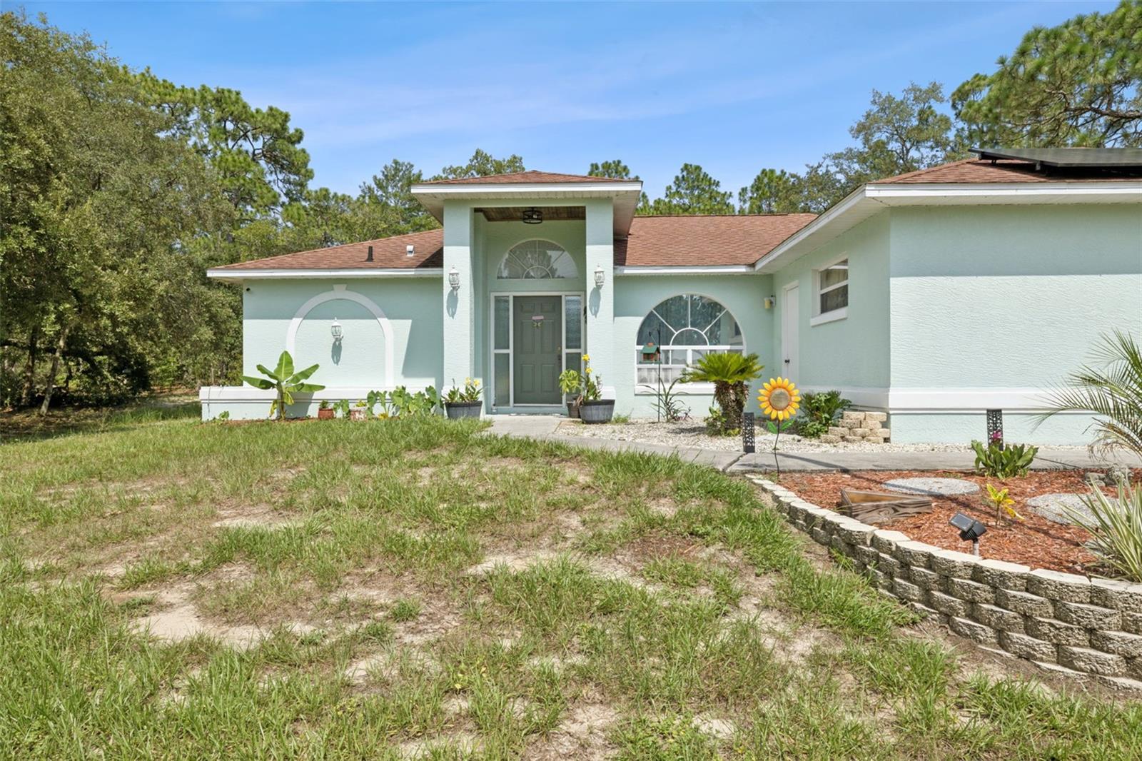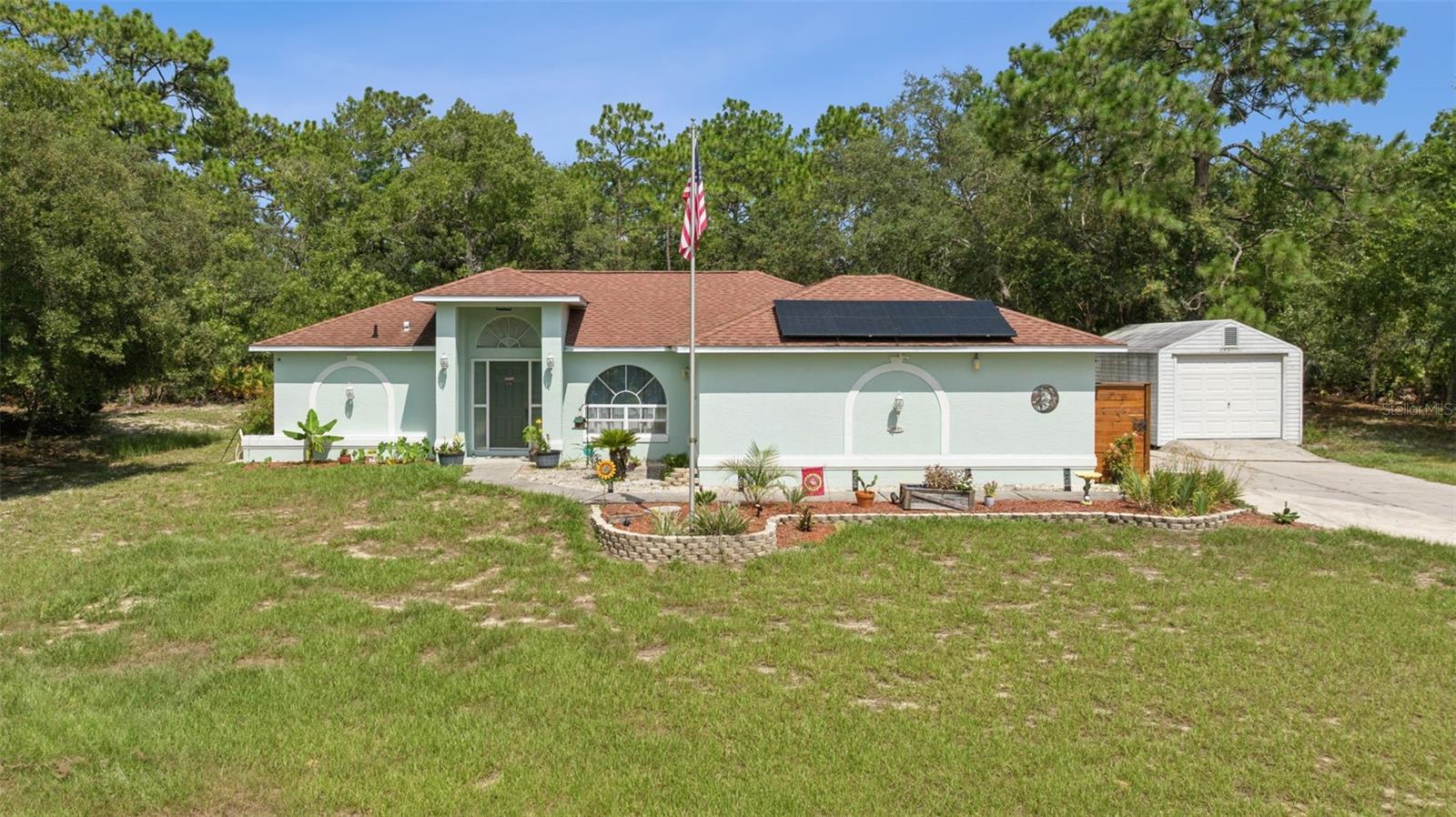 Discover timeless comfort and energy-efficient living at 2931 W Beamwood Drive in the heart of Pine Ridge Estates. a beautifully maintained custom-built residence located in the sought-after equestrian community. Sitting on a scenic 1.06-acre corner lot, this thoughtfully designed 3-bedroom, 2-bathroom home with an attached 2-car garage offers privacy, functionality, and a peaceful country lifestyle. Mature trees, lush landscaping, and a long private driveway create a serene setting with plenty of space to spread out, entertain, or simply enjoy the quiet surroundings. Inside, you'll find a spacious and open layout featuring vaulted ceilings, skylights, a formal dining room, and a large great room—perfect for both everyday living and entertaining. The custom kitchen boasts solid wood cabinetry with butcher block countertops, a large farmhouse sink, new stainless-steel appliances, a walk-in pantry, and a bright breakfast nook that overlooks the backyard. Luxury vinyl plank flooring throughout the living areas, while all three bedrooms are finished with plush carpet for added comfort. The split-bedroom design ensures privacy, and the primary suite features a walk-in closet, dual sinks, and a tiled walk-in shower. Sliding glass doors from the primary suite lead out to an expansive screened lanai—a perfect space to enjoy Florida’s outdoor lifestyle in comfort and shade. This home is equipped with a 2023 solar panel system, significantly reducing your energy costs and will be PAID by the SELLER AT CLOSING. The current electric bill averages just $35/month giving the new owner long-term energy savings. Other key updates include a new water heater (2023), roof replacement (2017), and HVAC system (2013). A detached workshop/utility building offers versatile space for storage, hobbies, or equipment. Located in the highly desirable Pine Ridge Estates, this home comes with access to one of Citrus County’s premier equestrian facilities. The community features over 28 miles of deeded horseback riding and walking trails, a full-service equestrian center with 13 tree-shaded pastures, auto-waterers, flexible horse-safe fencing, a large main riding arena, jump ring, dressage arena, obstacle arena, and round pen. Residents enjoy a low annual HOA fee of just $95/year, making this an exceptional value for the amenities and lifestyle offered. Situated just minutes from shopping, dining, golf, and the Crystal River coastline this home offers a rare opportunity to enjoy energy-efficient living, modern upgrades, and a true connection to nature—all within a vibrant equestrian community. This is more than just a home it's a lifestyle. Schedule your private showing today!