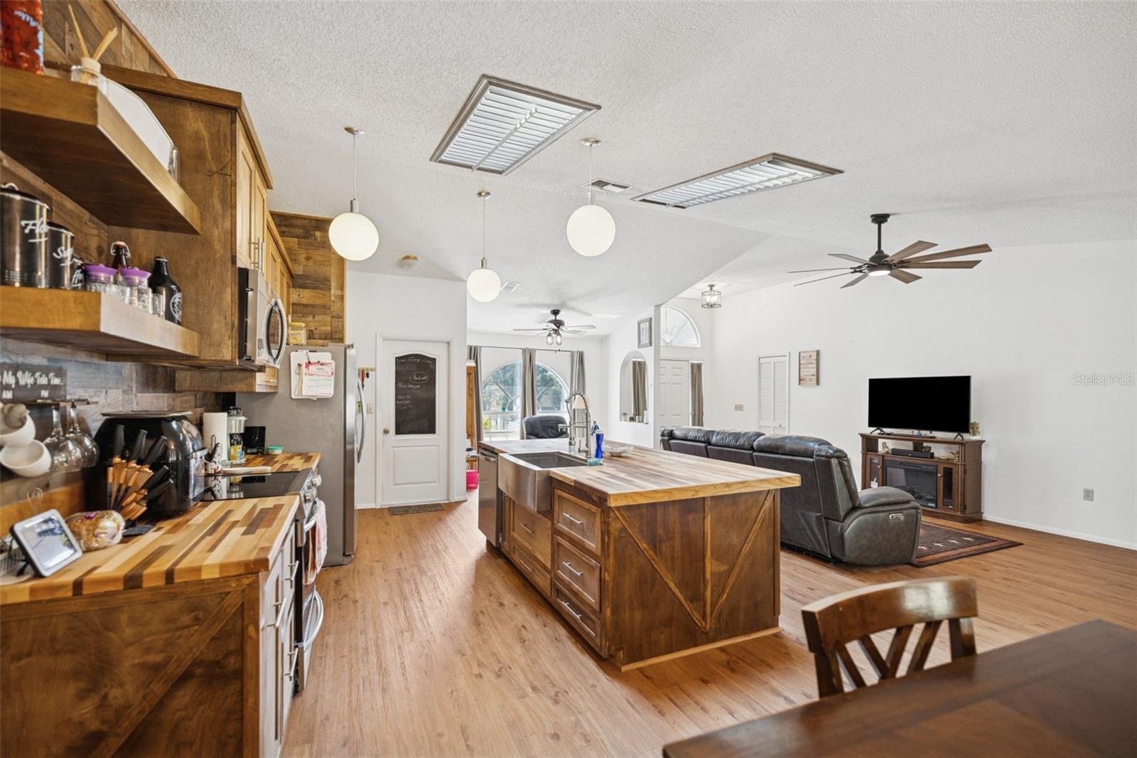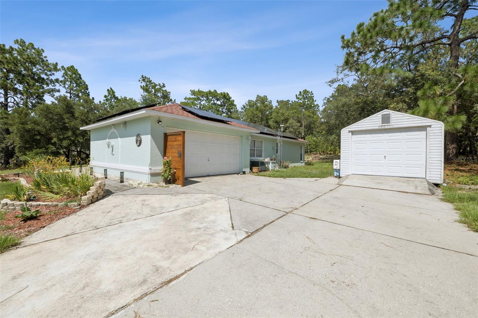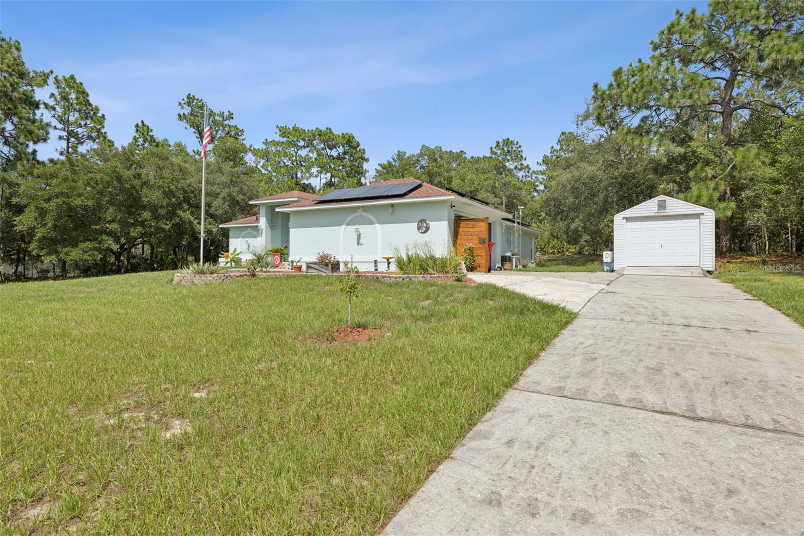 Discover timeless comfort and energy-efficient living at 2931 W Beamwood Drive in the heart of Pine Ridge Estates. a beautifully maintained custom-built residence located in the sought-after equestrian community. Sitting on a scenic 1.06-acre corner lot, this thoughtfully designed 3-bedroom, 2-bathroom home with an attached 2-car garage offers privacy, functionality, and a peaceful country lifestyle. Mature trees, lush landscaping, and a long private driveway create a serene setting with plenty of space to spread out, entertain, or simply enjoy the quiet surroundings. Inside, you'll find a spacious and open layout featuring vaulted ceilings, skylights, a formal dining room, and a large great room—perfect for both everyday living and entertaining. The custom kitchen boasts solid wood cabinetry with butcher block countertops, a large farmhouse sink, new stainless-steel appliances, a walk-in pantry, and a bright breakfast nook that overlooks the backyard. Luxury vinyl plank flooring throughout the living areas, while all three bedrooms are finished with plush carpet for added comfort. The split-bedroom design ensures privacy, and the primary suite features a walk-in closet, dual sinks, and a tiled walk-in shower. Sliding glass doors from the primary suite lead out to an expansive screened lanai—a perfect space to enjoy Florida’s outdoor lifestyle in comfort and shade. This home is equipped with a 2023 solar panel system, significantly reducing your energy costs and will be PAID by the SELLER AT CLOSING. The current electric bill averages just $35/month giving the new owner long-term energy savings. Other key updates include a new water heater (2023), roof replacement (2017), and HVAC system (2013). A detached workshop/utility building offers versatile space for storage, hobbies, or equipment. Located in the highly desirable Pine Ridge Estates, this home comes with access to one of Citrus County’s premier equestrian facilities. The community features over 28 miles of deeded horseback riding and walking trails, a full-service equestrian center with 13 tree-shaded pastures, auto-waterers, flexible horse-safe fencing, a large main riding arena, jump ring, dressage arena, obstacle arena, and round pen. Residents enjoy a low annual HOA fee of just $95/year, making this an exceptional value for the amenities and lifestyle offered. Situated just minutes from shopping, dining, golf, and the Crystal River coastline this home offers a rare opportunity to enjoy energy-efficient living, modern upgrades, and a true connection to nature—all within a vibrant equestrian community. This is more than just a home it's a lifestyle. Schedule your private showing today!