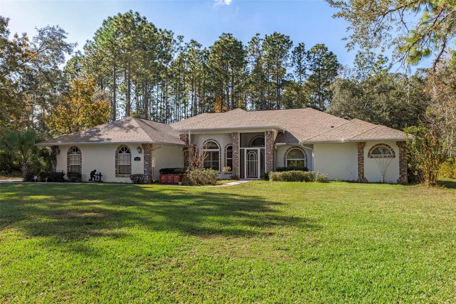 The ultimate package in the prestigious Pine Ridge Estates. This move-in-ready home checks all the boxes with updated, energy-efficient features including newer double-pane windows (2018), HVAC (2018), roof (2019), and a sparkling saltwater pool added in 2019. The split-bedroom layout offers comfortable separation for family or guests, and the guest wing bath opens directly to the heated pool for easy indoor-outdoor living. You’ll enjoy both a 2-car side-entry garage and a separate 2-car detached garage tucked along a long private driveway—ideal for vehicles, hobbies, or storage. Set on a peaceful 1-acre homesite surrounded by mature trees, this property delivers the quiet, nature-filled setting Pine Ridge is known for. Exterior care is simple with irrigation fed by your private well, and the whole-house generator with transfer switch keeps you prepared year-round. All the big-ticket items are already done—just move in and enjoy the Florida lifestyle immediately. And when you’re ready to explore, you’re within an easy drive of world-class equestrian venues in Ocala and major attractions, shopping, dining, and airports in Orlando. Opportunities like this don’t sit long—will you be the one to make it yours?