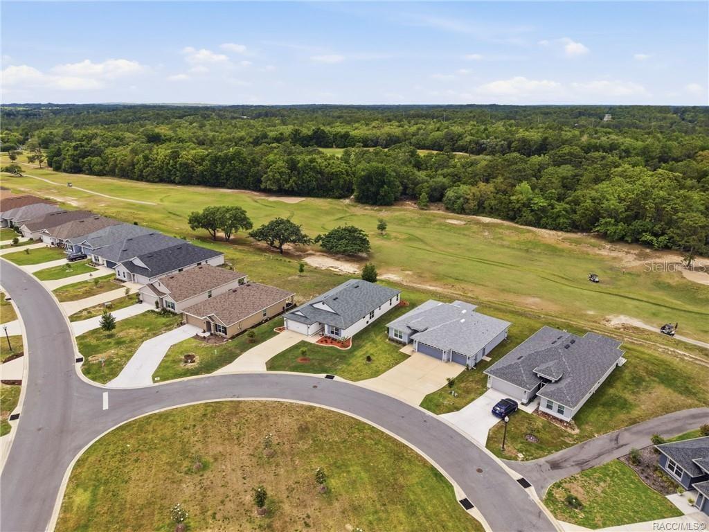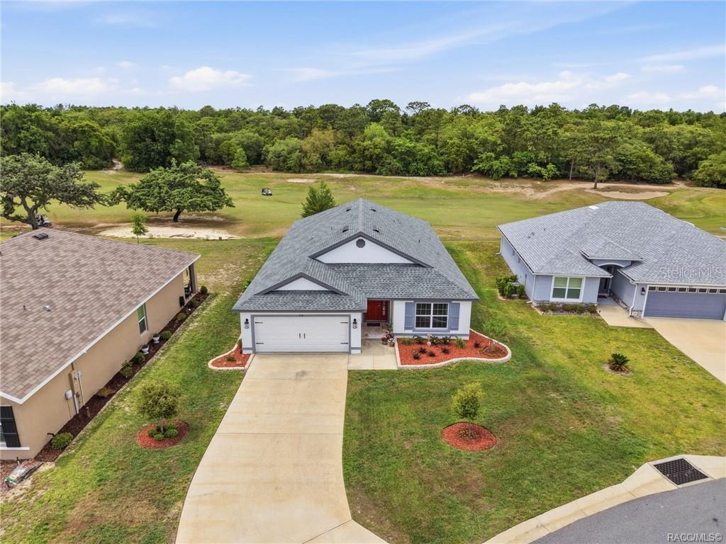 Welcome to this beautifully crafted 2024 home situated on a premium golf course lot with stadium like views in Beverly Hills, Florida. Offering 2,119 living square feet (2,840 total) on a .21-acre parcel, this 3-bedroom, 2.5-bath residence blends modern construction with thoughtful custom upgrades throughout. Step inside to find custom wood accent walls, recessed lighting, quality fans and fixtures and a seamless mix of laminate flooring in the main living areas and plush carpet in the bedrooms. The spacious kitchen is designed for both everyday living and entertaining, featuring an oversized granite breakfast bar, stainless steel appliances, tons of wood cabinets, large pantry, all of this offering you ample workspace. The primary suite is a spacious retreat. In the bathroom you will find an extra-long granite countertop with dual sinks, a beautifully tiled walk in shower and not one but two walk-in closets. A rare bonus, both the 2nd and 3rd bedrooms also includes its own walk-in closet. Bathrooms are upgraded with granite countertops and beautifully tiled showers. Function meets convenience with a well-equipped laundry room complete with shelving and a utility sink. The two-car garage offers additional storage plus a built-in workbench—ideal for hobbies or organization. Enjoy Florida living year-round on the lanai, complete with two outdoor ceiling fans. The hurricane shutters for added peace of mind. The whole yard has irrigation making you the envy of the neighborhood. Located within a golf course community, residents have access to a course along with a clubhouse featuring a restaurant, pro shop, and driving range—bringing resort-style amenities right to your doorstep. Conveniently positioned near shopping, dining, and everyday essentials, this home also offers easy access to medical facilities, local parks, and outdoor recreation. Just a short drive away, you’ll find the natural beauty of Florida’s Nature Coast, including nearby springs, rivers, and the Gulf—perfect for boating, fishing, kayaking, and enjoying the outdoors year-round. This home delivers comfort, quality, and lifestyle—schedule your showing today.