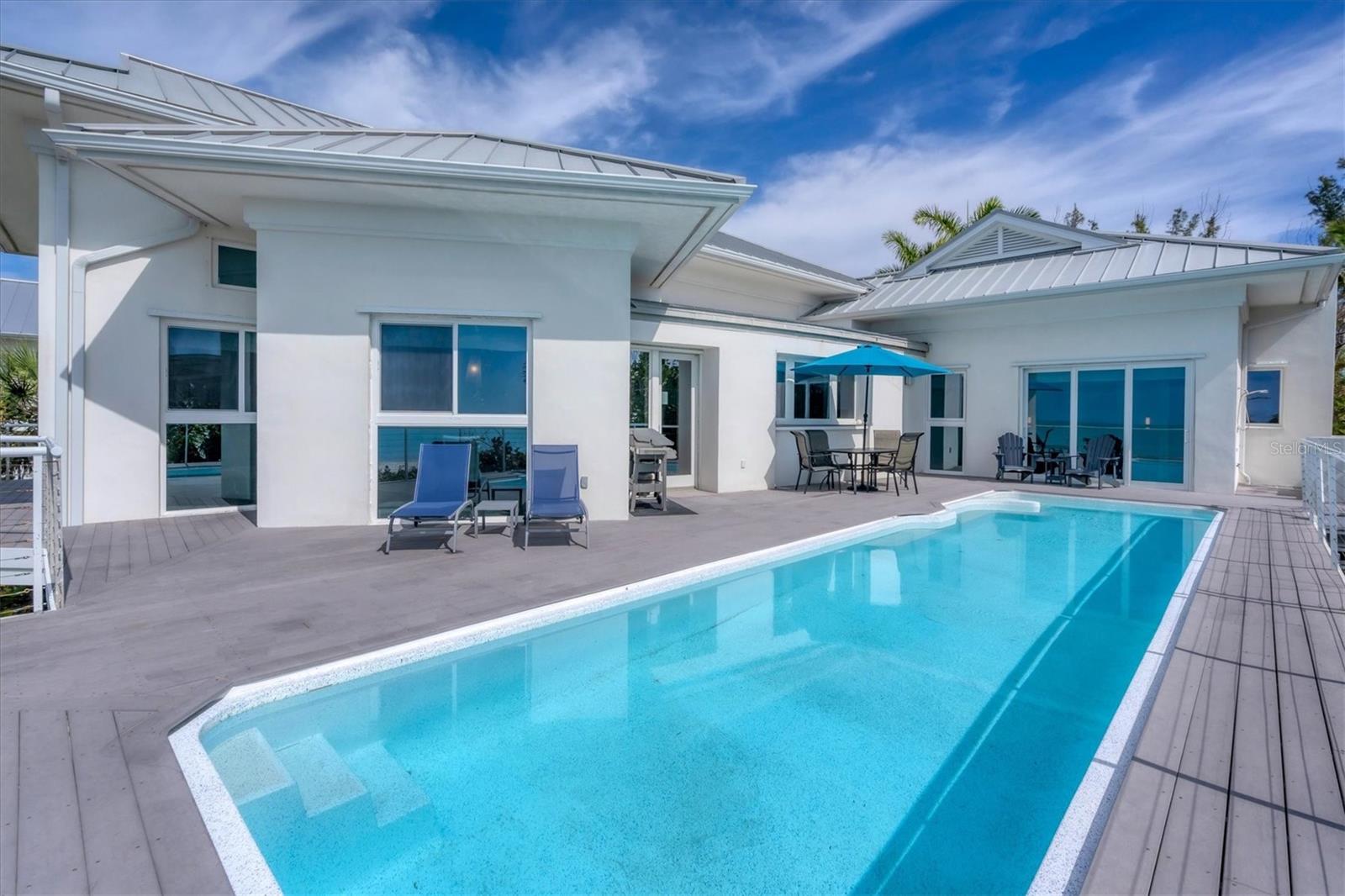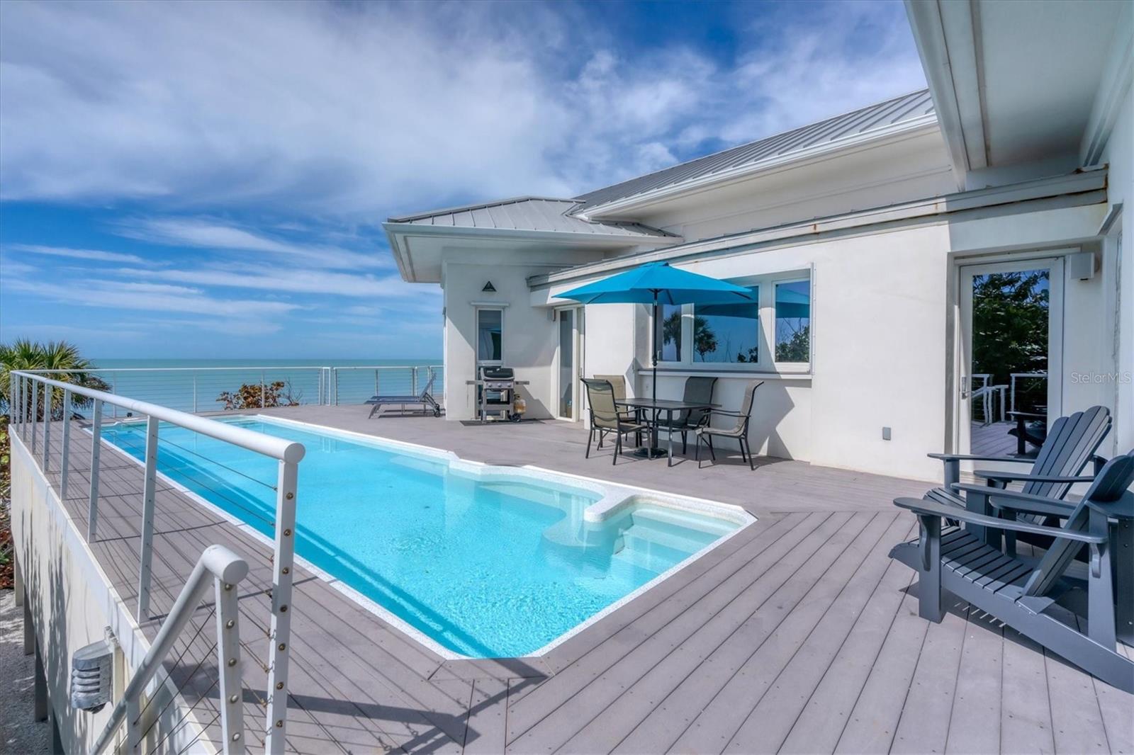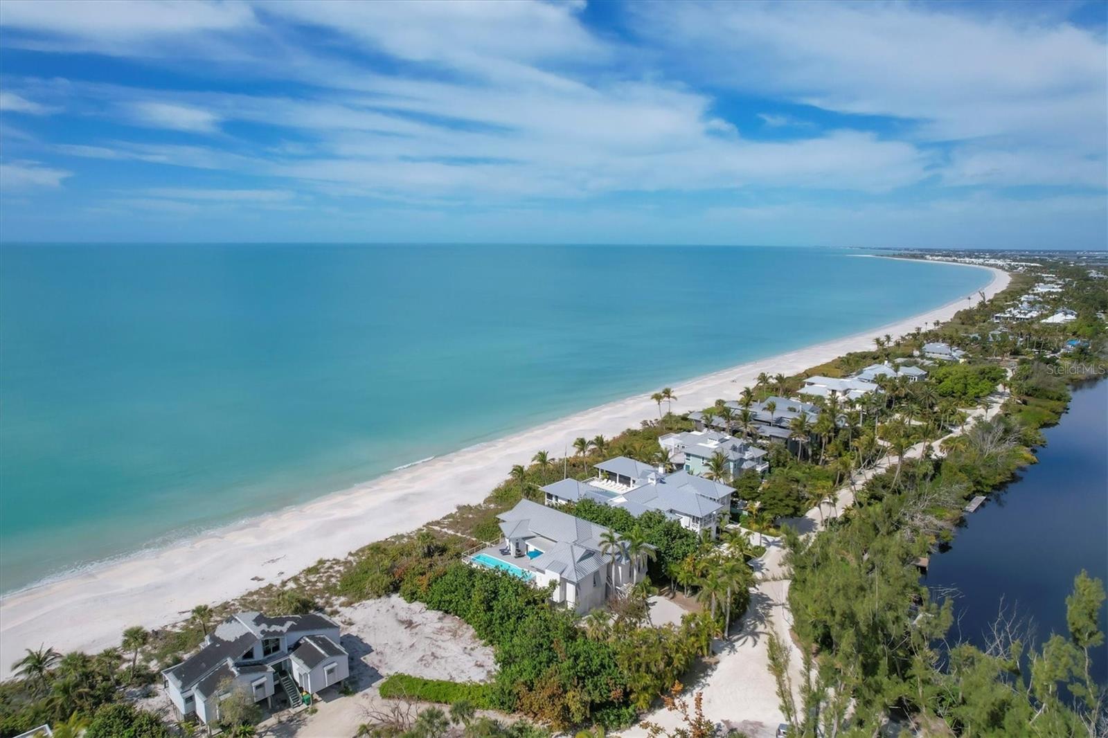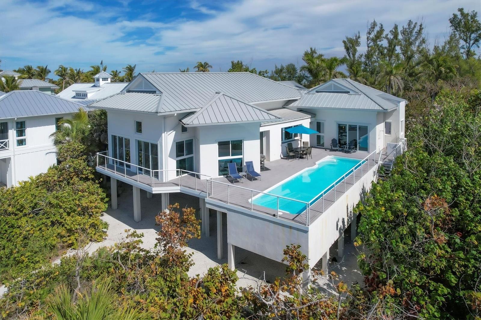 BEACHFRONT BOCA GRANDE! Nestled along the pristine shores of Boca Grande’s most exclusive beachfront lane sits this modern elevated estate, offering 105’ feet of unobstructed panoramic views of the beautiful cerulean waters and the sandy shores of the Gulf of Mexico. The perfect location offers blissful privacy yet close to everything this picturesque island has to offer. Discover the grandeur beauty of this 3 bedroom, 3 bathroom Gasparilla Island retreat. The expansive new sliding doors and windows offer stunning views from the living room out across the horizon paired with a plethora of natural light which cascades across the open concept floor plan, and its chic contemporary design. The galley kitchen hosts a modern and sleek concept, stainless appliances, beautiful views out over the pool and beach, and adjacent spacious formal dining area perfect for entertaining. The Primary suite radiates a peaceful and relaxing feel offering stunning views out to the pool through the floor to ceiling windows, and adjoining quaint private office. The ensuite master bath features a modern design with dual sinks, tiled walk-in shower and plenty of storage in the adjacent walk-in closet. The second bedroom offers a tranquil color scheme, expansive wall length closet, large windows showcasing the exterior's tropical foliage, and ensuite polished bathroom complete with walk-in shower. The third bedroom follows suite with its tranquil color scheme, plenty of natural light from the large windows with views out to the lush tropical landscaped estate grounds. The home's third bathroom is mere steps away featuring the same modernistic design throughout and offers a full-size bathing tub and shower combo. The attached laundry room features high efficiency washer and dryer for convenience and ease. Step out onto the grand deck and immerse yourself in the cool waters of the private pool perched above and surrounded in privacy by the lush tropical seascape. Only a short golf cart ride into downtown Boca Grande village where you can enjoy the eclectic boutiques, island shops, fine dining restaurants and the famous Gasparilla Inn all perched amongst a true old Florida atmosphere. ~See virtual tour link for 3D walkthrough tour~