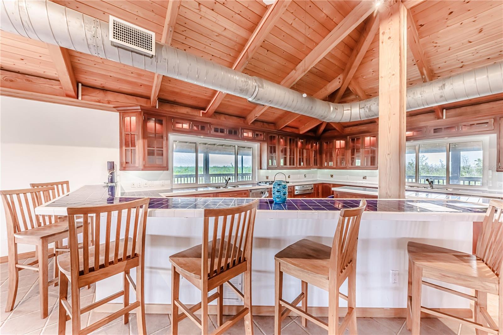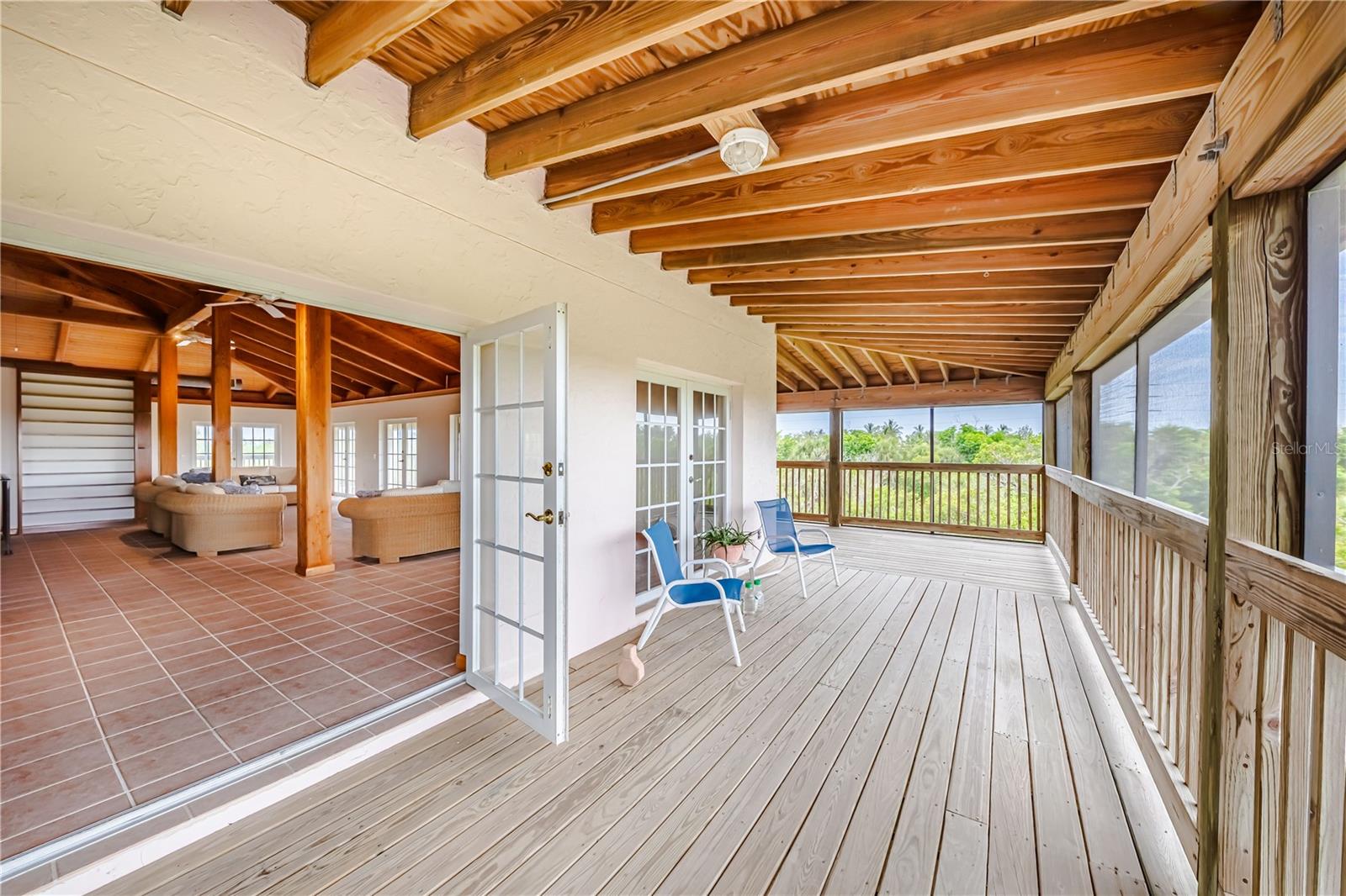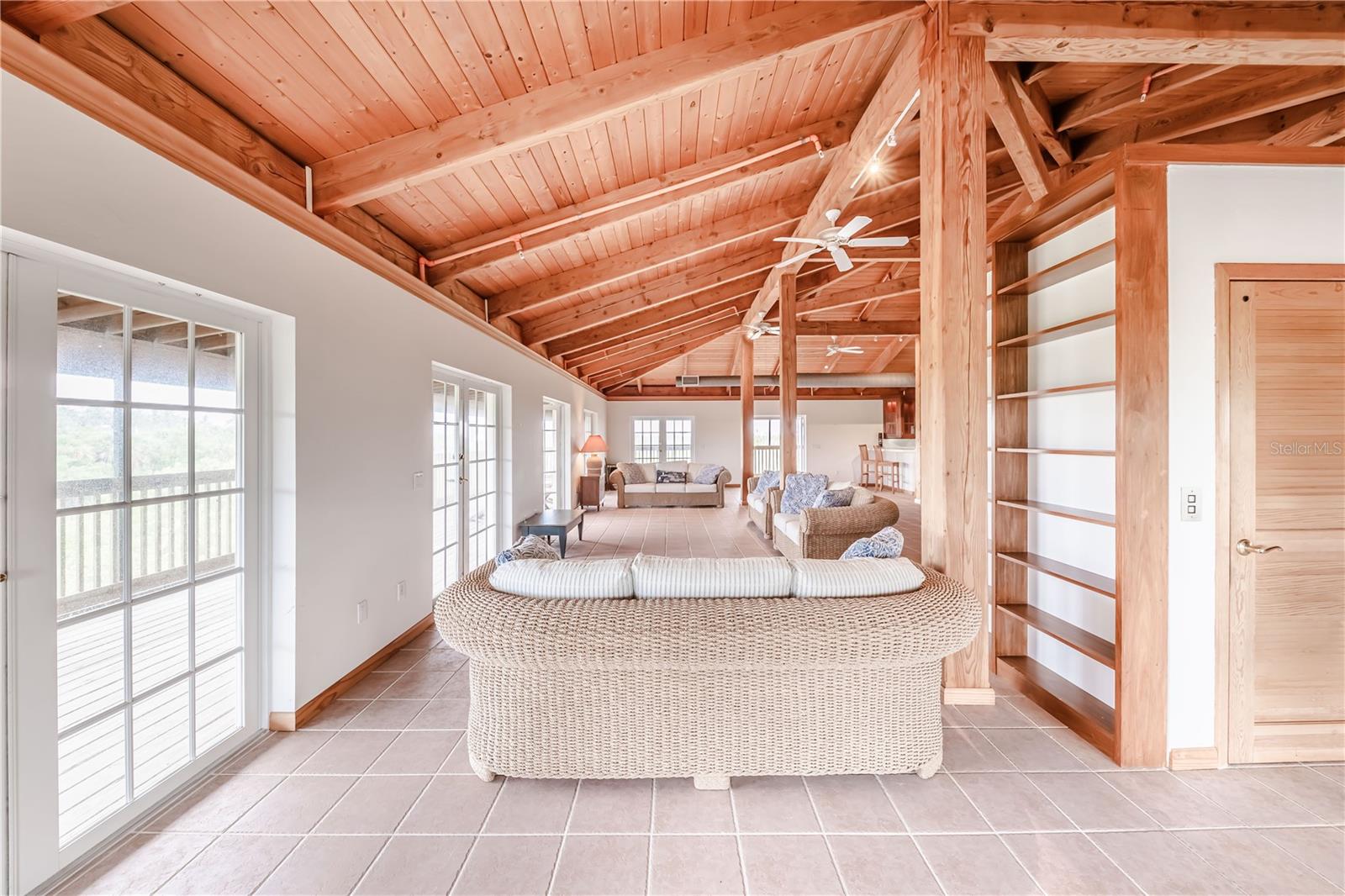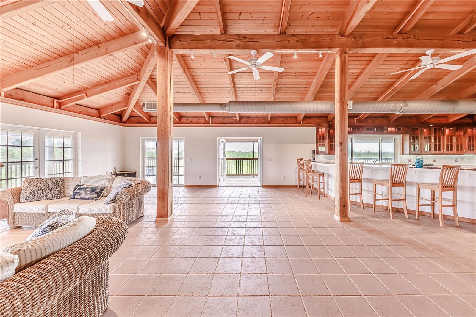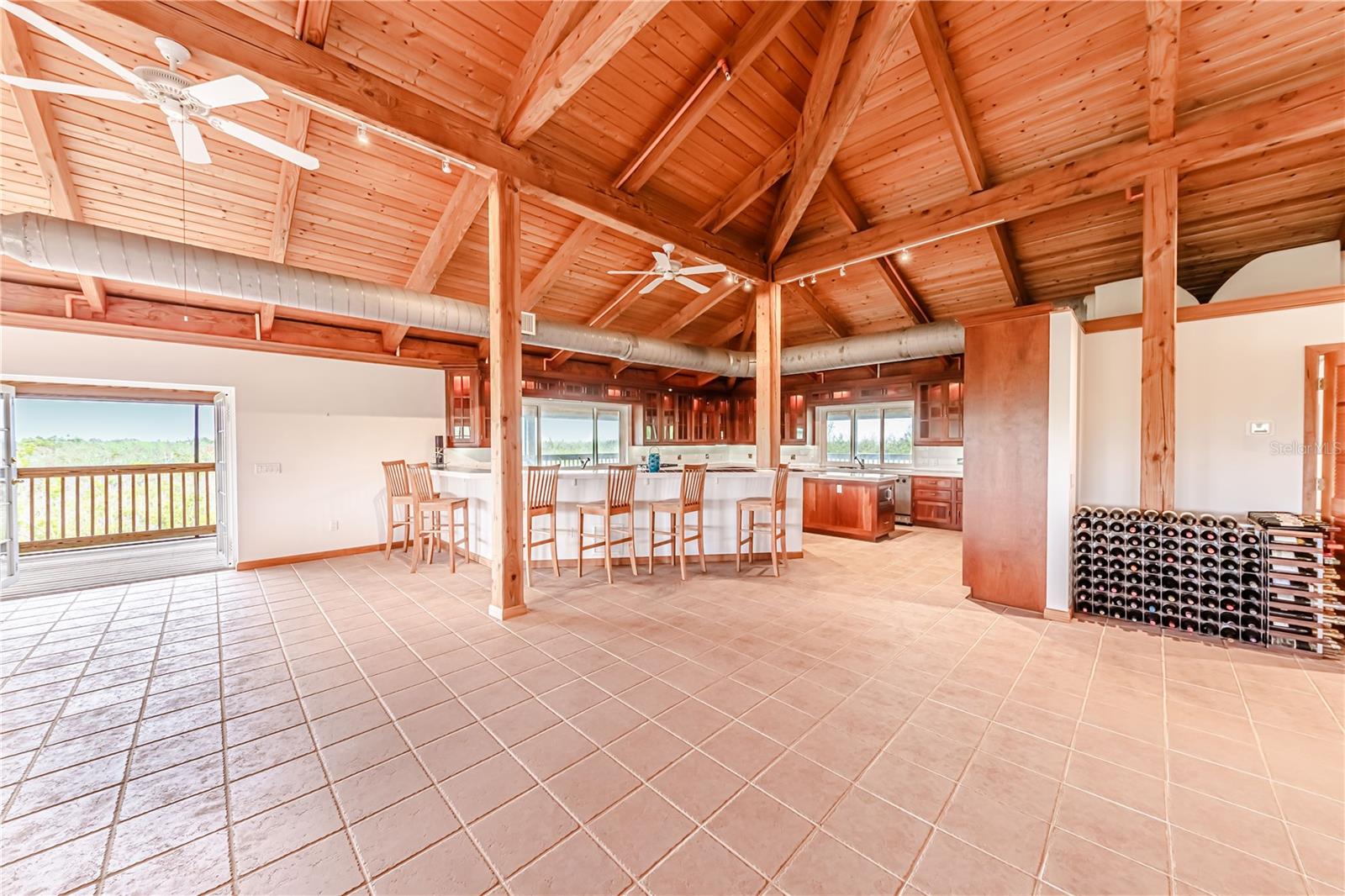 This custom home is warm and inviting with Douglas Fir vaulted ceilings and a great room concept. There is ample space for large gatherings inside with custom cherry cabinetry, Viking and Sub-Zero appliances, and a wet bar that can seat eight people dividing the kitchen from the great room. The two main floors have 10 ft. wide fully screened wrap around decks accessible through the many double French doors leading out. Truly a place to spend stress free time looking across the nature preserve that borders the property at nature’s ever-changing display of the sunrises or sunsets. There are four bedrooms and three full bathrooms as well as an office with an additional half bathroom and closet located on the first floor which also opens to the first-floor deck. All three floors of the home are accessible by a three-stop elevator. The entire living area of the home including the four-car garage and workshop located on the ground floor is protected by a water sprinkler fire suppression system. The metal roof was replaced in July 2021 and has a transferrable warranty, new carpet, 2 new air conditioners and new screen in porches. The 1.35 acre of land is zoned agriculture.