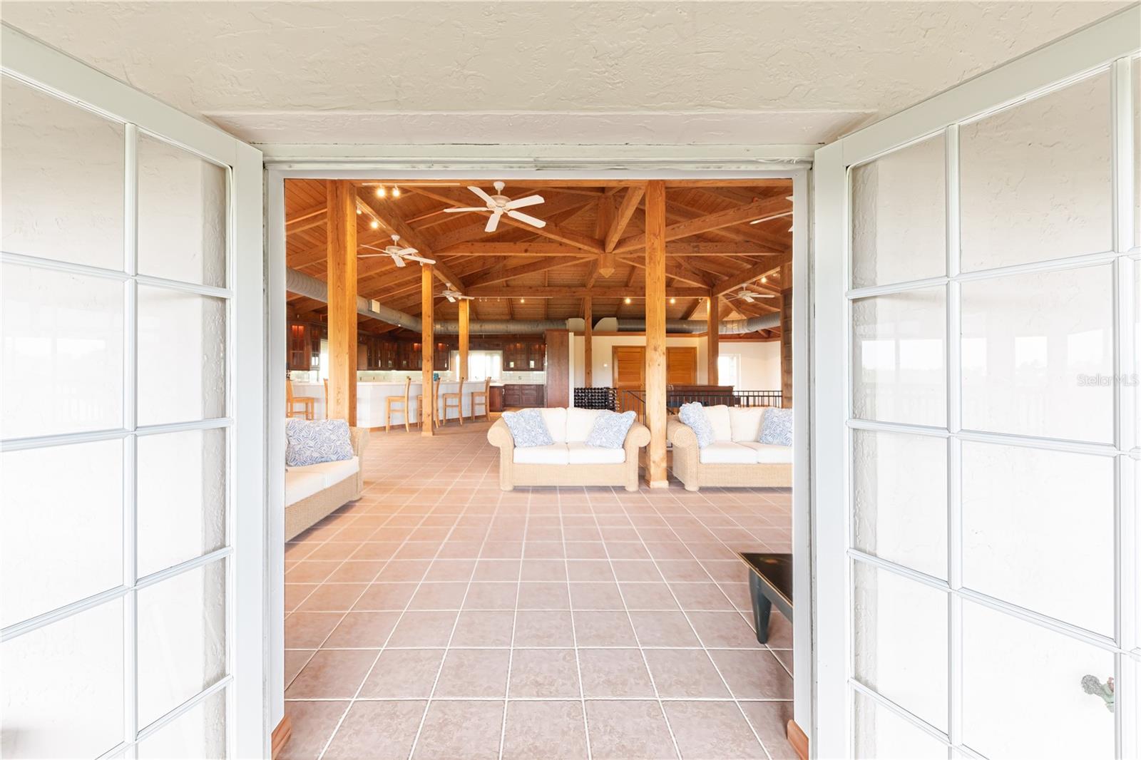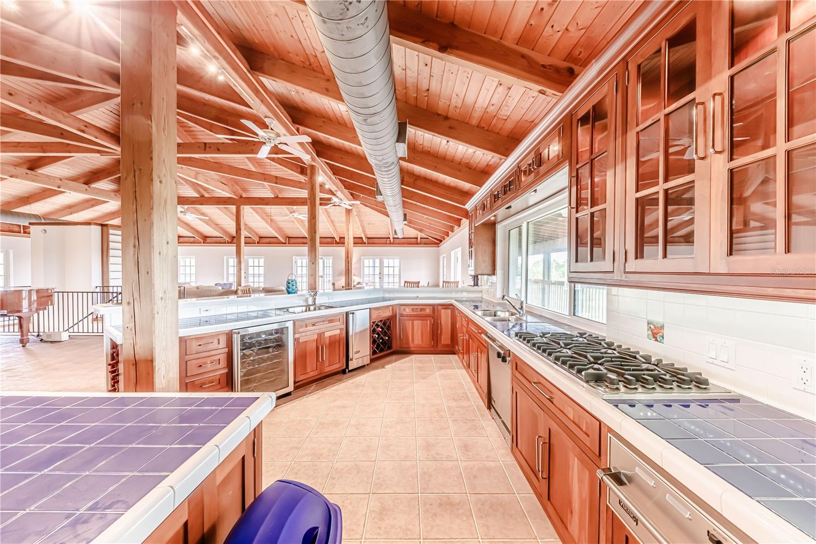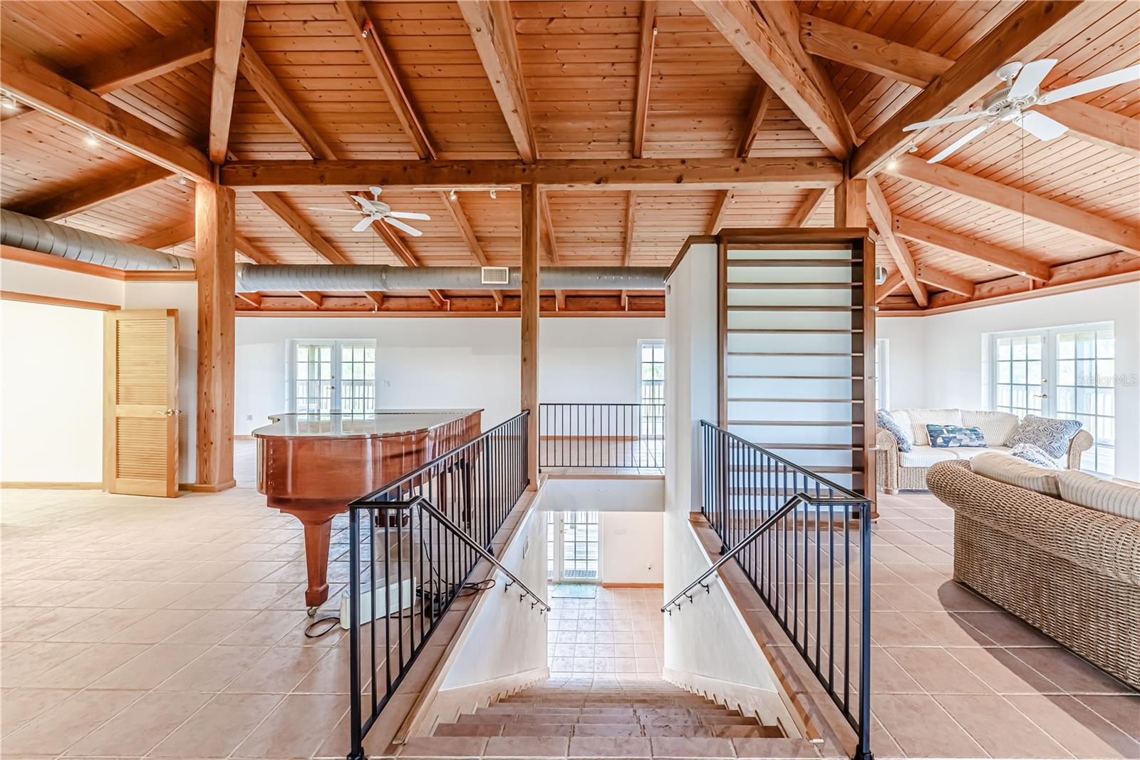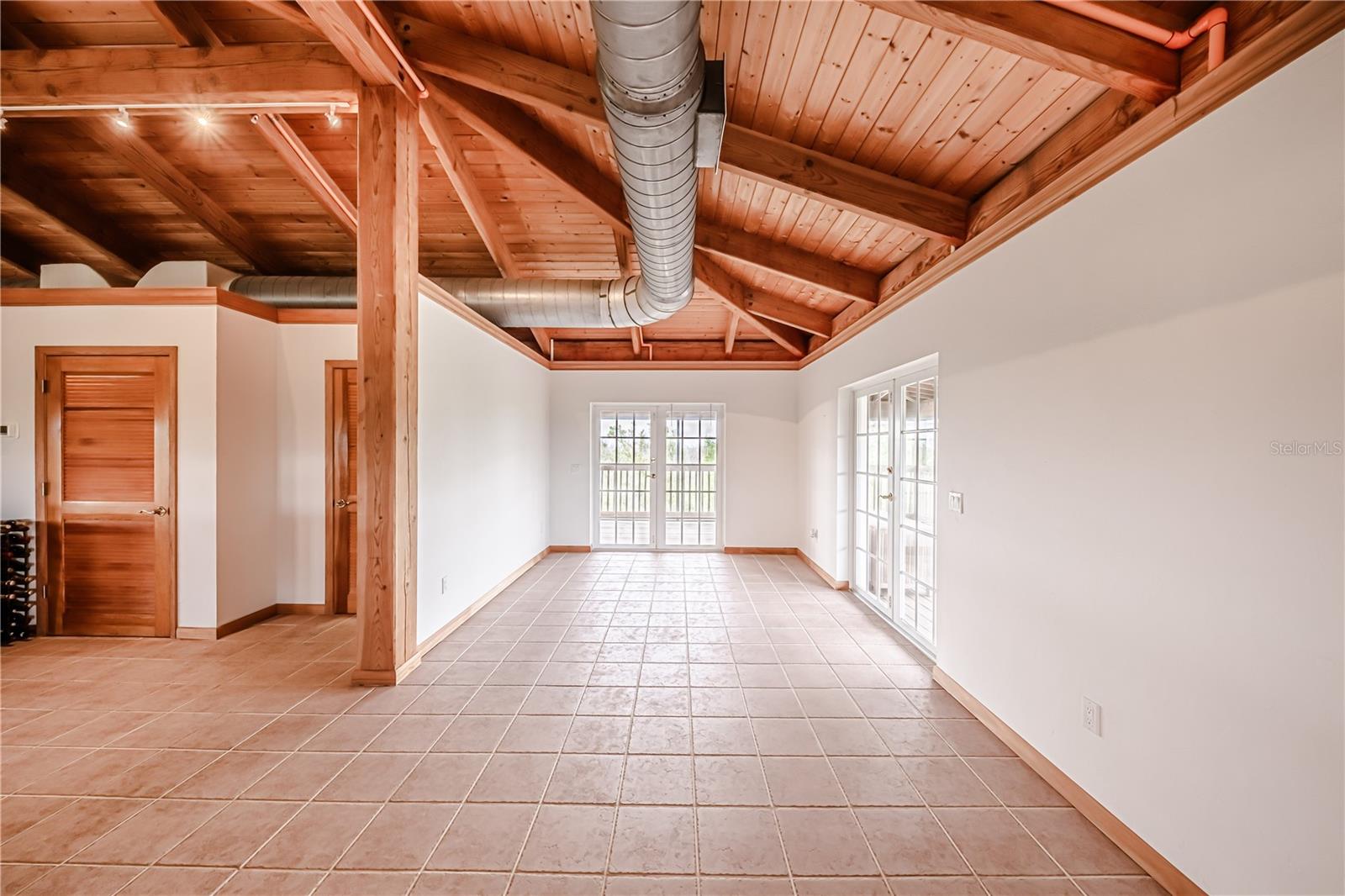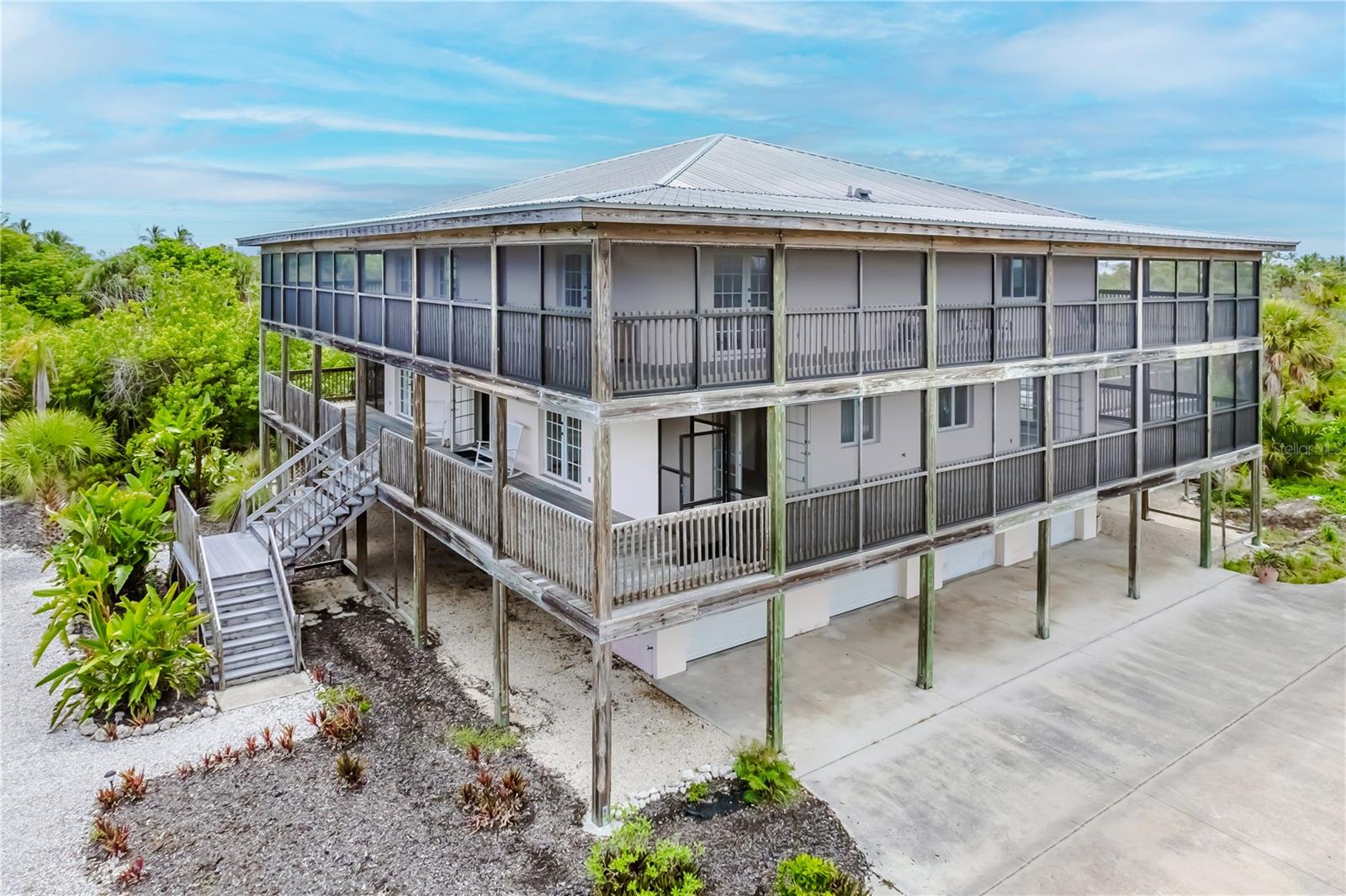 This custom home is warm and inviting with Douglas Fir vaulted ceilings and a great room concept. There is ample space for large gatherings inside with custom cherry cabinetry, Viking and Sub-Zero appliances, and a wet bar that can seat eight people dividing the kitchen from the great room. The two main floors have 10 ft. wide fully screened wrap around decks accessible through the many double French doors leading out. Truly a place to spend stress free time looking across the nature preserve that borders the property at nature’s ever-changing display of the sunrises or sunsets. There are four bedrooms and three full bathrooms as well as an office with an additional half bathroom and closet located on the first floor which also opens to the first-floor deck. All three floors of the home are accessible by a three-stop elevator. The entire living area of the home including the four-car garage and workshop located on the ground floor is protected by a water sprinkler fire suppression system. The metal roof was replaced in July 2021 and has a transferrable warranty, new carpet, 2 new air conditioners and new screen in porches. The 1.35 acre of land is zoned agriculture.