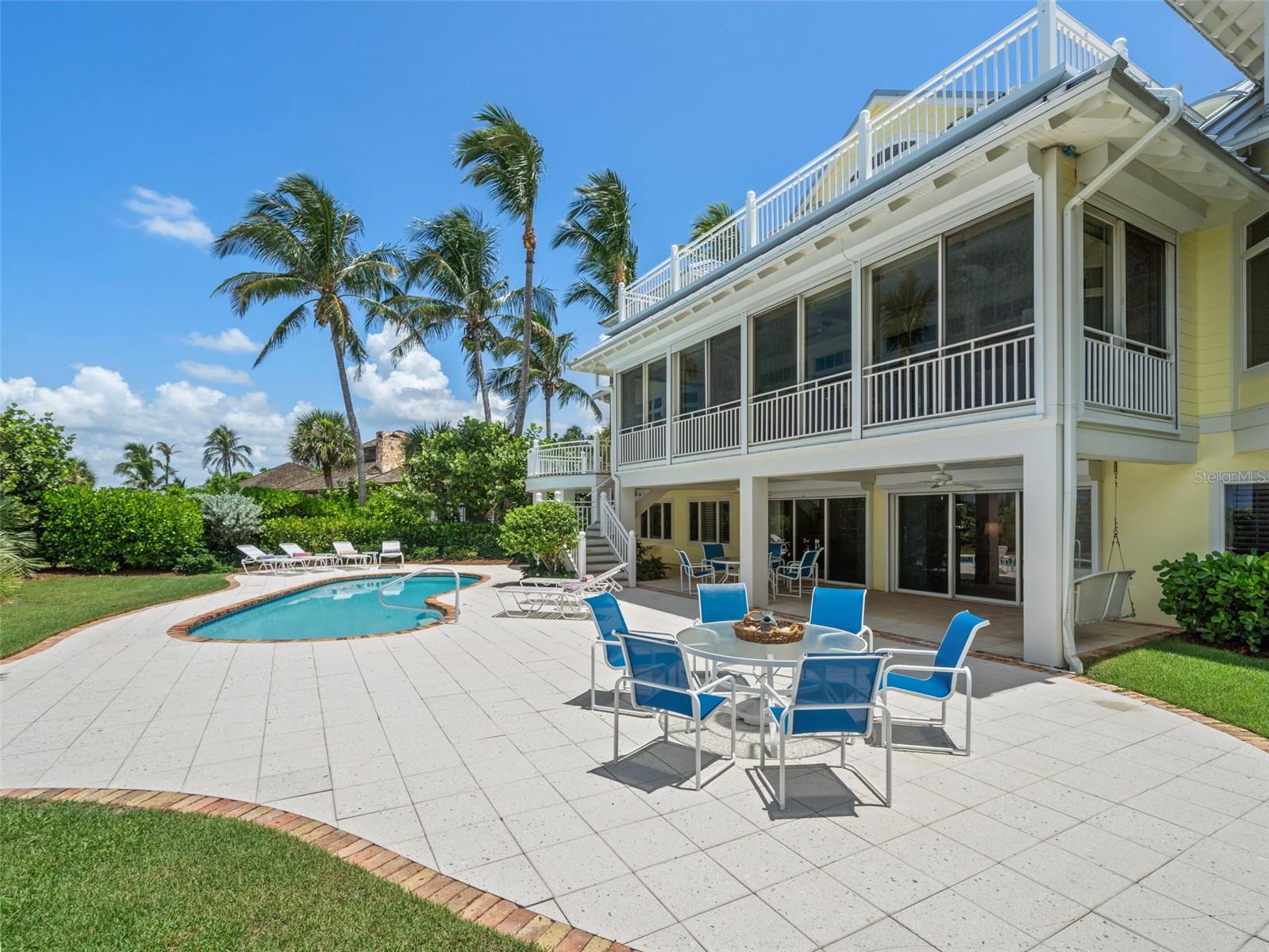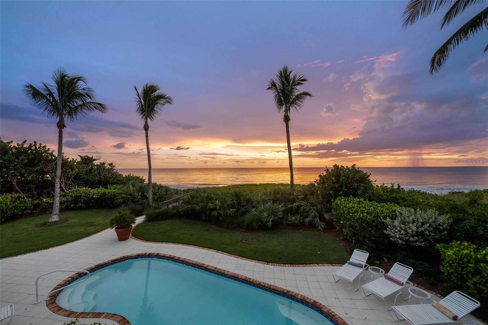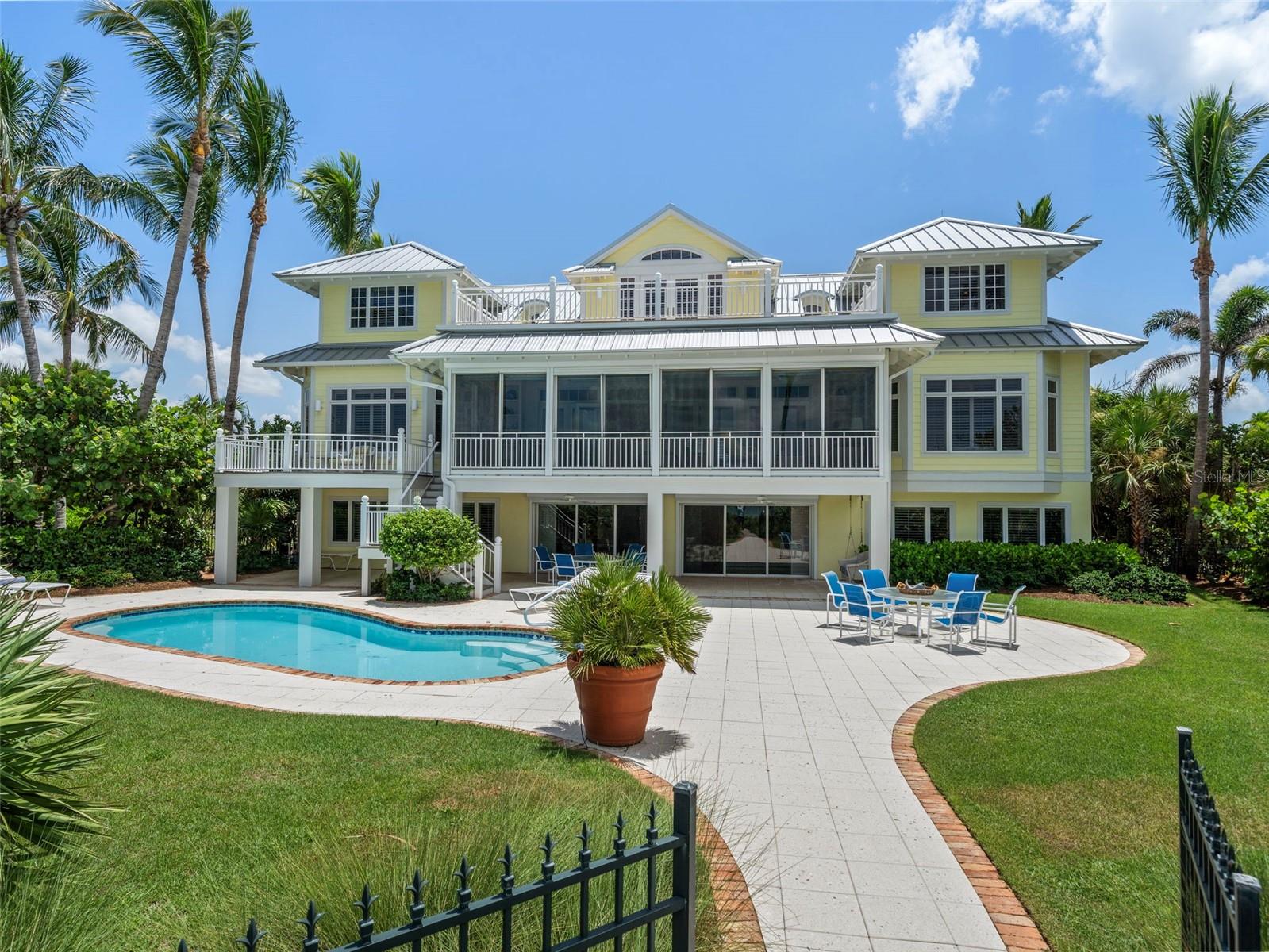Welcome to a truly exceptional retreat, nestled perfectly between Charlotte Harbor and the pristine shores of the Gulf of Mexico. This stunning Gulf-front residence epitomizes luxury and coastal living, offering a seamless blend of traditional elegance, modern sophistication and communion with Boca Grande’s “Old Florida” lifestyle. The generous 1.16- acre lot which includes ownership of the adjacent eastern lagoon is situated on one of the Islands premier private roads improved with only gulf front homes with exclusive beach access. This traditional coastal-style residence is complete with 5 bedrooms and 6.5 baths and its custom construction is a true masterpiece of design and craftsmanship. As you enter, you are greeted by a spacious and open floorplan, large open porches and breathtaking Gulf or Harbor vistas from almost every room in the house. All three levels of the residence are accessible by stairs or elevator which are in close proximity to both garage facilities. The gourmet kitchen is beautifully outfitted with custom wood cabinets, twin Sub-Zero refrigerators, twin Sub-Zero beverage drawers, Wolf cooktop, double ovens and a multitude of other custom finishes. The main living floor also includes a luxurious primary bedroom with separate dual baths, large custom closet and direct access to an elegant den/office. The second living level, you’ll find three generously sized guest suites, each with their own bath, as well as a second laundry room, a study, and a comfortable living room with gorgeous waterfront porches. The residence enjoys a refined aesthetic complete with beautiful hardwood floors, plush wool carpets, smooth drywall finishes, faux painting, custom built-ins and stunning wood trims and moldings throughout the home all of which are enhanced by the properties automated whole house Lutron lighting system. The exterior of the home is highlighted by its in-ground pool and paver deck which has direct beach access. This rare and private outdoor Oasis is perfect for just relaxing, family gatherings and entertaining friends. This home in not only finished beautifully but extremely well built on concrete pile with many other construction features including; Anderson impact-resistant doors and windows, standing seam aluminum roof, composite siding, Brazilian hardwood decks and a gas powered whole house generator. Please review the many additional custom features for this home which are outlined in the properties feature sheet. This Boca Grande gem is more than just a home; it's a lifestyle. With its prime location, stunning views, and unparalleled craftsmanship, this beachfront estate presents a once-in-a-lifetime opportunity to own a truly exceptional piece of Gulf Coast luxury.
