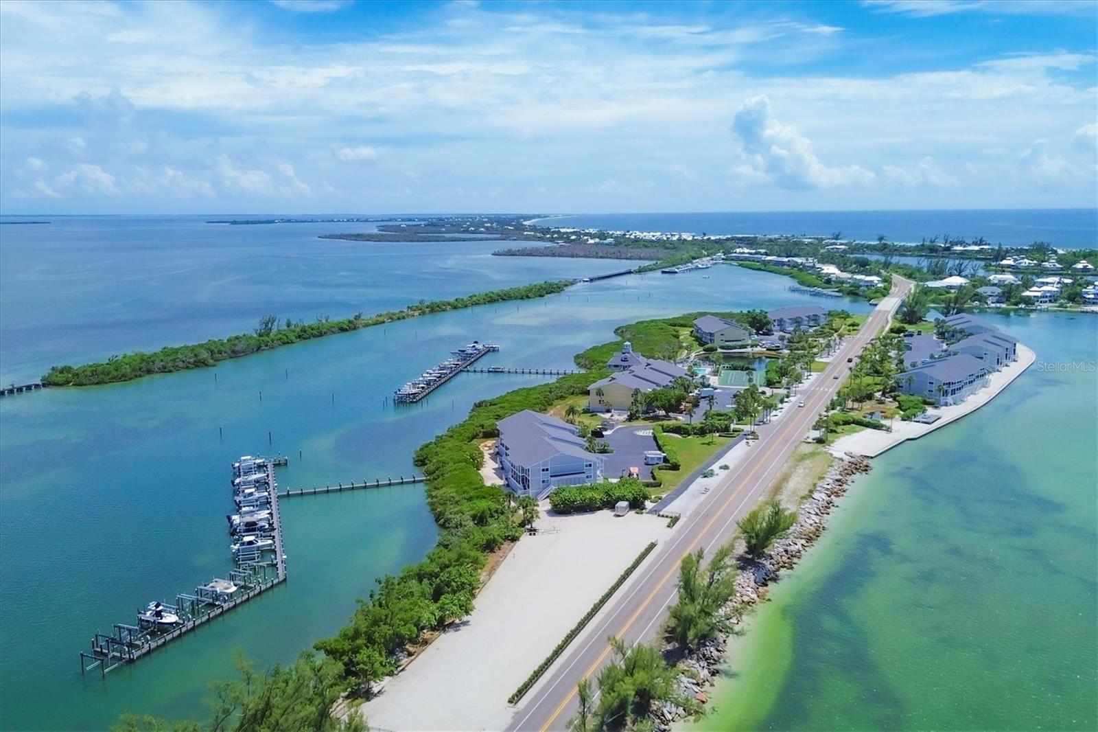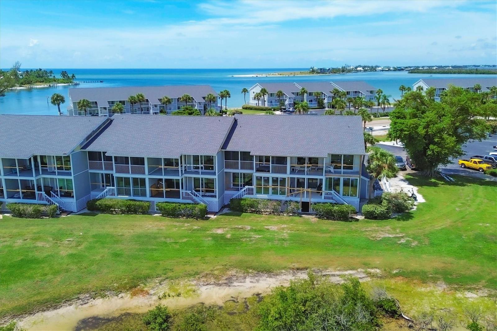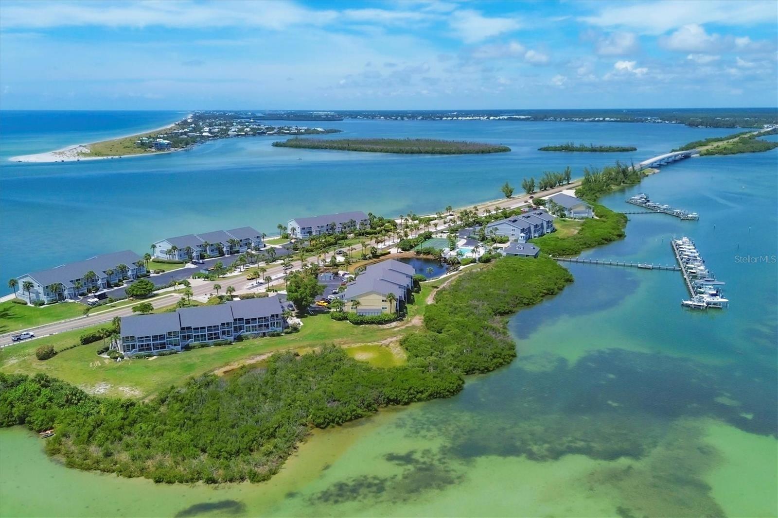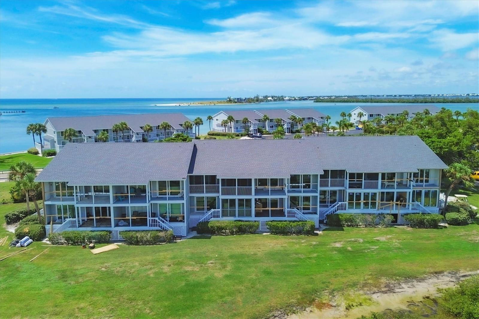 Bay front, first floor Boca Grande North condominium with Marina and Intracoastal water views! This 2-bedroom, 2-bathroom, 1,248 sq. ft. unit has amazing sunrise views from the master bedroom and living room screened porches and sunset views off the guest bedrooms private balcony! The first-floor location offers easy walk up with groceries and direct walkout off the rear screened lanai. The kitchen was reconfigured with a large marble island and kitchen countertops plus all new stainless steel Samsung appliances! A new air conditioner and hot water heater have been installed, new washer and dryer are included, and new impact windows and doors are in with a custom front door! The property is practically brand new after being renovated from the studs! All electrical and plumbing was updated, spray foam insulation was added, and new drywall, LED lighting, and luxury vinyl flooring are installed throughout! Like you would find in new construction, part of the rebuilding was adding additional strapping around all trusses and rods connected from roof to foundation and the pilings below. Boca Grande North offers you a secure gated community, heated swimming pool and spa, tennis / pickle ball court (under renovation), outdoor BBQ grills and streetlights (soon), private sea walled beach with sun deck and boat docks are available for lease or purchase at additional cost. Call for a showing today!