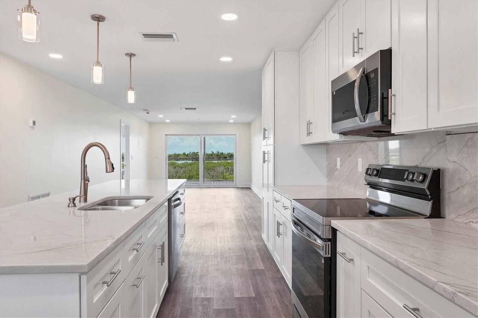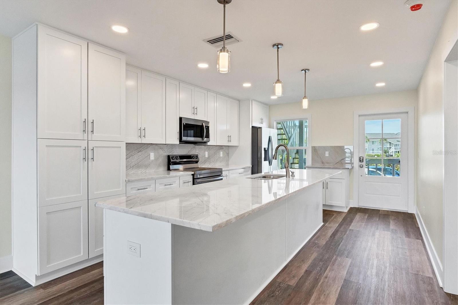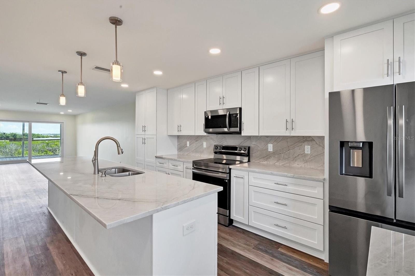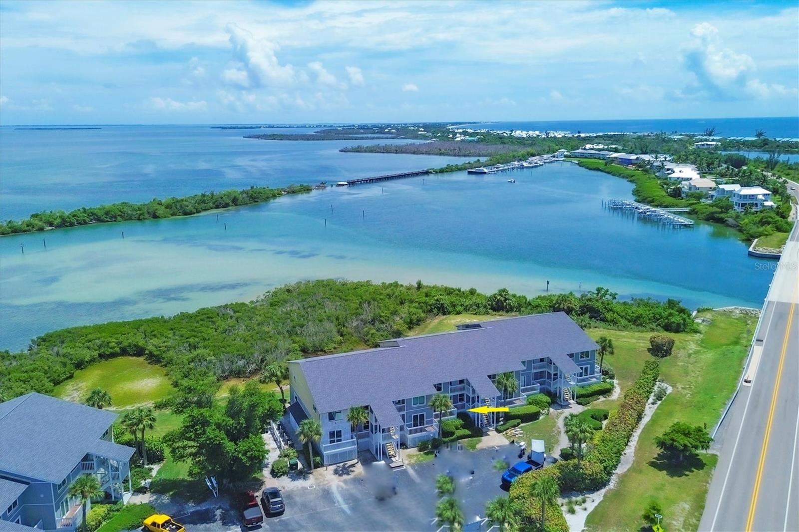 Bay front, first floor Boca Grande North condominium with Marina and Intracoastal water views! This 2-bedroom, 2-bathroom, 1,248 sq. ft. unit has amazing sunrise views from the master bedroom and living room screened porches and sunset views off the guest bedrooms private balcony! The first-floor location offers easy walk up with groceries and direct walkout off the rear screened lanai. The kitchen was reconfigured with a large marble island and kitchen countertops plus all new stainless steel Samsung appliances! A new air conditioner and hot water heater have been installed, new washer and dryer are included, and new impact windows and doors are in with a custom front door! The property is practically brand new after being renovated from the studs! All electrical and plumbing was updated, spray foam insulation was added, and new drywall, LED lighting, and luxury vinyl flooring are installed throughout! Like you would find in new construction, part of the rebuilding was adding additional strapping around all trusses and rods connected from roof to foundation and the pilings below. Boca Grande North offers you a secure gated community, heated swimming pool and spa, tennis / pickle ball court (under renovation), outdoor BBQ grills and streetlights (soon), private sea walled beach with sun deck and boat docks are available for lease or purchase at additional cost. Call for a showing today!