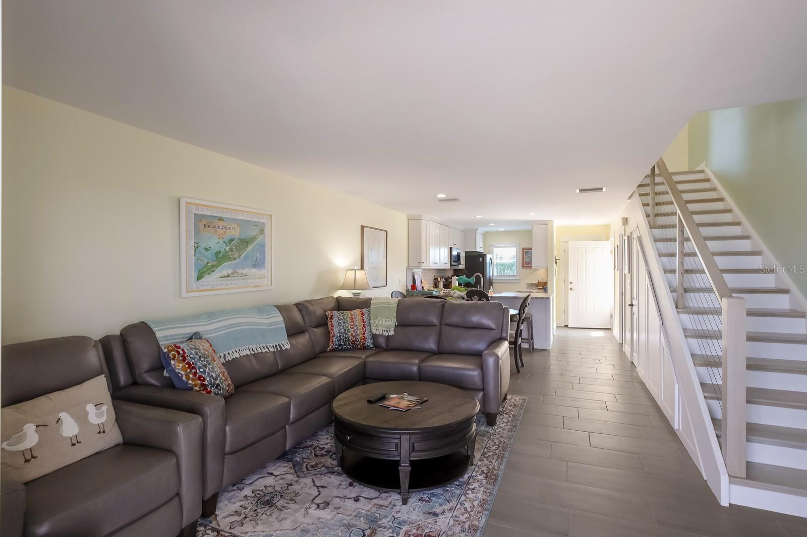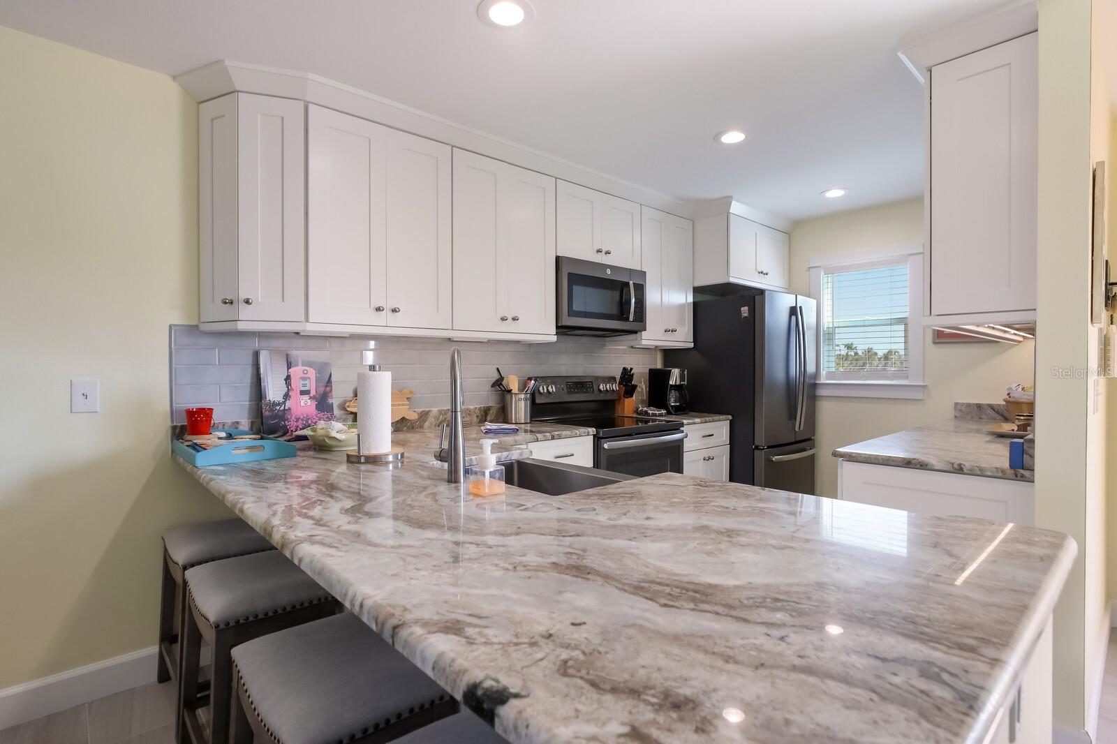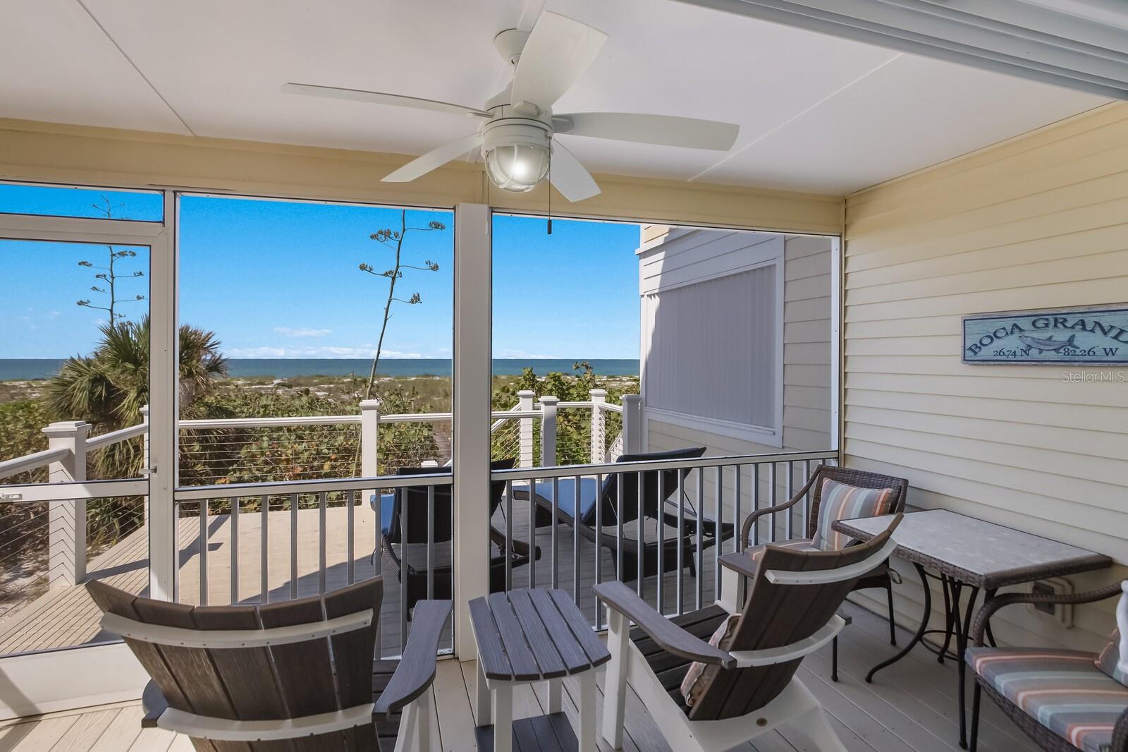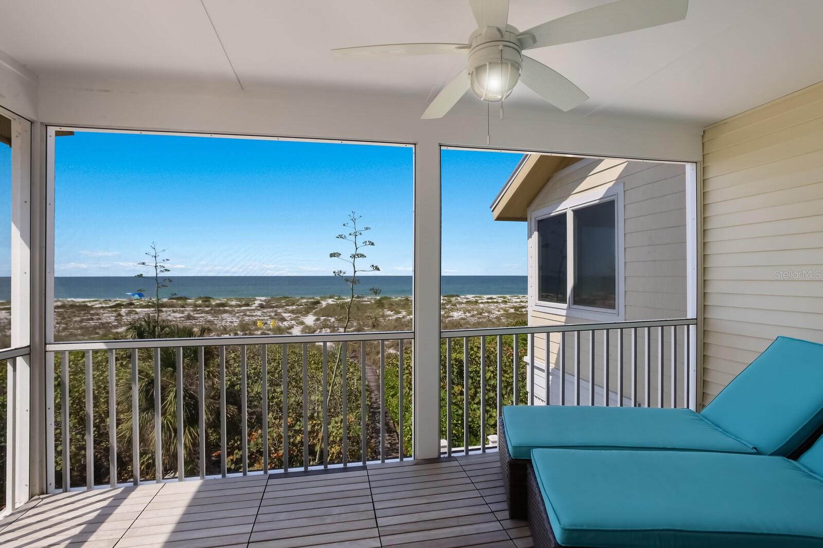 Spectacular Southern exposure corner beach front villa that has been impeccably rebuilt featuring expanded, incredible, open beachfront sunning deck maximizing the Gulf of Mexico sunset views! The main level includes an open and spacious living room, dining area, and all new stainless GE appliances, custom wood cabinetry and beautiful Marble countertops throughout the home. Meticulously crafted wood finishes, plank tile, maintenance free floors throughout, looks exactly like wood. Additional features include; refined wood staircase, cable railing, custom lighting, subway tile backsplash and much more! Gulfside screened porch out to the newly added spacious open deck on the beach! The Southern exposure and Westerly Sunsets are breathtaking. Top floor is comprised of the guest ensuite bedroom and bath, Gulfside Master ensuite bedroom and bath...complete with screened porch and floating Teak deck. The ground level, out of the sun patio features a fully enclosed outdoor shower, all leading to the pristine beach. The newer garage offers back of the enclosed space french doors for south side access for the golf cart. The revamped exterior features; 2021 metal roof, impact glass throughout, Trex decking with soffits, trim and composite siding. HOA approved plans to add an ensuite bedroom with modified entry. A complete, like new, beautiful TownHome...come and visit!