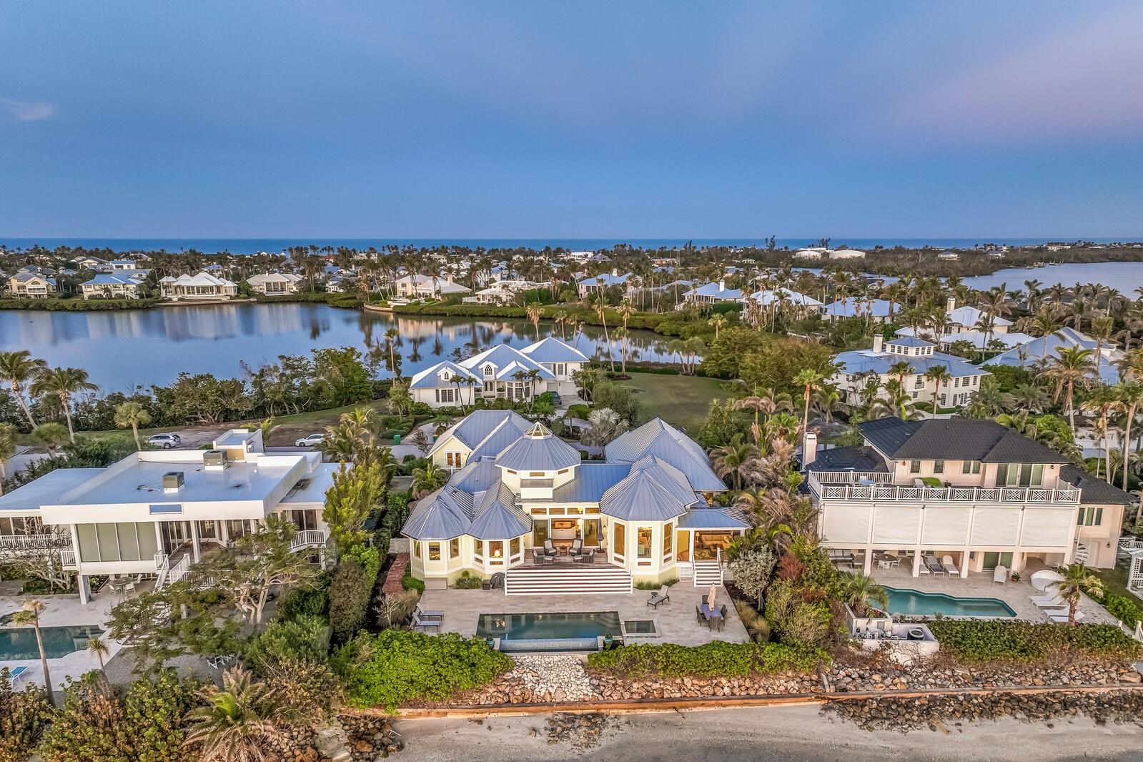 Located within the gated community of Boca Grande Isles, this exquisite four-bedroom, five-and-a-half-bathroom waterfront residence underwent a clever two-year transformation involving redesign and reconstruction. Designed for ease of maintenance, the property is equipped with impact windows, a standing-seam metal roof, cement board siding, and Ipe decking, ensuring aesthetic appeal and longevity. The home boasts panoramic water views stretching across the horizon and exuding a timeless feel with vaulted ceilings and custom finishes throughout. The heart of the home presents an open layout that seamlessly blends the living, dining, and kitchen areas. The gourmet kitchen features a 6-burner gas range, custom cabinetry, and a gracious center island. With the harbor as the backdrop, the space is perfect for entertaining. The great room over the garage is complete with a wet bar, beverage cooler, and a private bath. It offers versatility as an office, an in-home gym, a game room, or a private suite. On the main level of the home, the primary bedroom offers a front-row seat to stunning sunrises, the perfect beginning to each new day. It’s complemented by a spectacular ensuite bathroom featuring a soaking tub and a large walk-in shower. Each of the additional bedrooms are located on the opposite side of the home, ensuring optimal privacy and comfort for family and friends. Thoughtfully designed, these ensuite retreats ensure everyone will feel pampered in their own private oasis. The outdoor living space rivals the interior's allure. The serene waterfront setting creates a haven of tranquility that lends itself perfectly to relaxing by the infinity pool or curling up with your favorite book on the screened porch. This impeccably maintained home is part of the charming community of Boca Grande on Gasparilla Island, where quaint charm prevails amidst the absence of high rises and traffic lights. While cars are allowed, residents here favor modes of transportation such as bikes, golf carts, and leisurely strolls along dedicated pathways. Outdoor enthusiasts will embrace the sunshine, pristine beaches, and abundant fishing options. With quick golf cart access to the village and the beach, this home presents an unparalleled opportunity to capture the true essence of the Boca Grande lifestyle. Paradise found.