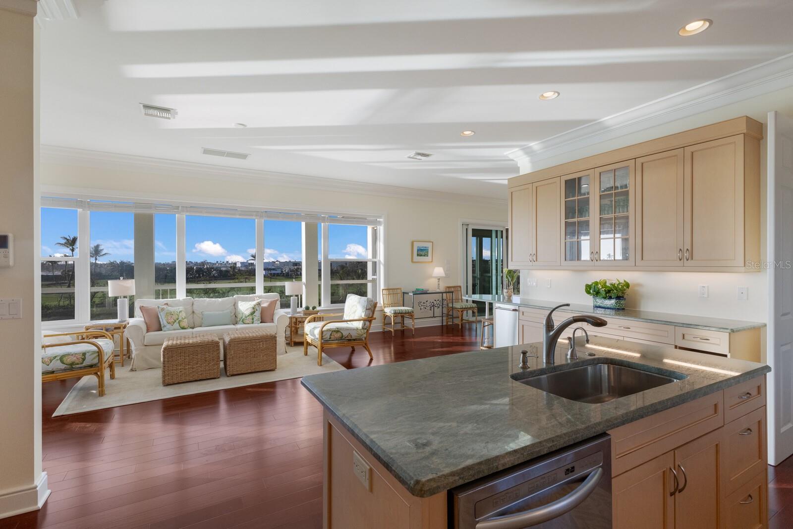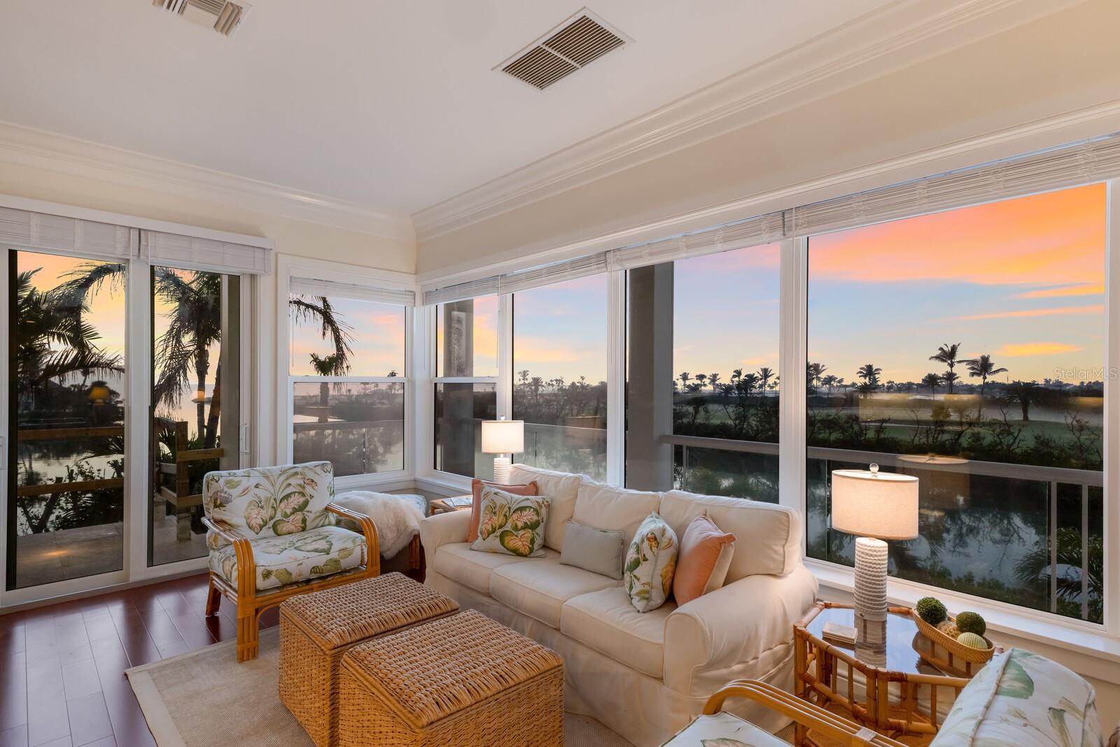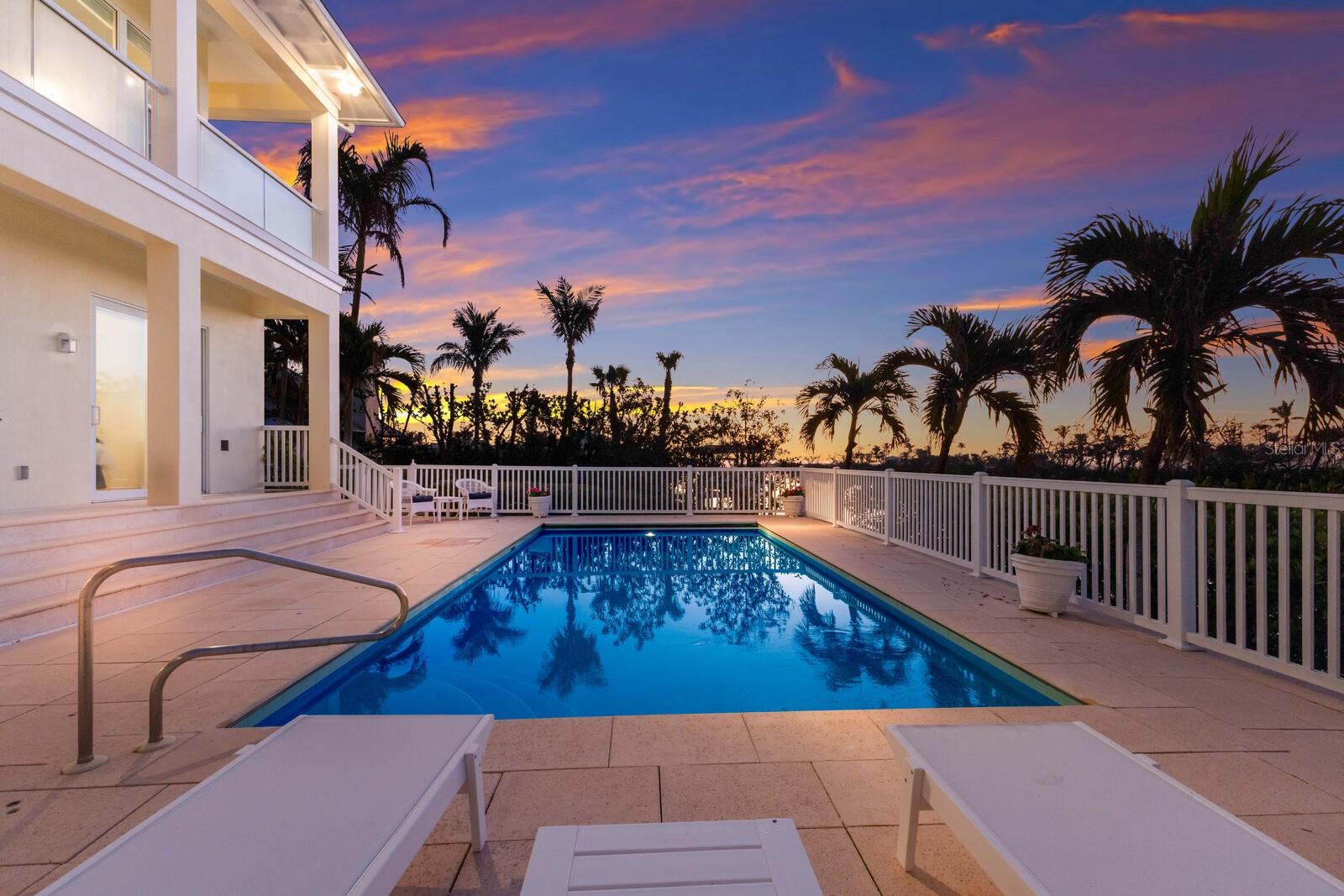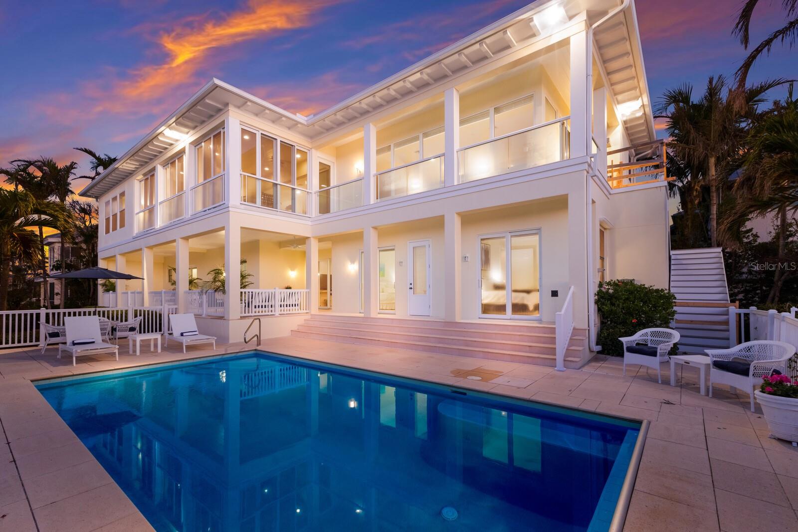 This exceptional waterfront property on a large tip lot boasts breathtaking views of Charlotte Harbor, The Gasparilla Inn Golf Course, and the surrounding natural landscape. With 170 feet of frontage, it provides deep-water dockage with a 50' dock and boat lift. Built in 2011, the home’s main floor showcases a spacious living room with a fireplace and adjacent dining area. Sliding doors lead from the living room to a spectacular sunroom, where floor-to-ceiling windows frame stunning water and golf course views, creating a breathtaking backdrop for everyday living. The open-concept kitchen is equipped with high-end appliances, including a Sub-Zero refrigerator, double ovens, induction cooktop, and separate ice maker, all complemented by a beautiful granite island and countertops. Off the kitchen is a spectacular family room leading to a grilling patio. Noteworthy millwork, including custom door trim and crown moldings, enhances the home’s luxurious feel. The primary suite, overlooking the waterway, includes a small office and a spacious spa-like bathroom featuring dual vanities, two closets, and two water closets. There is also a flexible bonus room perfect for a den, office, or workout room. Ideal for family and guests, the lower level boasts four en-suite bedrooms along with a shared coffee bar and family room. Beautiful wood floors, impact-resistant windows and doors, and superior construction quality round out this thoughtfully designed home. A convenient elevator provides easy access to all floors. The expansive outdoor living space is a true highlight, with a spacious covered patio offering ample seating for relaxing or entertaining while enjoying serene views. A large heated pool offers the ultimate Florida lifestyle experience, and rear southern exposure ensures optimal sunlight throughout the day. A grassy area, swaying palm trees, and steps leading to a deck with a boat lift complete this tropical outdoor retreat. Additional highlights include plenty of storage space and a two-car garage with a separate golf cart entrance. Savor both sunrise and sunset views from this exquisite home, located within the private, gated community of Boca Grande Isles. Just a short distance from the historic village of Boca Grande’s, charming shops, restaurants, and historic buildings, this home is a true gem.
