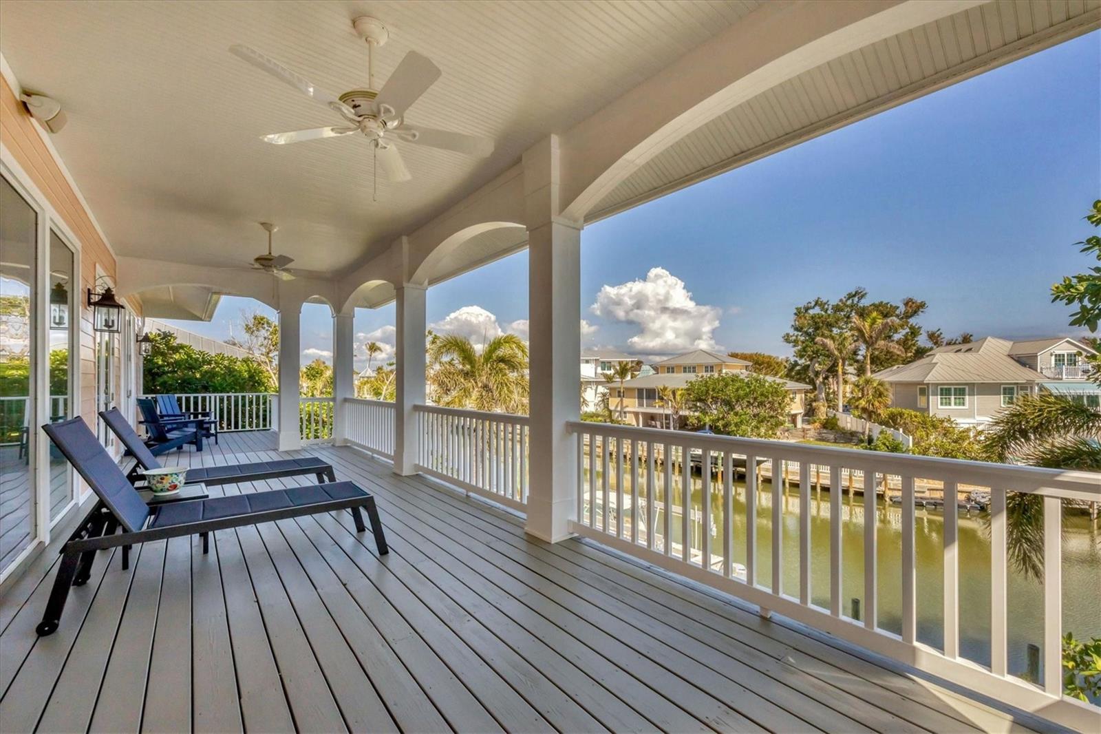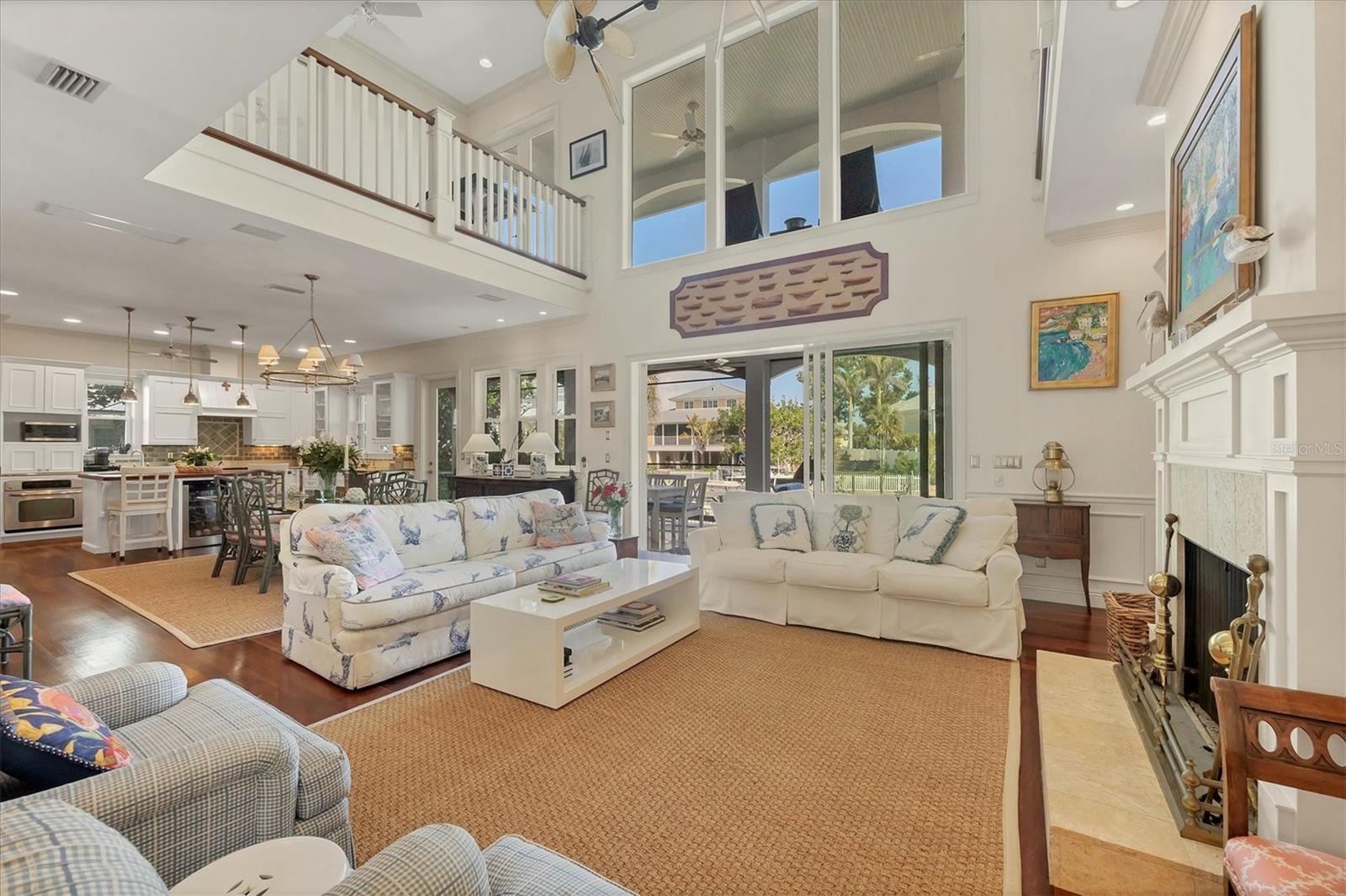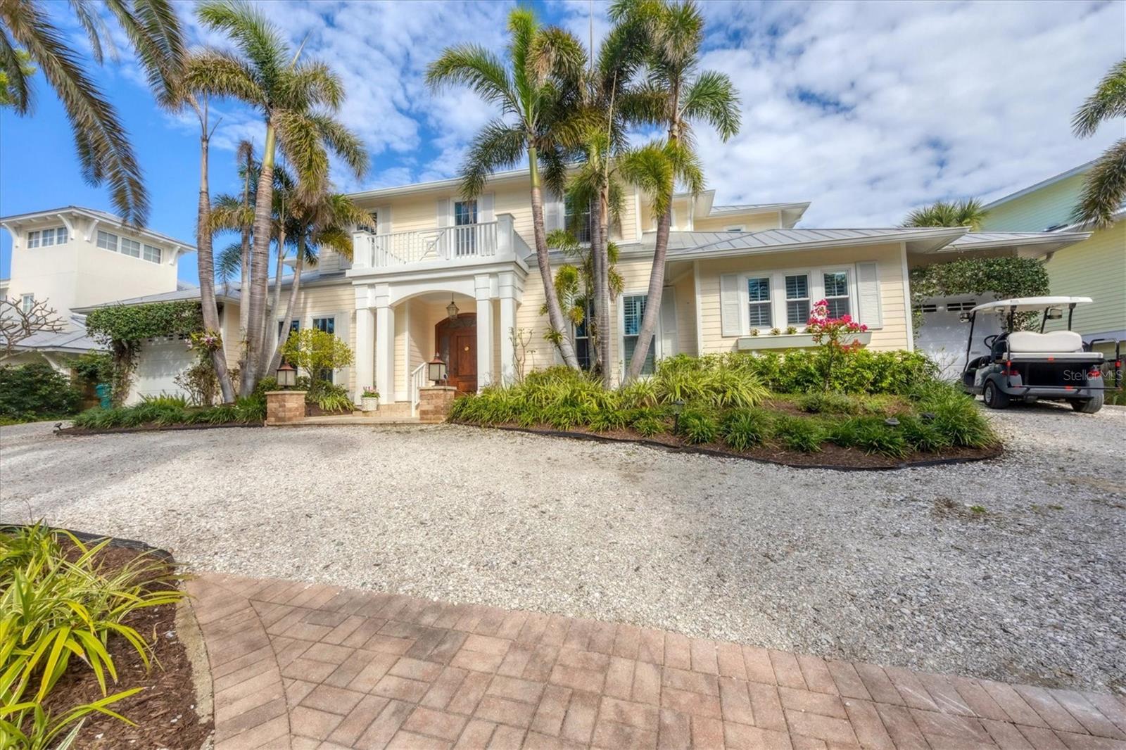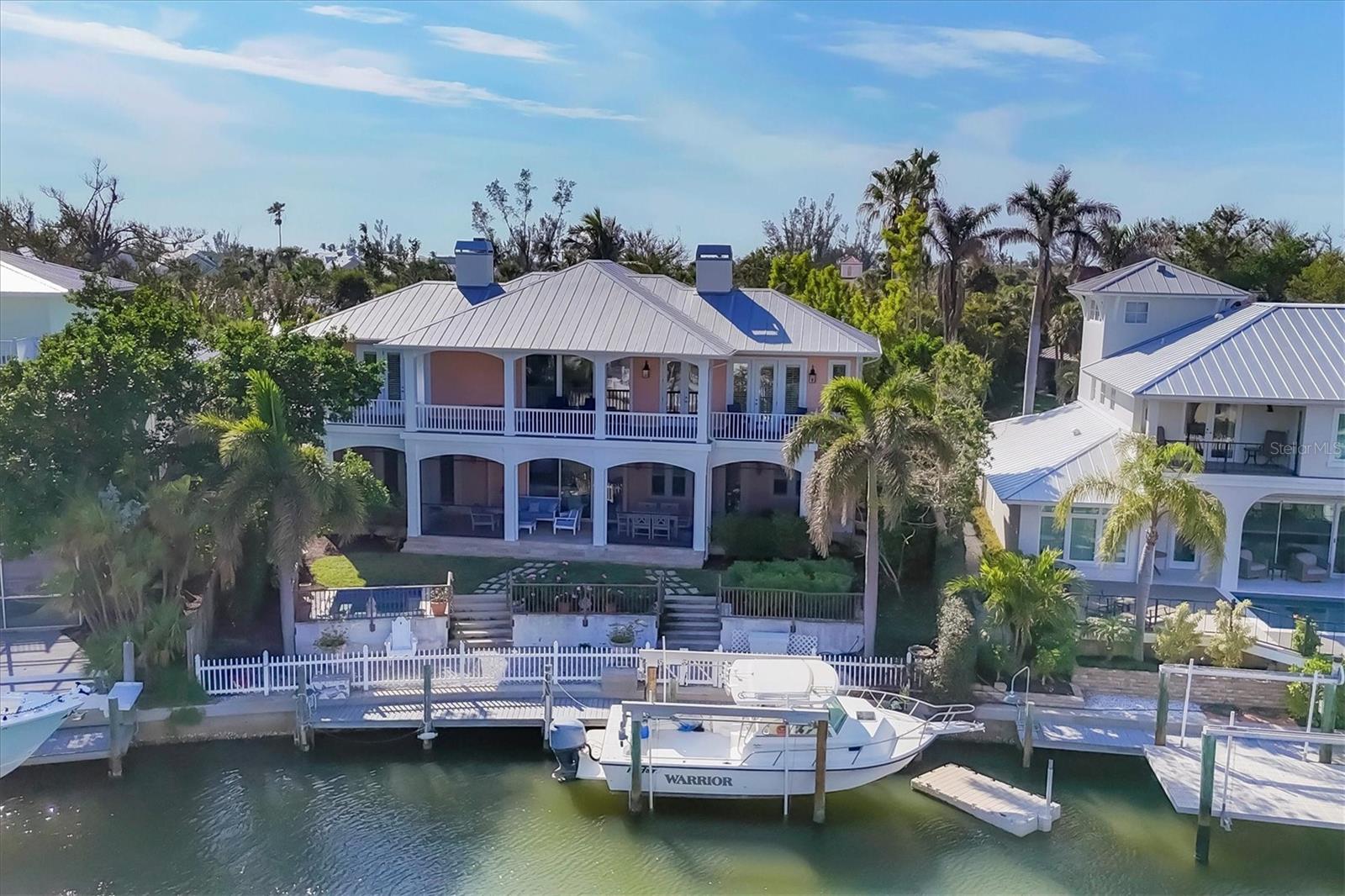 Welcome to your dream waterfront oasis at 120 Palm Ave. This custom-built, single-family luxury home exudes a warm and inviting ambiance, perfect for creating lasting family memories. Step inside through the grand mahogany front door and be greeted by the timeless elegance of limestone and wood floors, complemented by plush carpeting in the bedrooms for ultimate comfort. The heart of the home, the kitchen, is a chef's delight, boasting granite countertops, a Brazilian cherry-topped island, two ovens, and a convenient pantry. Gather around the wood fireplace with its unique coral tile detail in the living area, where chair rail and box molding add a touch of classic sophistication. The spacious layout includes 5 bedrooms plus an office/den featuring a beautifully wood-accented ceiling, and 4 full bathrooms, ensuring ample space for family and guests. Plantation shutters throughout add a touch of privacy and coastal charm. Enjoy seamless indoor-outdoor living with a large, screened porch on the first level, complete with electronic screens, and an expansive open deck on the second level – both offering long water views. A heated splash pool that can also be used as a spa provides a refreshing escape, while the private boat dock with a 17,000 lb lift caters to the avid boater. Practical features include an existing elevator shaft ready for easy installation, separate golf cart and car garages, and the peace of mind of all impact windows and doors. Located in the charming village of Boca Grande, you'll be within easy walking distance of the beach, restaurants, and shops, allowing you to embrace the relaxed island lifestyle. This is more than just a house; it's a place to call home.