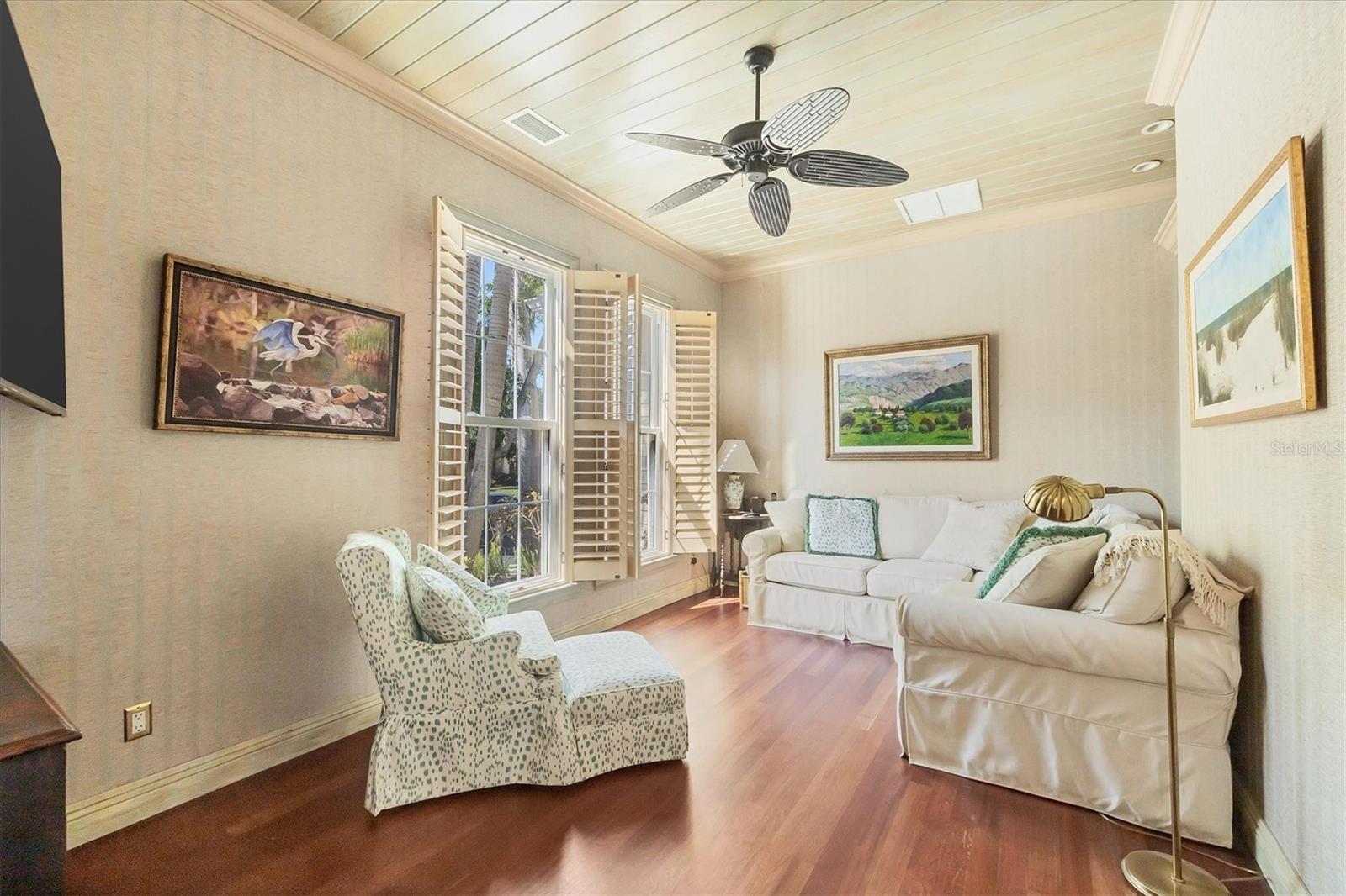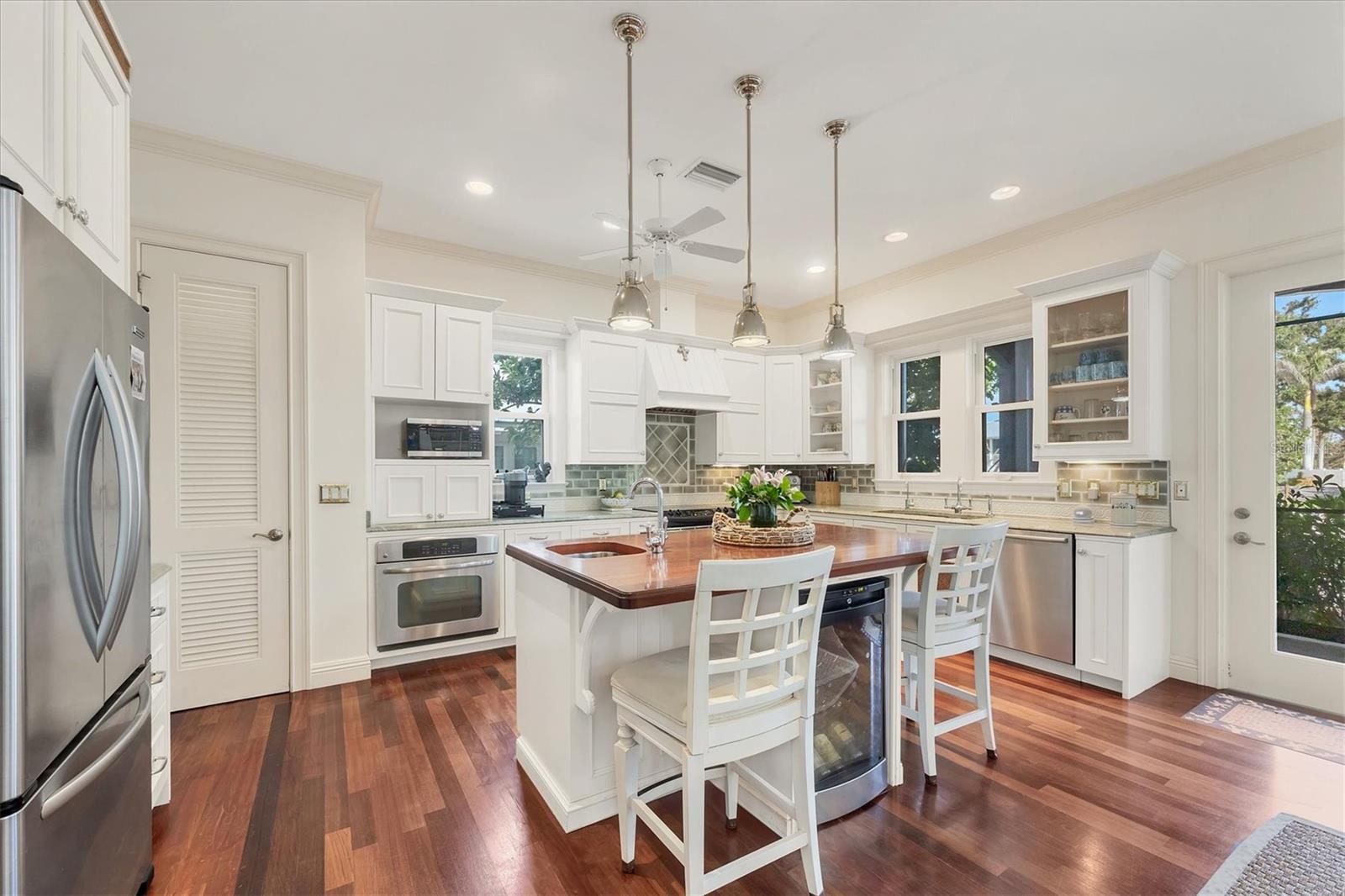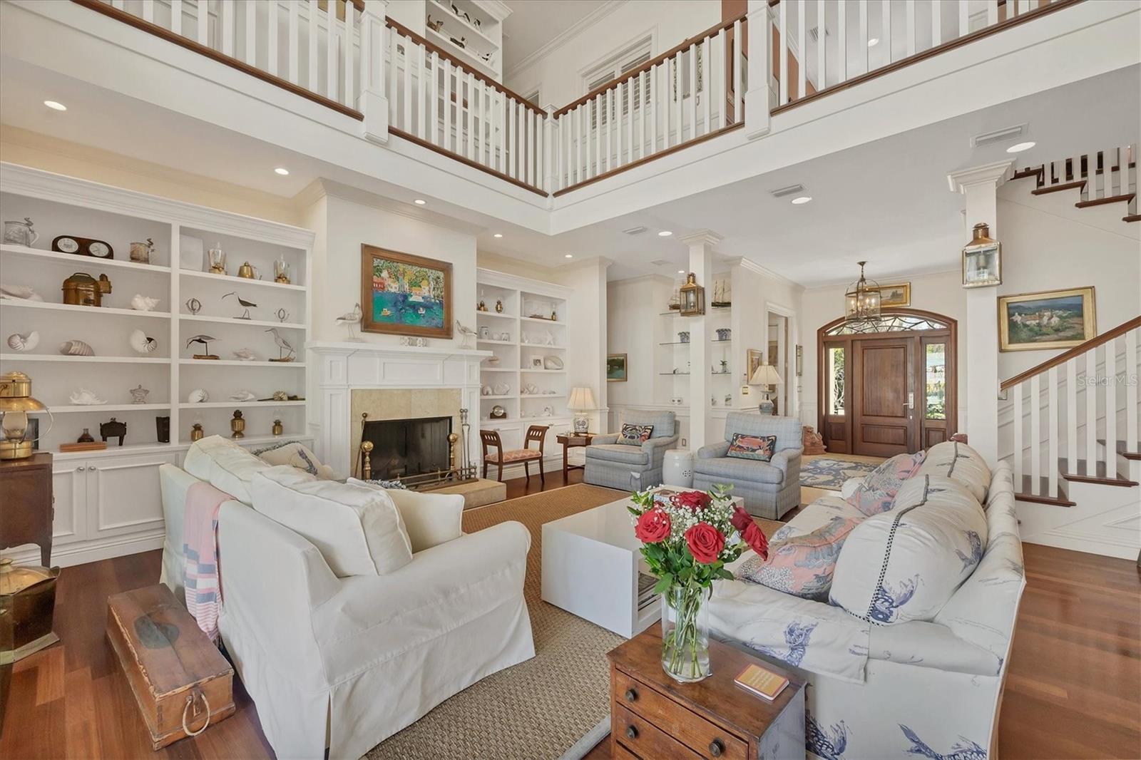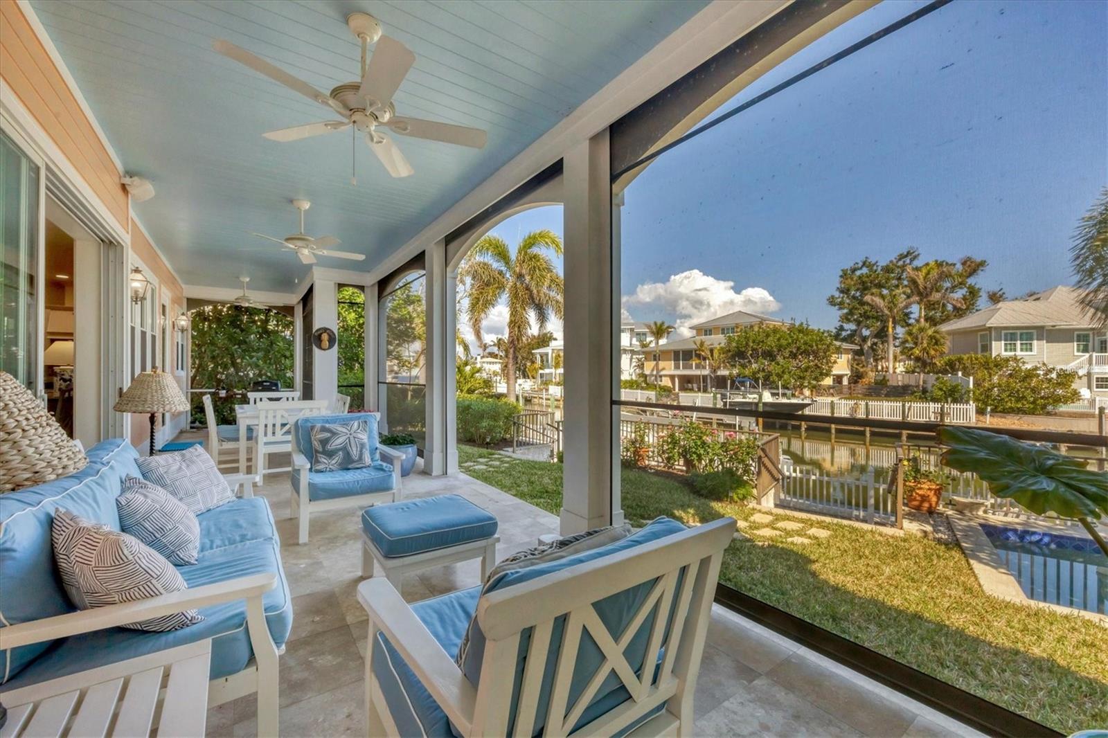 Welcome to your dream waterfront oasis at 120 Palm Ave. This custom-built, single-family luxury home exudes a warm and inviting ambiance, perfect for creating lasting family memories. Step inside through the grand mahogany front door and be greeted by the timeless elegance of limestone and wood floors, complemented by plush carpeting in the bedrooms for ultimate comfort. The heart of the home, the kitchen, is a chef's delight, boasting granite countertops, a Brazilian cherry-topped island, two ovens, and a convenient pantry. Gather around the wood fireplace with its unique coral tile detail in the living area, where chair rail and box molding add a touch of classic sophistication. The spacious layout includes 5 bedrooms plus an office/den featuring a beautifully wood-accented ceiling, and 4 full bathrooms, ensuring ample space for family and guests. Plantation shutters throughout add a touch of privacy and coastal charm. Enjoy seamless indoor-outdoor living with a large, screened porch on the first level, complete with electronic screens, and an expansive open deck on the second level – both offering long water views. A heated splash pool that can also be used as a spa provides a refreshing escape, while the private boat dock with a 17,000 lb lift caters to the avid boater. Practical features include an existing elevator shaft ready for easy installation, separate golf cart and car garages, and the peace of mind of all impact windows and doors. Located in the charming village of Boca Grande, you'll be within easy walking distance of the beach, restaurants, and shops, allowing you to embrace the relaxed island lifestyle. This is more than just a house; it's a place to call home.
