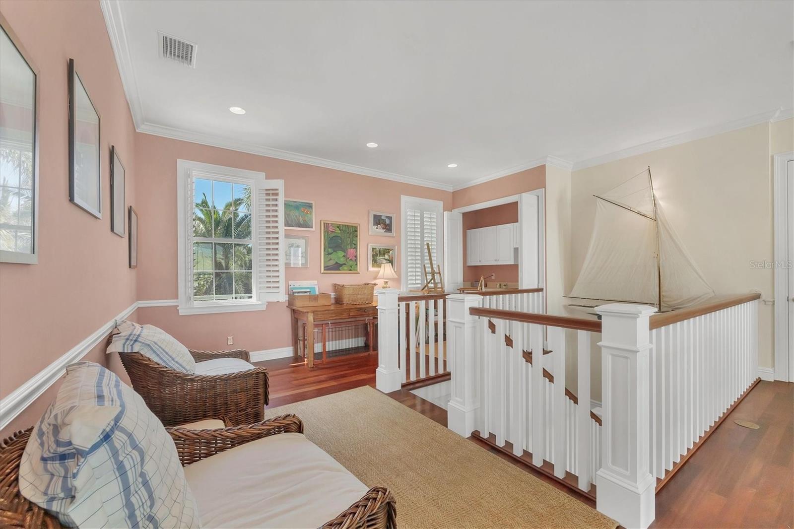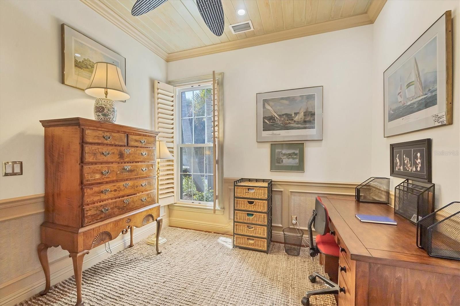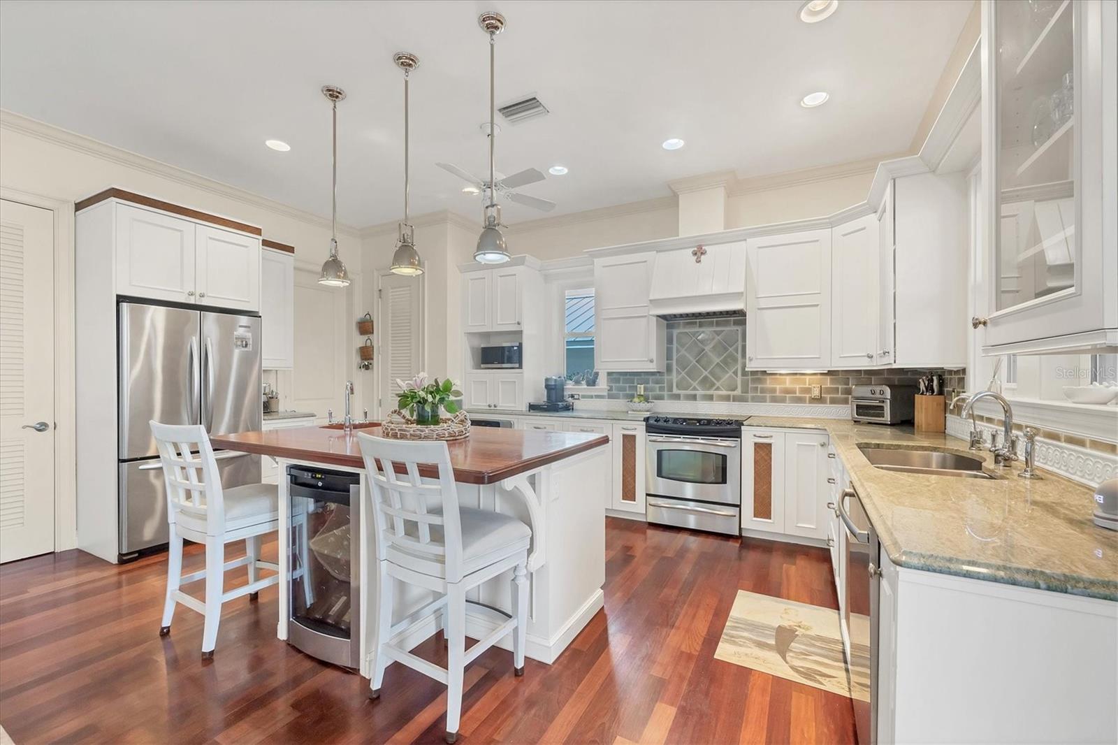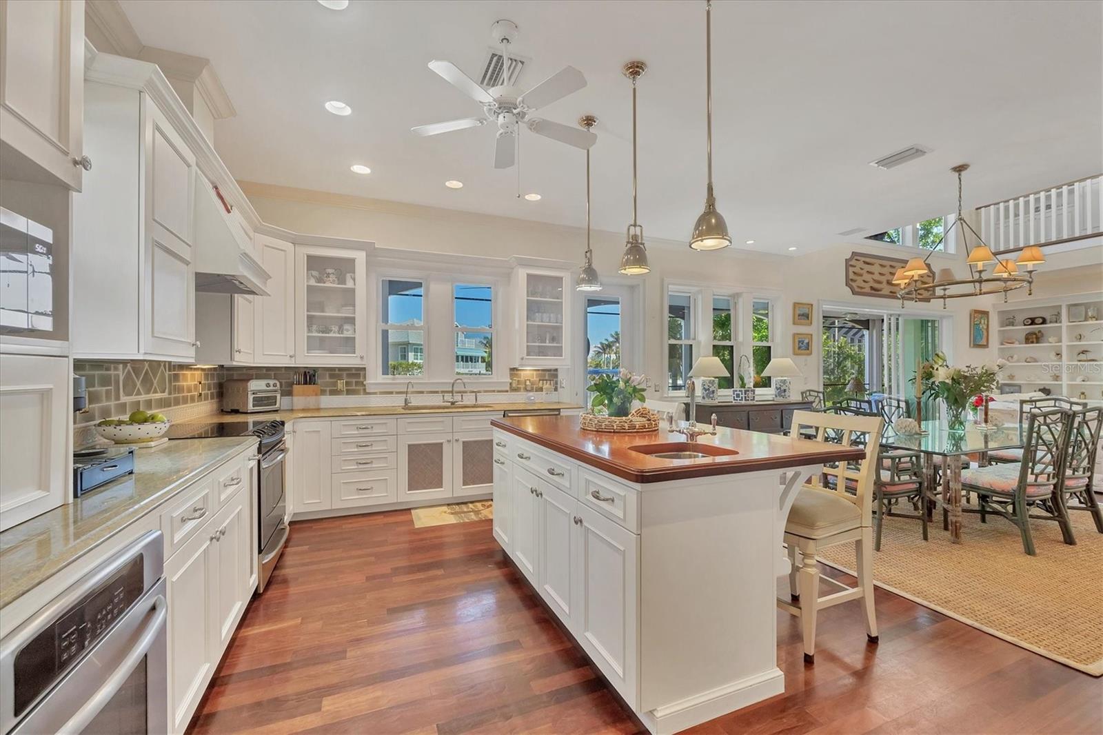 Welcome to your dream waterfront oasis at 120 Palm Ave. This custom-built, single-family luxury home exudes a warm and inviting ambiance, perfect for creating lasting family memories. Step inside through the grand mahogany front door and be greeted by the timeless elegance of limestone and wood floors, complemented by plush carpeting in the bedrooms for ultimate comfort. The heart of the home, the kitchen, is a chef's delight, boasting granite countertops, a Brazilian cherry-topped island, two ovens, and a convenient pantry. Gather around the wood fireplace with its unique coral tile detail in the living area, where chair rail and box molding add a touch of classic sophistication. The spacious layout includes 5 bedrooms plus an office/den featuring a beautifully wood-accented ceiling, and 4 full bathrooms, ensuring ample space for family and guests. Plantation shutters throughout add a touch of privacy and coastal charm. Enjoy seamless indoor-outdoor living with a large, screened porch on the first level, complete with electronic screens, and an expansive open deck on the second level – both offering long water views. A heated splash pool that can also be used as a spa provides a refreshing escape, while the private boat dock with a 17,000 lb lift caters to the avid boater. Practical features include an existing elevator shaft ready for easy installation, separate golf cart and car garages, and the peace of mind of all impact windows and doors. Located in the charming village of Boca Grande, you'll be within easy walking distance of the beach, restaurants, and shops, allowing you to embrace the relaxed island lifestyle. This is more than just a house; it's a place to call home.
