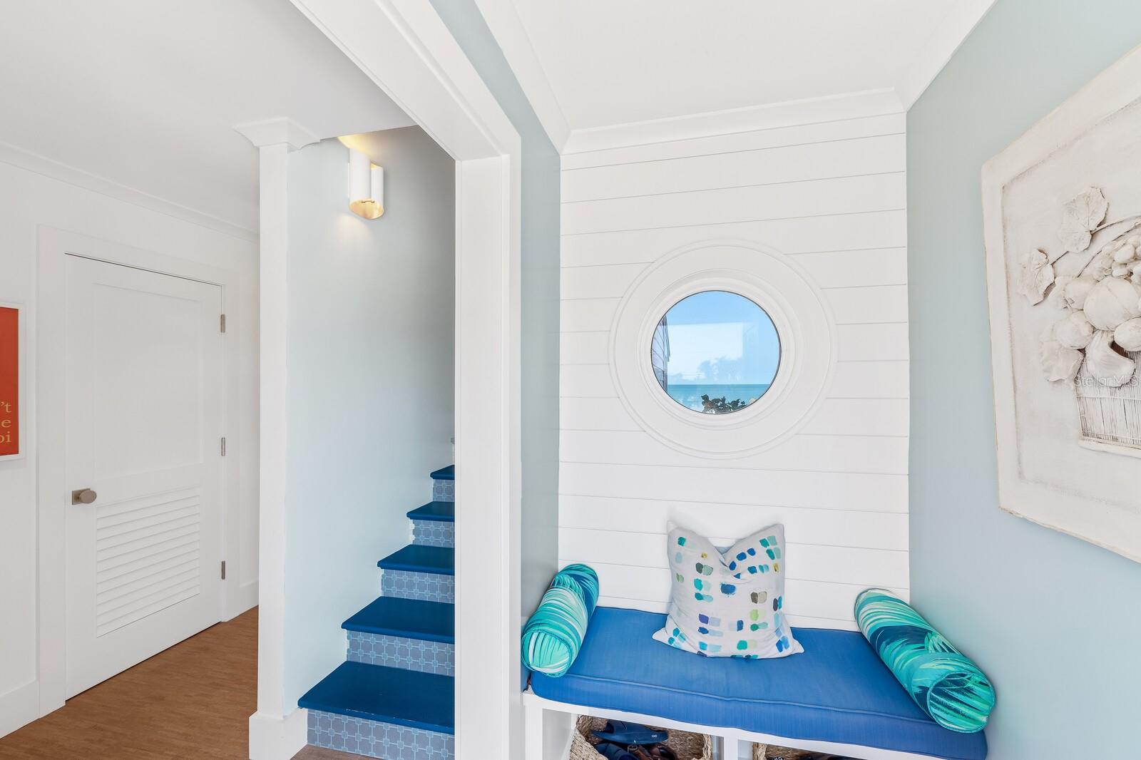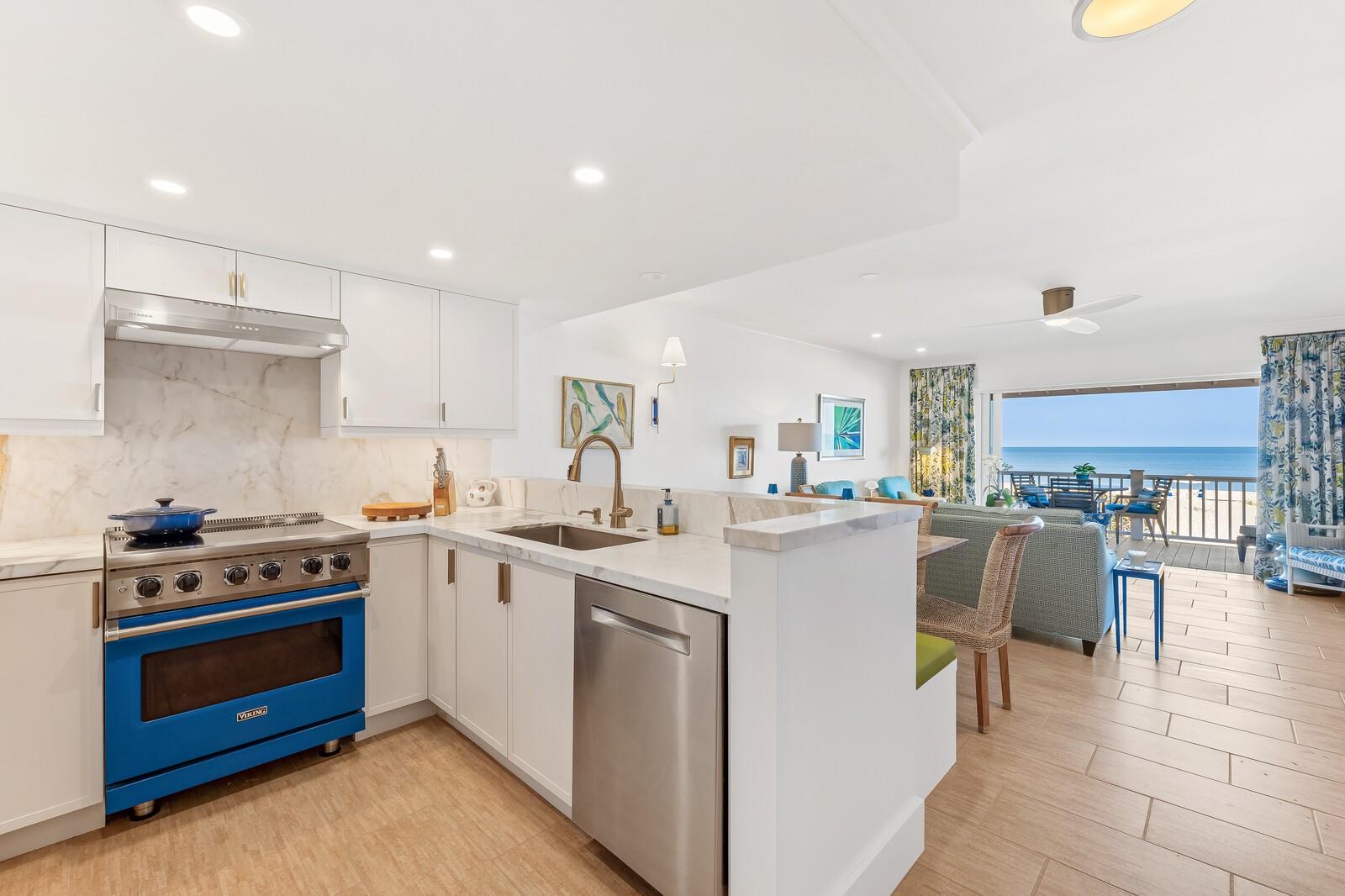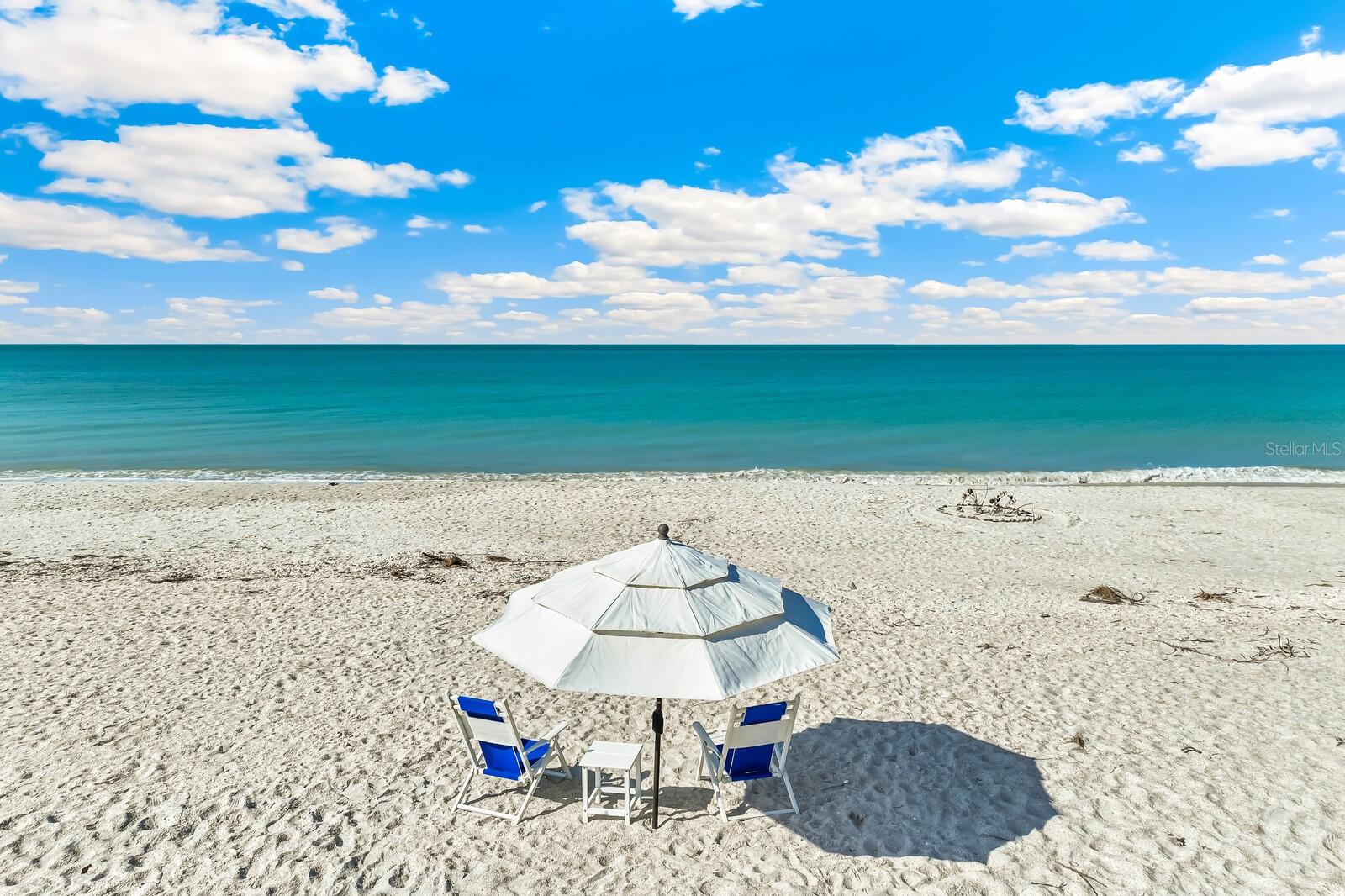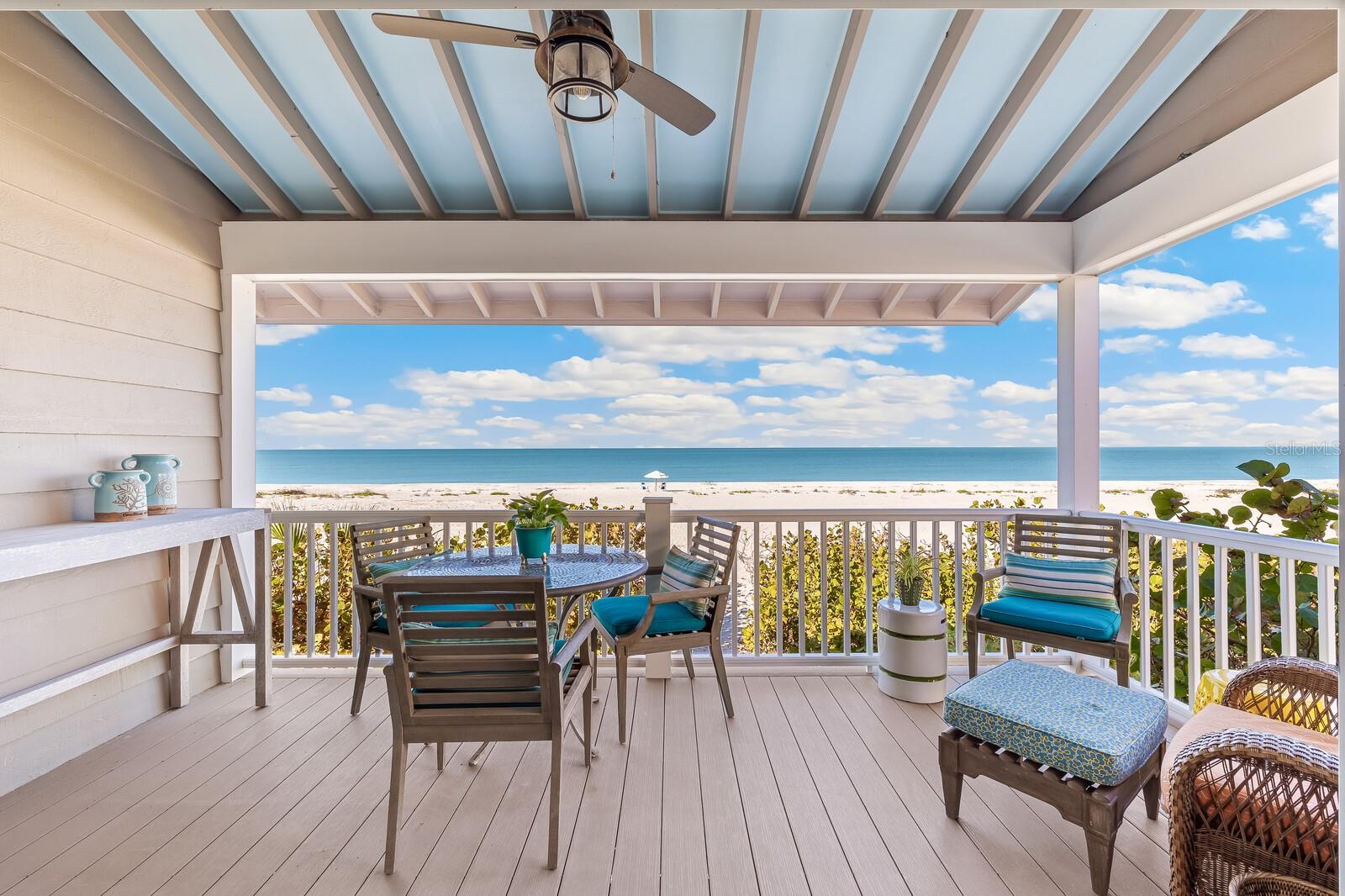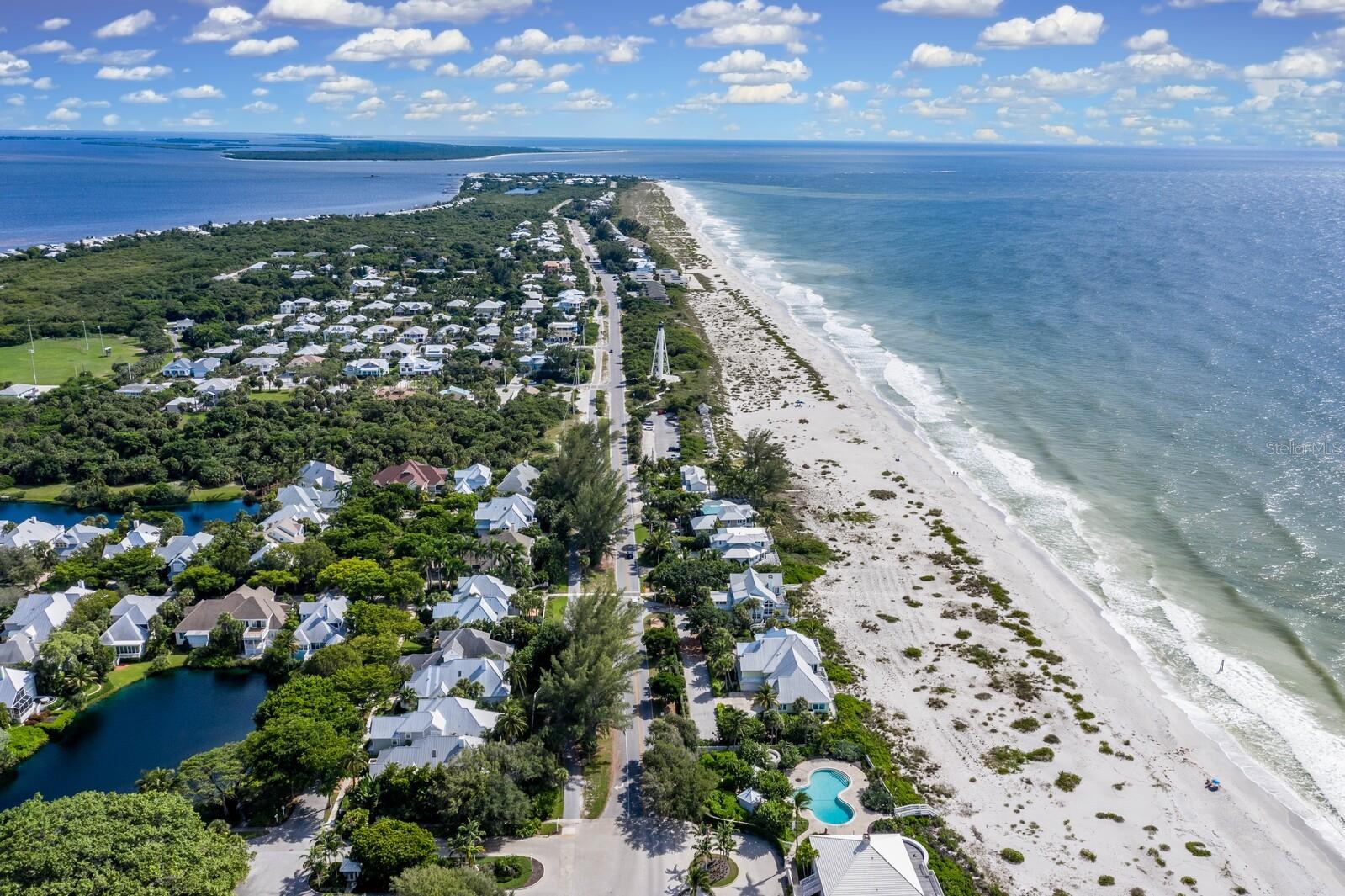 Discover coastal living at its finest in this beautifully renovated two-story townhouse, where modern luxury meets beachfront charm. Step through the welcoming entry, featuring a distinctive porthole window and cozy bench, into an open-concept living space that captures the essence of Florida living. The thoughtfully designed interior showcases recent top-to-bottom improvements, including impact-resistant glass windows, a durable metal roof, and elegant 12"x18" wood grain tile throughout. The custom kitchen is a chef's dream, boasting Viking appliances, marble countertops, and a French door refrigerator. A sophisticated beverage bar with dual refrigerator drawers makes entertaining a breeze. Wake up to stunning Gulf views in the primary bedroom, where a wall of windows brings the outside in. The living room features built-in bookcases perfect for displaying your favorite beach reads, while the custom banquette offers a charming spot for morning coffee or casual dining. Outdoor living spaces include a Gulf-front porch ideal for watching spectacular sunsets and a convenient outdoor shower for rinsing off sandy toes. Two covered parking spaces, bicycle storage, and dedicated closets for beach gear make coastal living effortless. Located within walking distance to Boca Grande's charming village, this 1,408-square-foot residence offers the perfect blend of sophisticated comfort and island convenience. A new HVAC system ensures year-round comfort in this meticulously maintained coastal retreat.