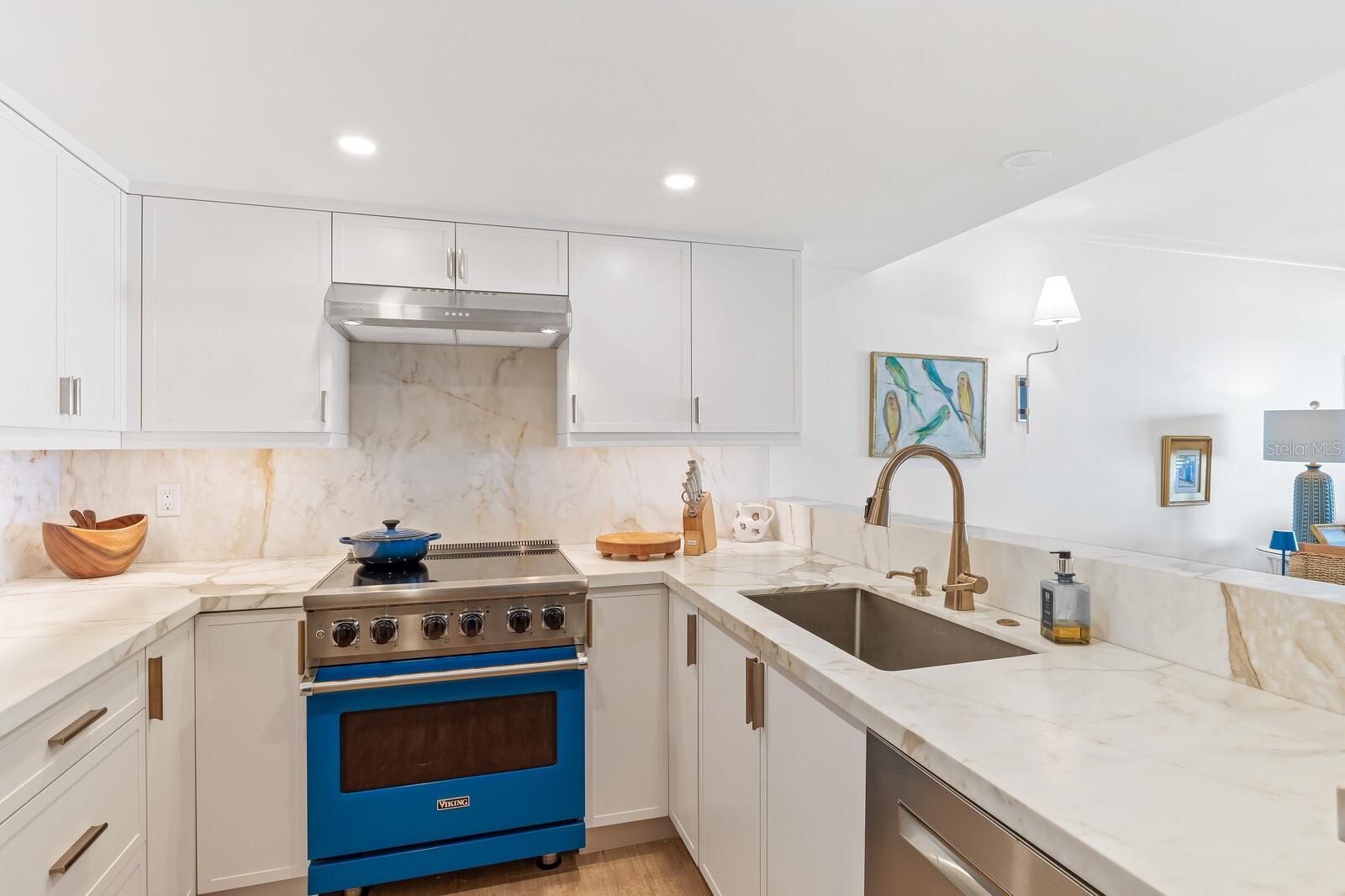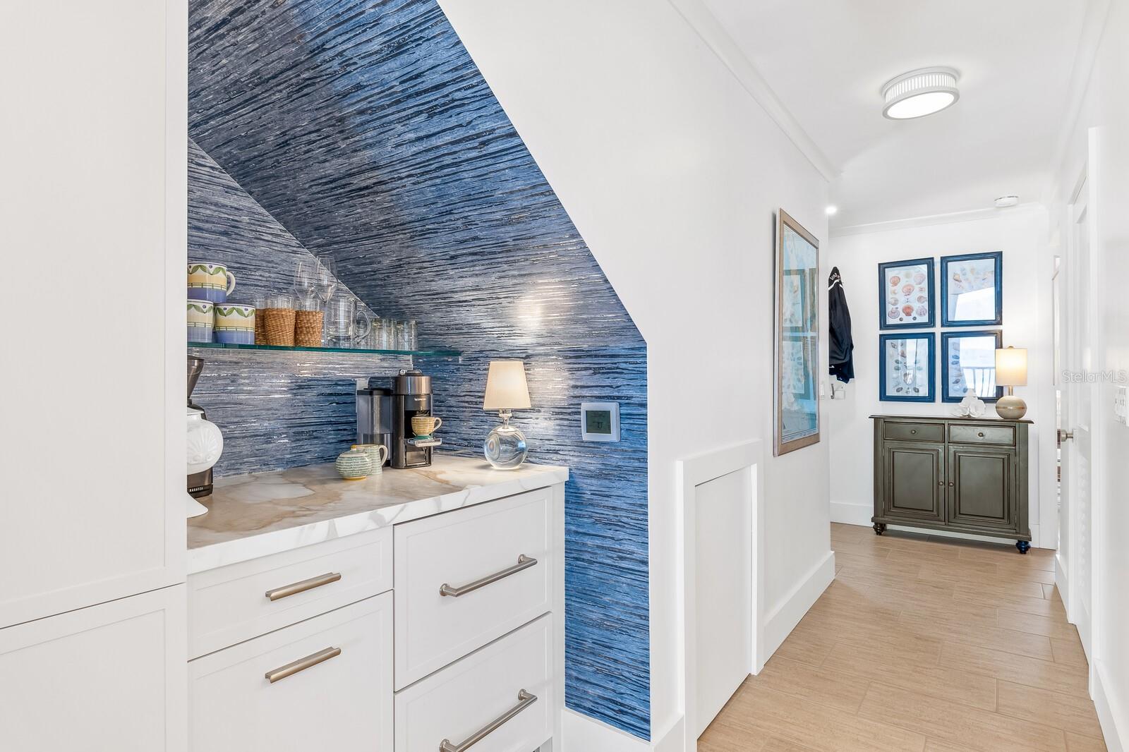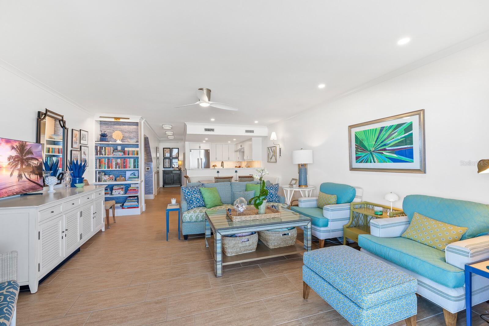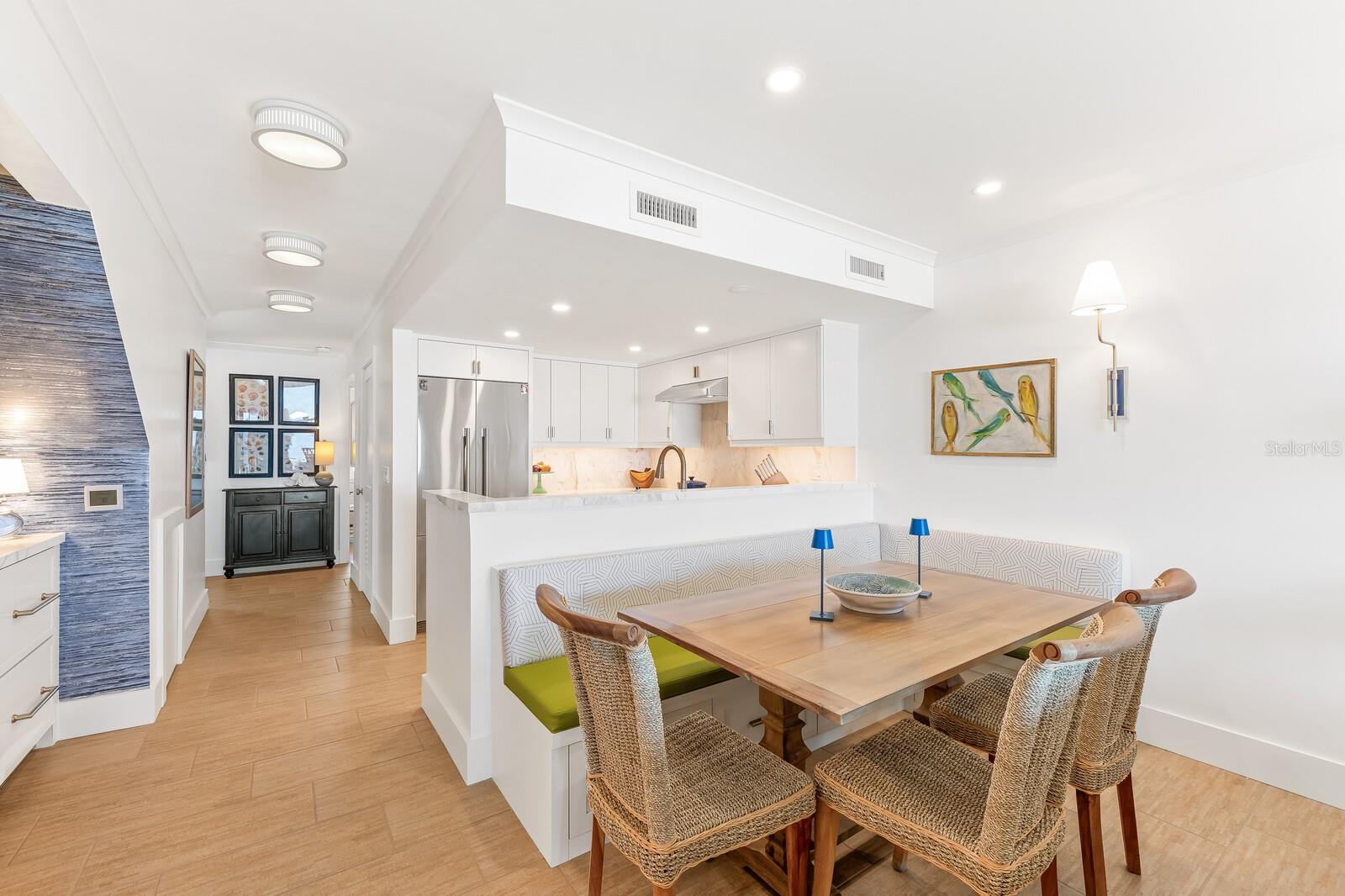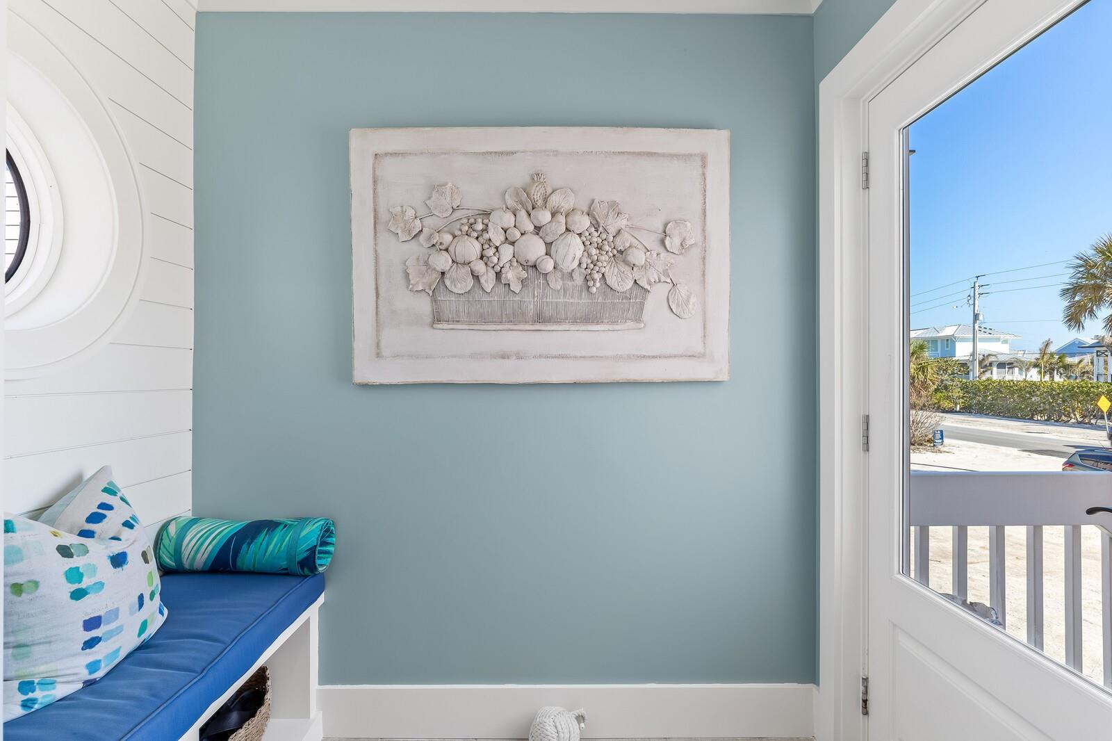 Discover coastal living at its finest in this beautifully renovated two-story townhouse, where modern luxury meets beachfront charm. Step through the welcoming entry, featuring a distinctive porthole window and cozy bench, into an open-concept living space that captures the essence of Florida living. The thoughtfully designed interior showcases recent top-to-bottom improvements, including impact-resistant glass windows, a durable metal roof, and elegant 12"x18" wood grain tile throughout. The custom kitchen is a chef's dream, boasting Viking appliances, marble countertops, and a French door refrigerator. A sophisticated beverage bar with dual refrigerator drawers makes entertaining a breeze. Wake up to stunning Gulf views in the primary bedroom, where a wall of windows brings the outside in. The living room features built-in bookcases perfect for displaying your favorite beach reads, while the custom banquette offers a charming spot for morning coffee or casual dining. Outdoor living spaces include a Gulf-front porch ideal for watching spectacular sunsets and a convenient outdoor shower for rinsing off sandy toes. Two covered parking spaces, bicycle storage, and dedicated closets for beach gear make coastal living effortless. Located within walking distance to Boca Grande's charming village, this 1,408-square-foot residence offers the perfect blend of sophisticated comfort and island convenience. A new HVAC system ensures year-round comfort in this meticulously maintained coastal retreat.