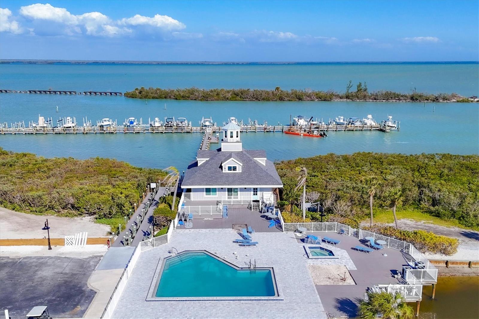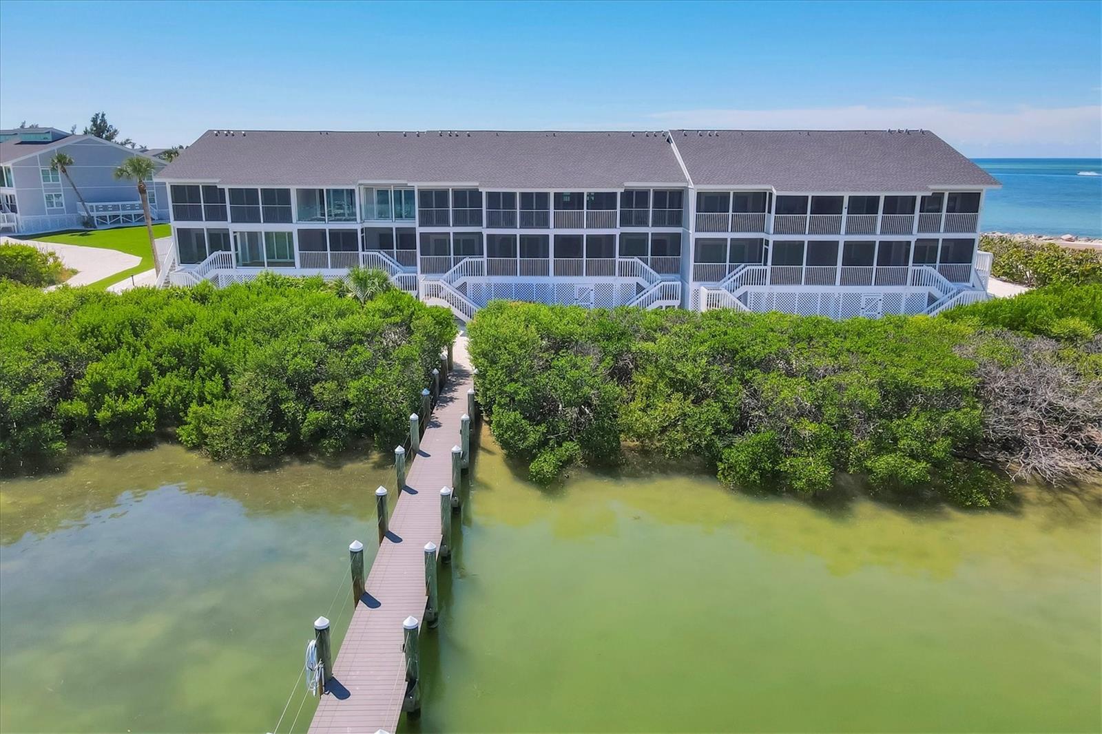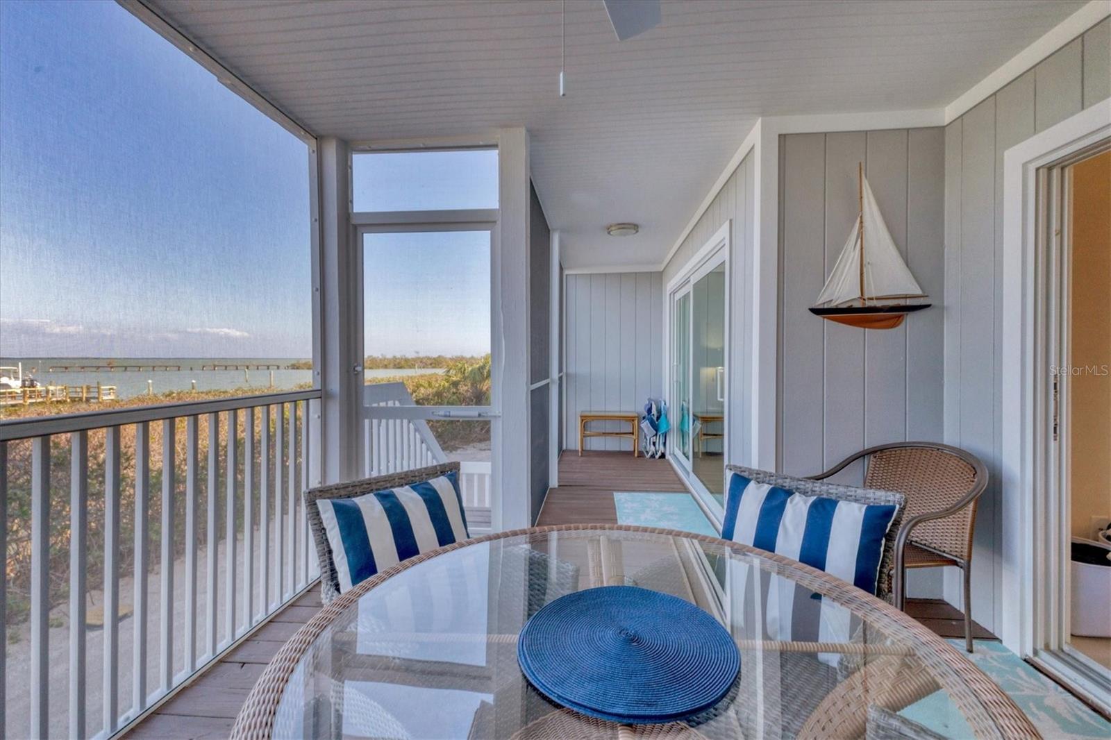 Amazing waterfront retreat with both Gulf & Bay views! Located in Boca Grande North- Unit A2 is nestled on Gasparilla Island near the picturesque Village of Boca Grande, Florida. This 2-bedroom, 2-bathroom bayfront seaside condo is turnkey furnished and offers a perfect blend of luxury, comfort, and breathtaking views, making it an ideal haven for those seeking the coastal lifestyle. One of the standout features of this condominium is the balconies - allowing gulf views & the large screened lanai overlooking the Gasparilla Sound, where you can see the boats, kayaks, dolphins, and more cruising by, but still enjoy your privacy. You can savor your morning coffee while watching the sunrise over the water or unwind in the evening with a glass of wine as the sun sets. The panoramic views are simply unparalleled. Have a boat? Private Boat Slips can be rented separately or are often available for private sale. Have furry friends? You will enjoy this pet friendly community. Owners can have two dogs and there are great walking paths! This beautifully appointed turnkey furnished 1,248-square-foot home greets you with an open and airy floor plan that seamlessly connects the living, dining, and kitchen areas. The spacious living room floods the space with natural light from impact glass windows & doors and provides nearly unobstructed views of the surrounding waterways of the Gulf of America & Gasparilla Sound. This allows you both sunrise & sunset from either of the porch areas. Imagine relaxing here after a day on the water, soaking in the serene ambiance. Coastal elegance abounds in the finishes, beautiful artwork and accents and yet allows for a comfortable entertaining space. The modern kitchen boasts high-end appliances, ample cabinetry, and a convenient breakfast bar for casual dining. Whether you're preparing a gourmet meal or a quick snack, this kitchen caters to all your culinary needs. The dining area has amazing views and can seat up to six. The master suite is a true sanctuary, complete with a generous closet and an en-suite bathroom featuring elegant fixtures and finishes. The impact-resistant glass sliders allow you to enjoy wide-open views of the water as you relax in bed. The second bedroom is equally inviting with impact glass sliders leading to the porch allowing direct views to the Gulf. Residents of this gated community have access to a range of amenities, including a sparkling heated swimming pool & spa, well-maintained grounds, tennis/pickleball courts, a clubhouse, a gulf-front area, golf cart charging and convenient access to boating facilities. Additionally, the property is located just a short distance from the charming shops, restaurants, and pristine beaches of Boca Grande, ensuring you're never far from leisure and entertainment options. Golf carts are welcome and have a nearby path to lead you to the Village. Let's not forget the world-class pristine beaches, boating and fishing. This unit has a wonderful rental history - Whether you're seeking a full-time residence, a vacation getaway, or an investment property this unit offers an exceptional opportunity to experience the best of Florida's Gulf Coast living. Current rental income and is ready for rentals or your home away from home. Don't miss your chance to own a piece of paradise in this sought-after location. Schedule your private showing today and prepare to be captivated by all this remarkable property has to offer.