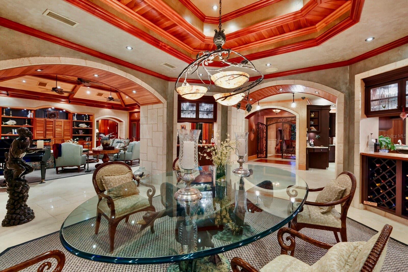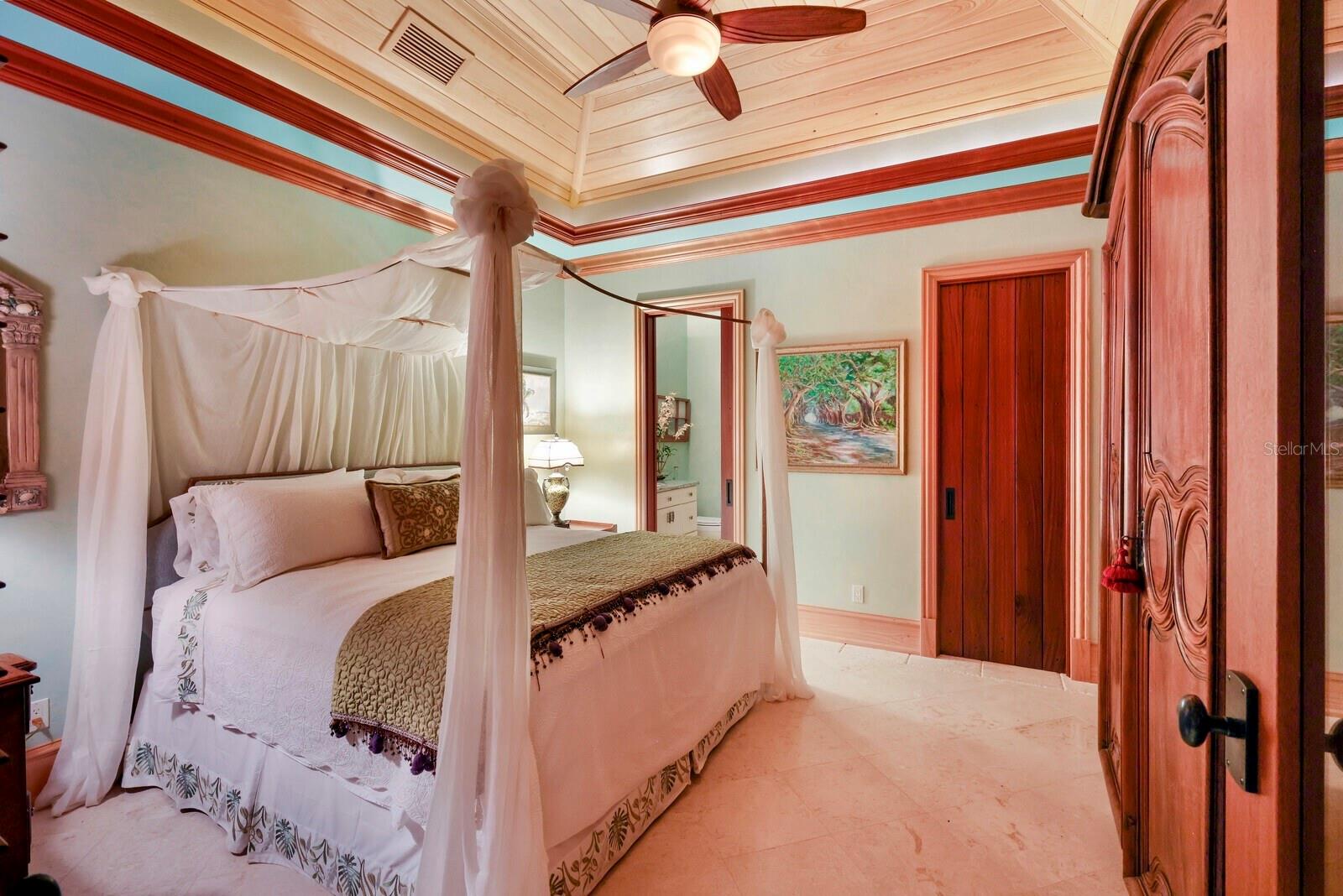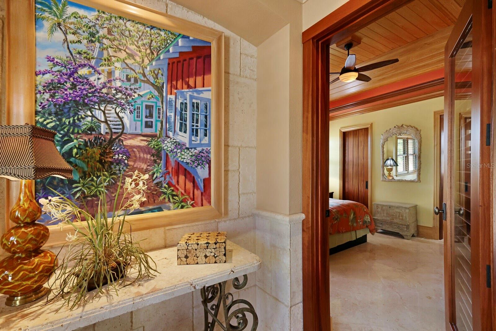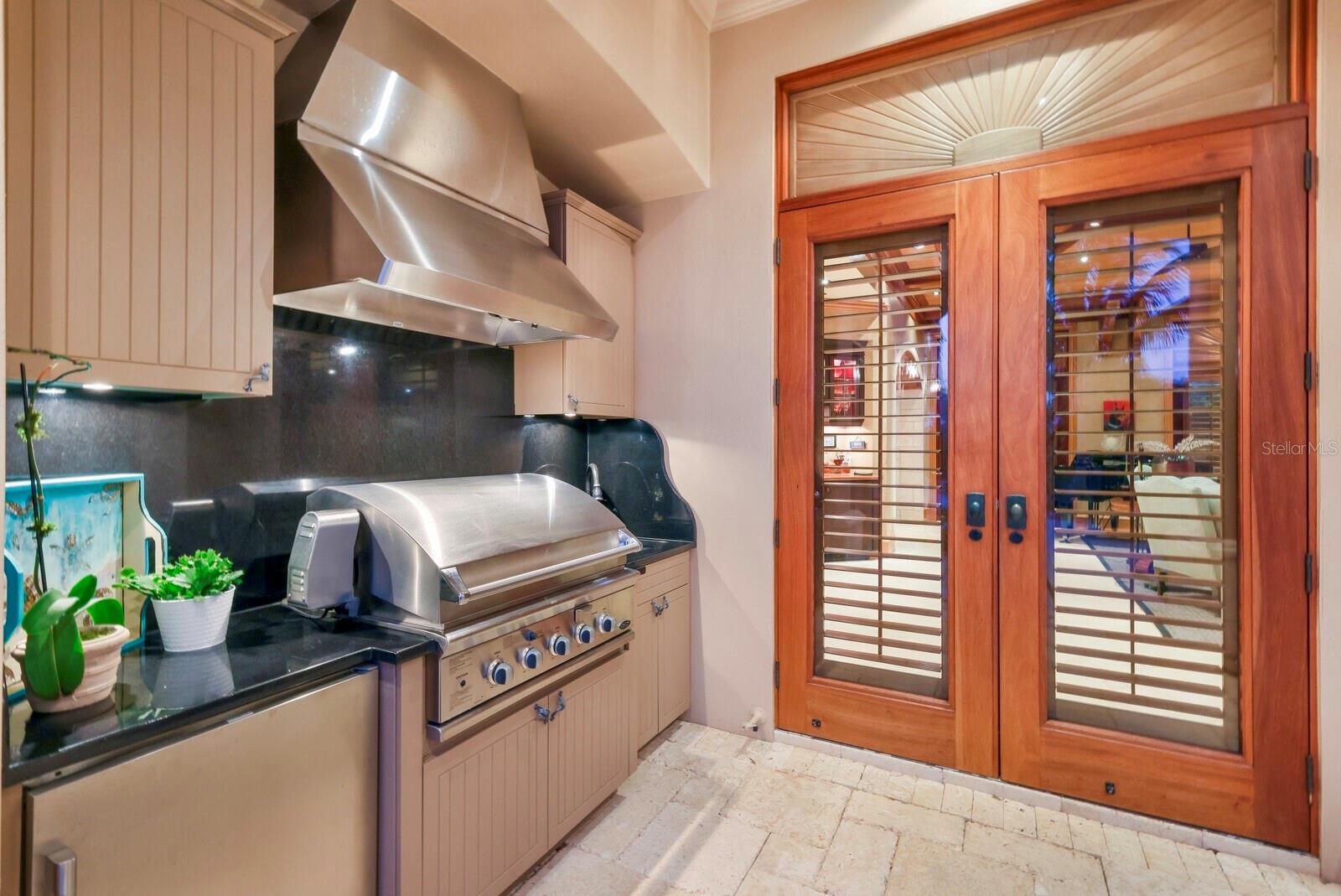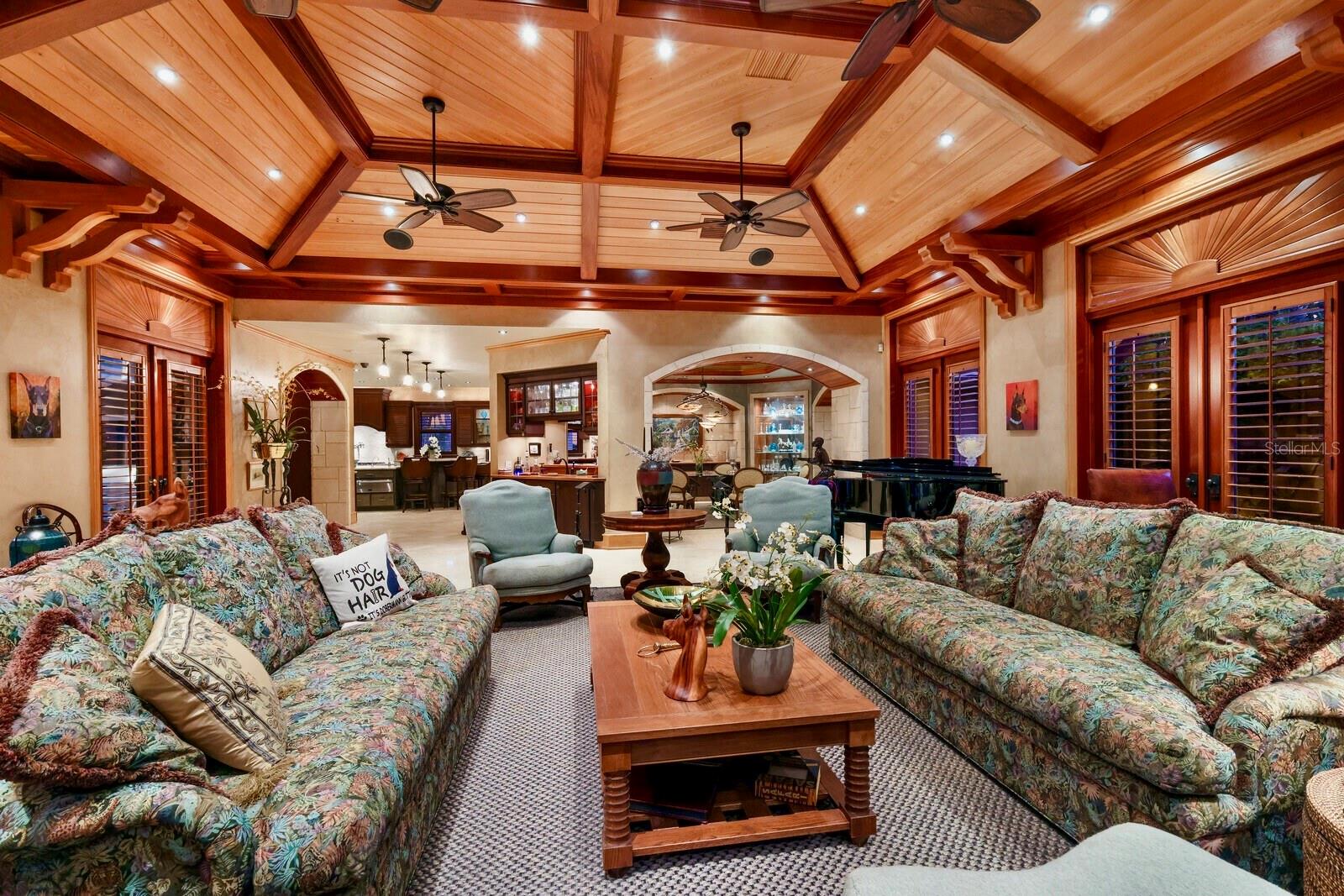 Welcome to 1000 East Railroad Avenue, a breathtaking oasis nestled within the historic district of Boca Grande. Situated on a sprawling half-acre lot, this 6,417 square foot residence offers a harmonious blend of luxurious living and timeless West Indies-inspired architecture. Completely remodeled and reconstructed between 2010 and 2012, no expense was spared in creating this masterpiece of design and craftsmanship. Custom finishes grace every corner, showcasing exquisite mahogany and cypress details complemented by custom impact glass windows and doors that bathe the interior with natural light. Notably, none of the living areas in this residence experienced any water damage from past hurricanes. As you step outside, prepare to be enchanted by your own private tropical paradise. A heated pool and spa beckon for relaxation, accompanied by a tranquil waterfall and a glass tile sun shelf perfect for soaking up the Florida sun. Entertain guests effortlessly in the outdoor kitchen area, surrounded by mature tropical landscaping and expertly crafted hardscape. A backyard mosquito mist system ensures year-round comfort, while whole-home landscape lighting adds a magical ambiance to the evenings. The seamless transition of Dominican coral stone from exterior to interior enhances the flow of design and architecture. Inside, modern luxury meets convenience with a whole-home Sonos sound system and automated Lutron lighting control. The chef's kitchen is a culinary haven, boasting stunning river granite countertops, a spacious island, and top-of-the-line appliances. Multiple bar areas and a gracious dining room complement the spacious living room, creating the perfect setting for gatherings. Retreat to the dedicated home office for work or unwind with loved ones in the upstairs entertainment room. The master suite enjoys its own wing, offering a sumptuous bathroom complete with a jetted tub, walk-in shower, dual vanities, and dual walk-in closets. Privacy and security are paramount, with a concrete block stucco wall enclosing the property and two power-operated gates leading to the paver driveway adorned with decorative turf inlays. With impeccable finishes and woodworking throughout, 1000 East Railroad Avenue is truly a must-see property were indoor and outdoor living blend seamlessly together.