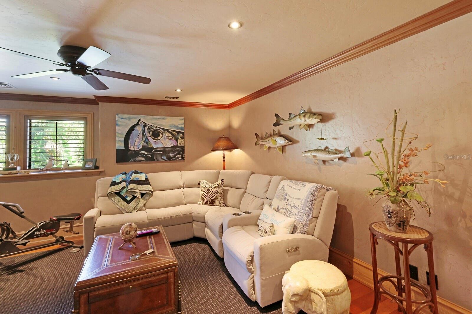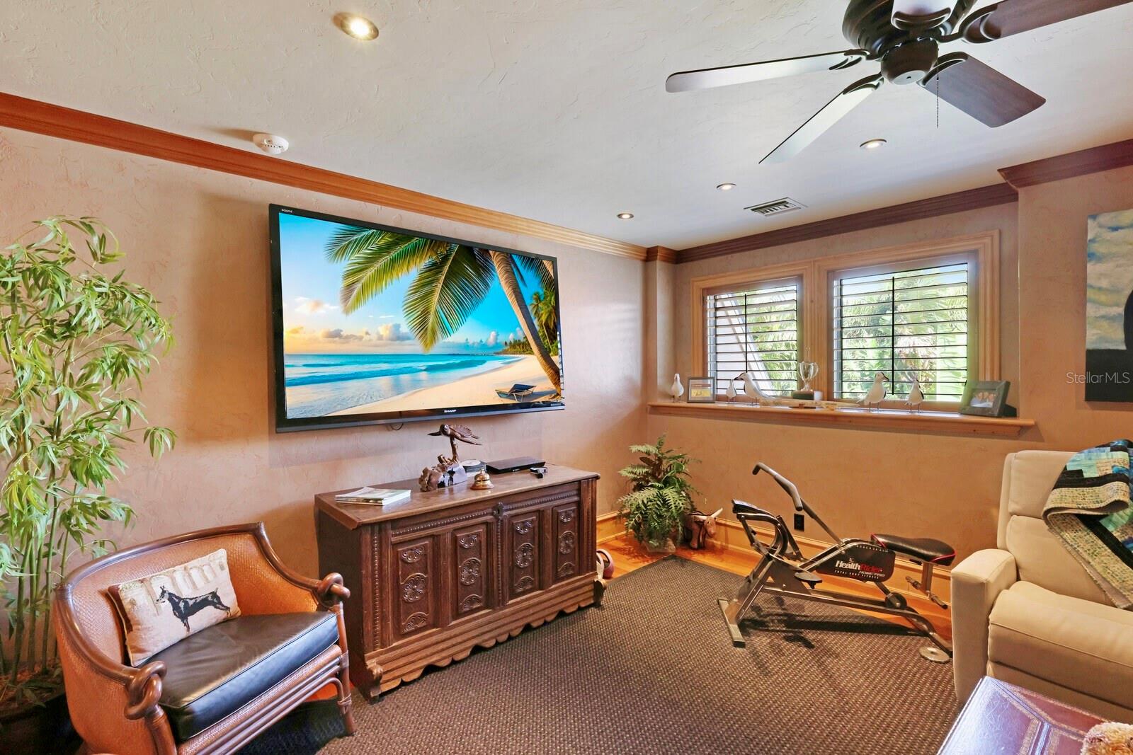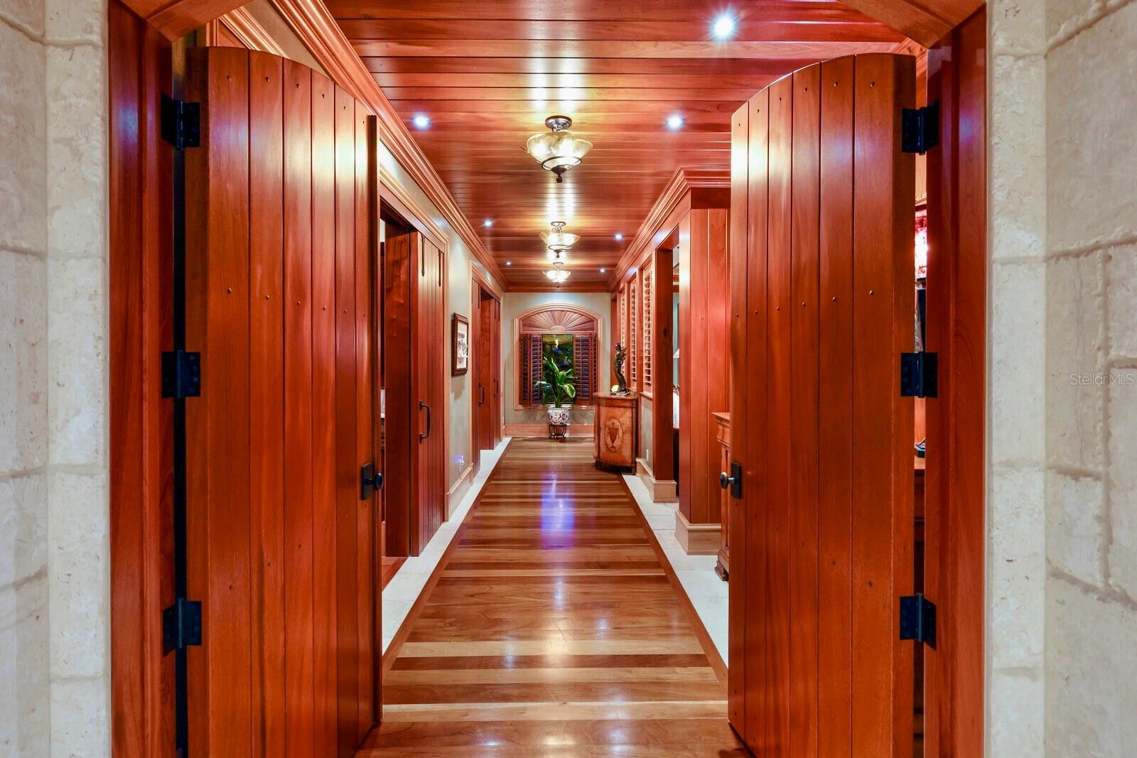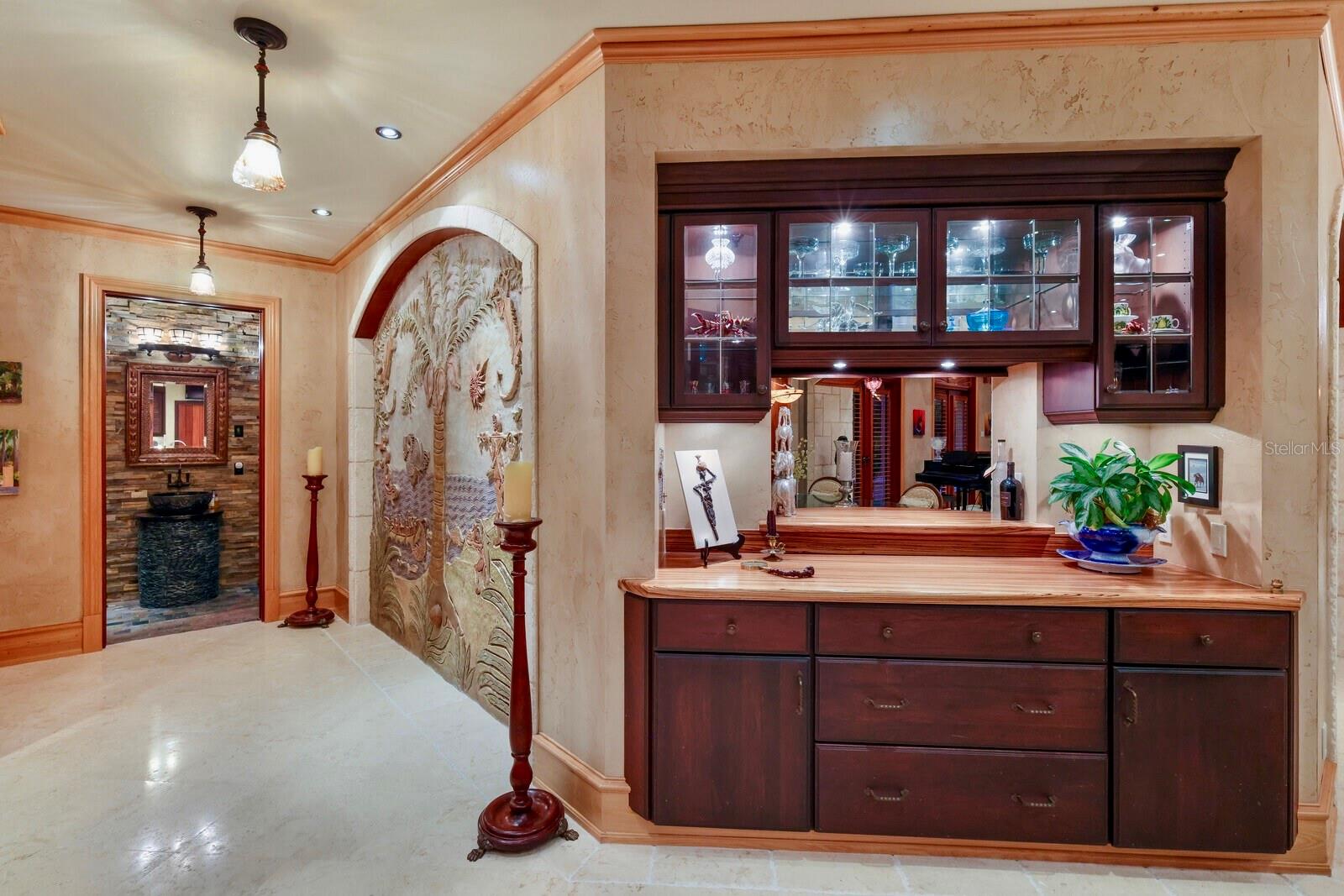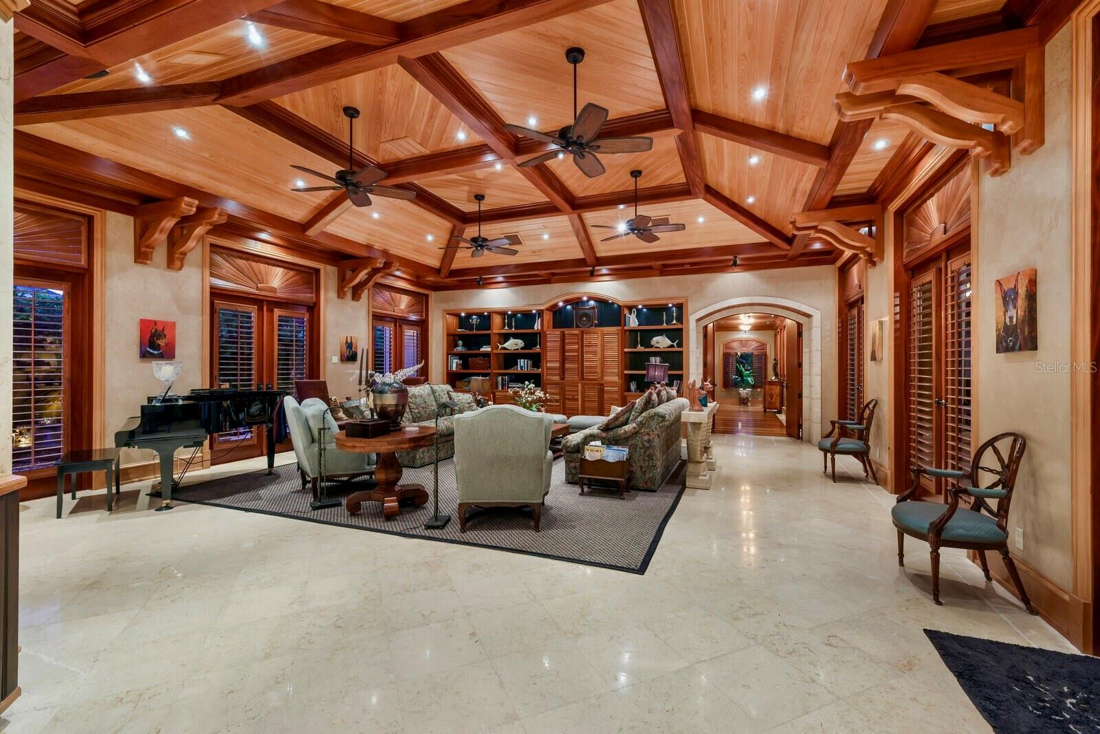 Welcome to 1000 East Railroad Avenue, a breathtaking oasis nestled within the historic district of Boca Grande. Situated on a sprawling half-acre lot, this 6,417 square foot residence offers a harmonious blend of luxurious living and timeless West Indies-inspired architecture. Completely remodeled and reconstructed between 2010 and 2012, no expense was spared in creating this masterpiece of design and craftsmanship. Custom finishes grace every corner, showcasing exquisite mahogany and cypress details complemented by custom impact glass windows and doors that bathe the interior with natural light. Notably, none of the living areas in this residence experienced any water damage from past hurricanes. As you step outside, prepare to be enchanted by your own private tropical paradise. A heated pool and spa beckon for relaxation, accompanied by a tranquil waterfall and a glass tile sun shelf perfect for soaking up the Florida sun. Entertain guests effortlessly in the outdoor kitchen area, surrounded by mature tropical landscaping and expertly crafted hardscape. A backyard mosquito mist system ensures year-round comfort, while whole-home landscape lighting adds a magical ambiance to the evenings. The seamless transition of Dominican coral stone from exterior to interior enhances the flow of design and architecture. Inside, modern luxury meets convenience with a whole-home Sonos sound system and automated Lutron lighting control. The chef's kitchen is a culinary haven, boasting stunning river granite countertops, a spacious island, and top-of-the-line appliances. Multiple bar areas and a gracious dining room complement the spacious living room, creating the perfect setting for gatherings. Retreat to the dedicated home office for work or unwind with loved ones in the upstairs entertainment room. The master suite enjoys its own wing, offering a sumptuous bathroom complete with a jetted tub, walk-in shower, dual vanities, and dual walk-in closets. Privacy and security are paramount, with a concrete block stucco wall enclosing the property and two power-operated gates leading to the paver driveway adorned with decorative turf inlays. With impeccable finishes and woodworking throughout, 1000 East Railroad Avenue is truly a must-see property were indoor and outdoor living blend seamlessly together.