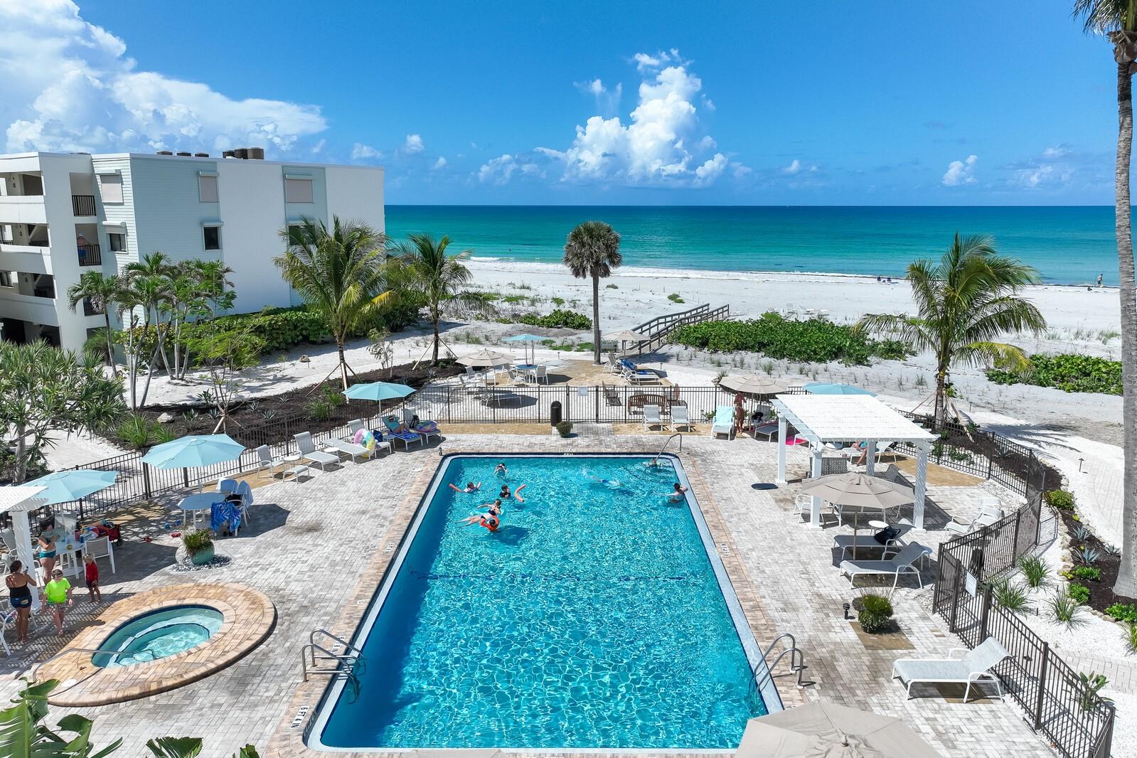 Welcome to Unit 312, Building 1 at Sea Oats, a rarely available top-floor beachfront condo nestled on the pristine north shore of Boca Grande. This stunning 2-bedroom, 2-bath residence offers unparalleled coastal living with expansive Gulf views that will take your breath away. Wake up to the gentle sound of waves, sip coffee as the sun rises over the water, and unwind in the evening with glowing sunsets—all from the comfort of your private balcony. Inside, you’ll find a bright and spacious layout with island-inspired design, a fully equipped kitchen, and impact-rated windows and doors for added peace of mind. This unit also includes elevator access, an assigned under-building parking space, and a recently renovated exterior storage closet—perfect for stowing beach essentials. Sea Oats is a gated, well-maintained community offering a true resort lifestyle. Amenities include: Resort-style pool with new furnishings and shaded pergolas Outdoor grilling stations and a community herb garden Bike racks, EV charging stations, and golf cart parking/charging Soon-to-be-completed upgrades: new elevators, resurfaced tennis courts, and refreshed landscaping Ownership peace of mind is assured—Milestone Phase Inspections are complete, all minor repairs have been addressed, and the Structural Integrity Reserve Study is finished. Recent building improvements include fresh exterior paint and new roofs, adding long-term value and curb appeal. Whether you’re seeking a luxurious vacation rental, a seasonal retreat, or a permanent residence, Unit 312 offers the ultimate in comfort, style, and beachfront serenity. Here, every day feels like a getaway.