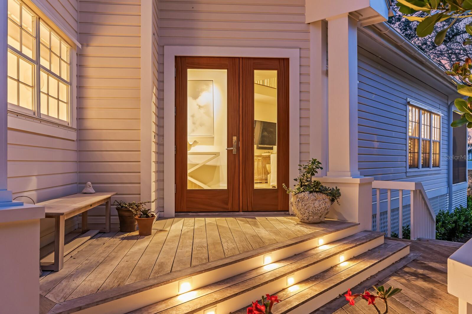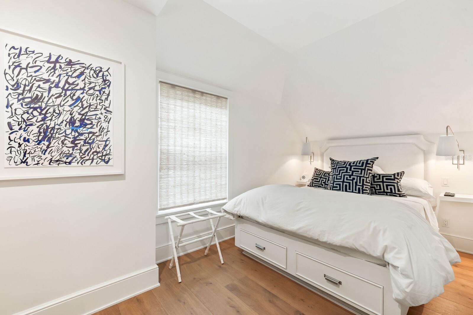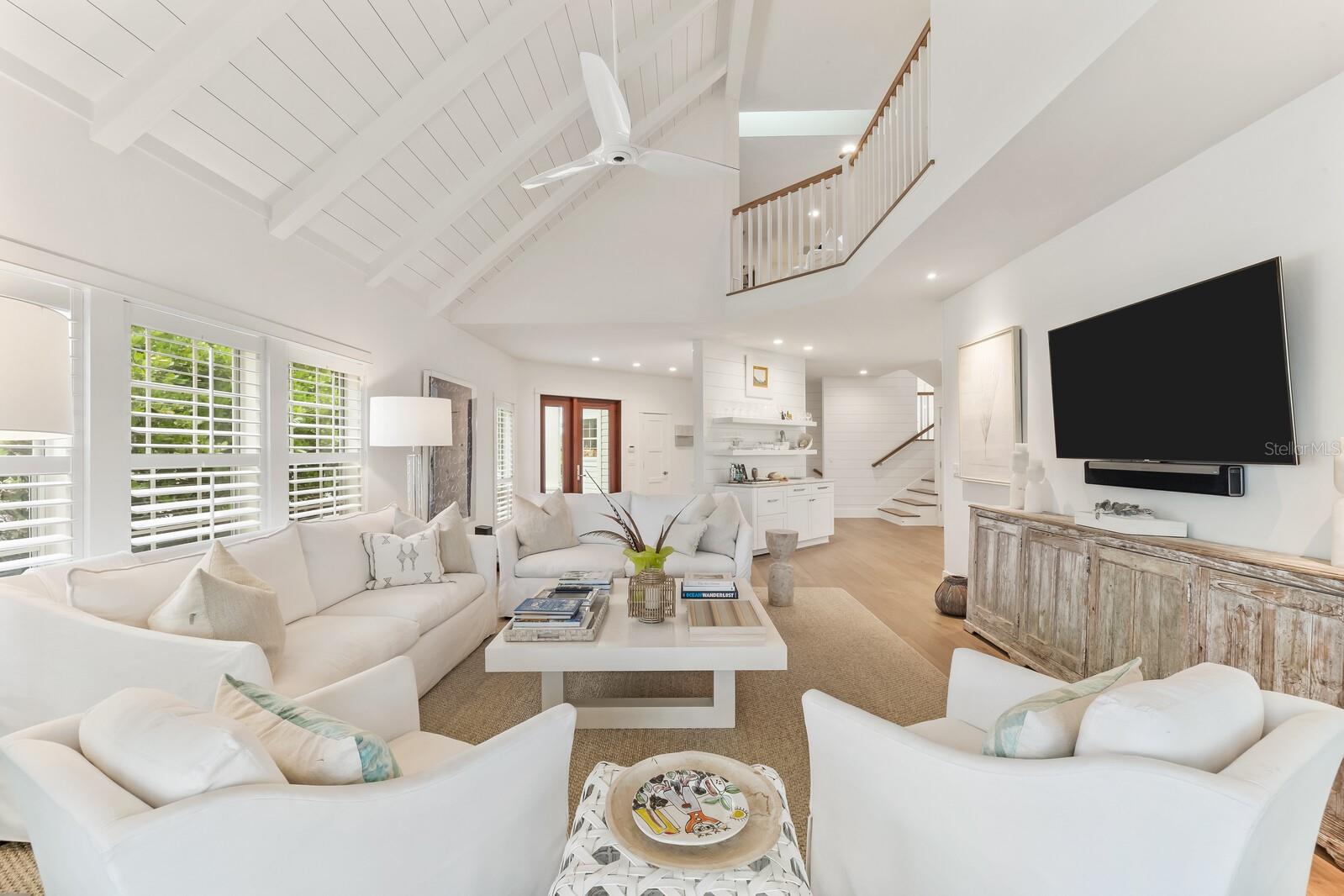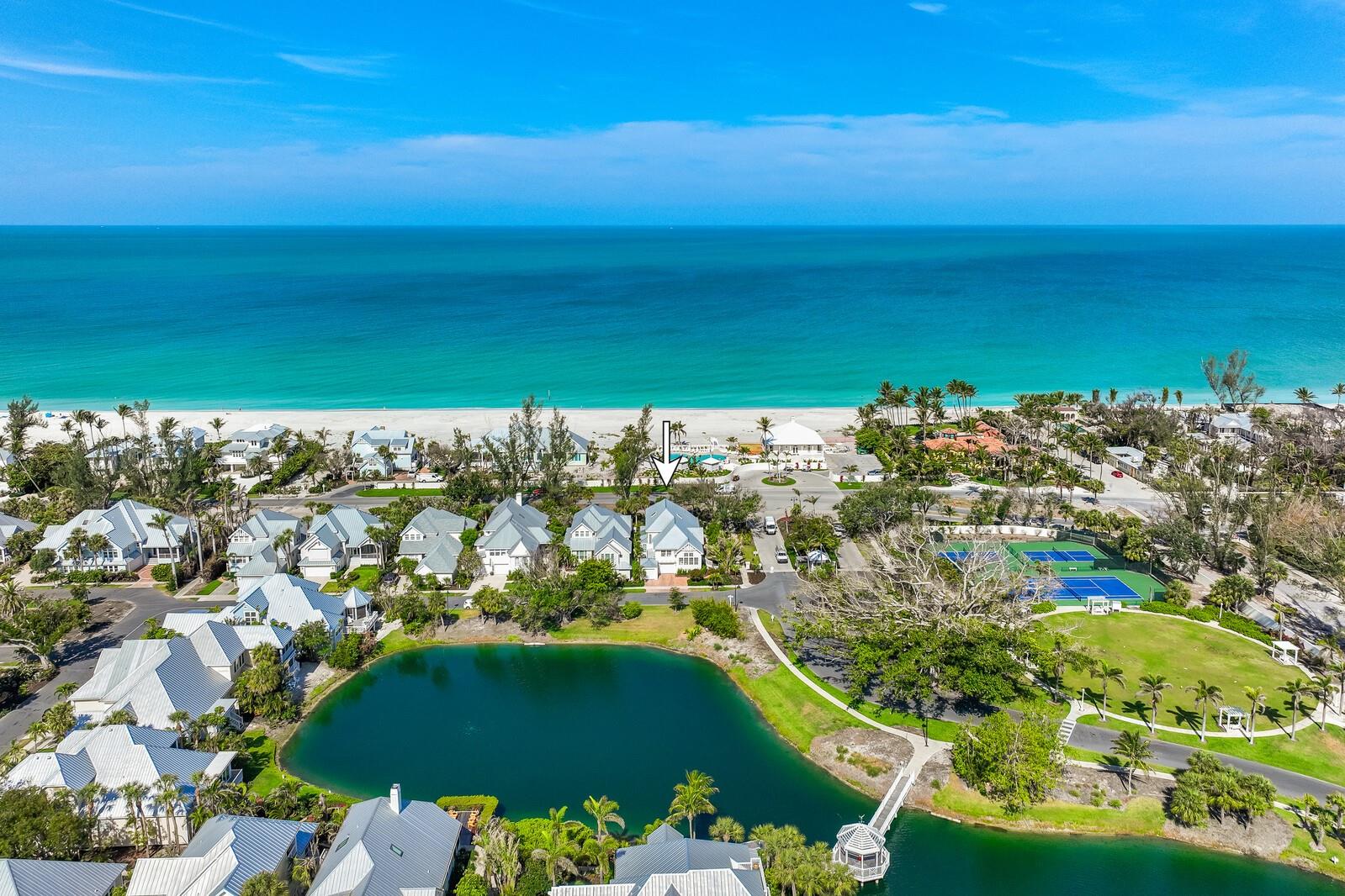 This stunning lake-view corner lot oasis is nestled in the esteemed North Village neighborhood of just 69 residences in the gated Boca Bay Community. You are just a short walk away from both the beaches of the Gulf of Mexico and the charming shops and restaurants in the Village of Boca Grande. Enjoy the luxury of private parking while close to town and directly across the street from the private beach club pool. This completely remodeled home transformed through renovations by Safety Harbor Construction features 4 spacious bedrooms, 4.5 bathrooms and over 3,000 sq. ft. of living space, making it ideal for entertaining. As you enter you'll be greeted by an open-concept living area that is thoughtfully designed to embrace the natural light highlighting the beautiful wide plank engineered-hardwood floors, shiplap walls, vaulted exposed-beam ceilings and elegant finishes throughout. The glass impact sliders off the living room open to your private screened patio overlooking lush landscaping, where you can enjoy serene views of the gulf from across the street. The gourmet kitchen is a chef's dream, equipped with high-end appliances, Christoff countertops, open beam ship lap ceiling, double stainless-steel sink, and custom cabinetry with ample space for all your culinary needs. Also includes an adjoining breakfast area with a wall of windows welcoming the morning light. The layout of this multi-level home is both spacious and inviting. The main level primary en-suite offers built-in closet/cabinetry, two single vanities and a walk-in shower. The second level offers an en-suite bedroom/bathroom. Ascend to the 3rd level to find a sitting/entertainment area, second primary ensuite with a walk-in shower, soaking tub and dual vanities. Also, includes a laundry room with sink and storage. Residents of Boca Bay have access to exclusive amenities, including a membership to the Boca Bay Pass Club that includes a beach front grill room, private formal dining room and a casual pool side bar, 4 community swimming pools, an active tennis program with tennis pros, pro shop and 8 Har-Tru courts, additional courts for pickle ball, a fishing pier, and boat slips for short term dock-age. With its prime location and exquisite design, this home is truly a gem.
