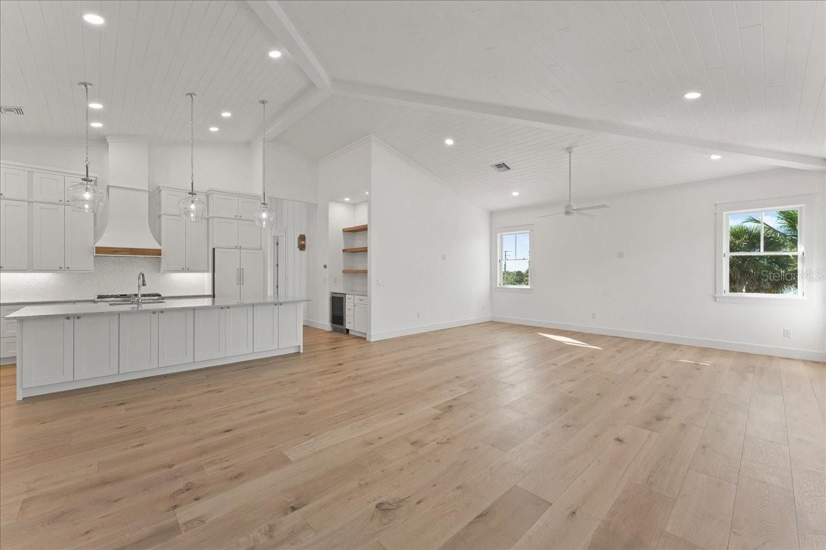 Custom new construction coastal cottage located on the southernmost point of sought-after Boca Grande — just steps from the pristine beaches and emerald-green waters of Gasparilla Island State Park. This thoughtfully designed residence features 5 bedrooms, 4.5 bathrooms, and over 3,000 square feet of living space, highlighted by 13-foot vaulted tongue-and-groove ceilings throughout the main living areas. Built with exceptional quality and efficiency, the home includes spray foam insulation, Andersen impact windows and front door, durable Hardie board siding, and Azek trim for long-lasting coastal performance and peace of mind. The gourmet kitchen is beautifully appointed with a gas Thermador range, panel-ready appliances, and cabinetry offering abundant storage — ideal for both everyday living and entertaining. Each bedroom on the main living level features vaulted tongue-and-groove ceilings, walk-in closets, and private en suites, creating a true retreat for family and guests alike. The 13-foot board-and-batten vaulted hallway serves as a stunning architectural focal point and a statement of craftsmanship. The first floor offers a full-over-full bunk room, a guest bedroom, and a spacious family room, providing flexible living and gathering spaces. Step outside to your shellstone pool deck, where you’ll enjoy a resort-style pool with a waterfall and linear fire feature, all overlooking the outdoor living area complete with a custom stone kitchen — perfect for sunset dinners and coastal entertaining. This tastefully designed coastal cottage blends refined luxury with relaxed island living — just steps from the beach and breathtaking sunsets. Request your private showing today