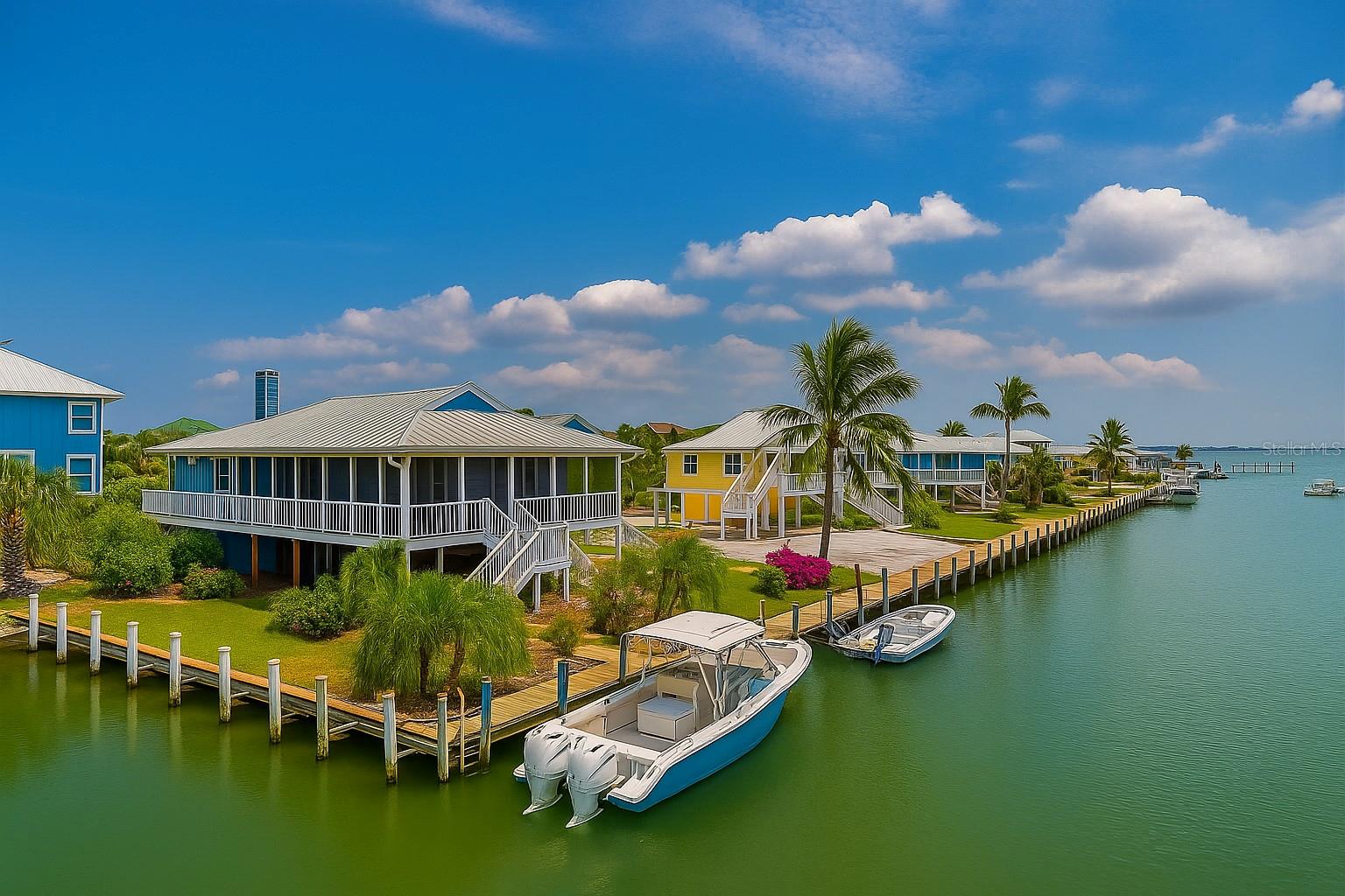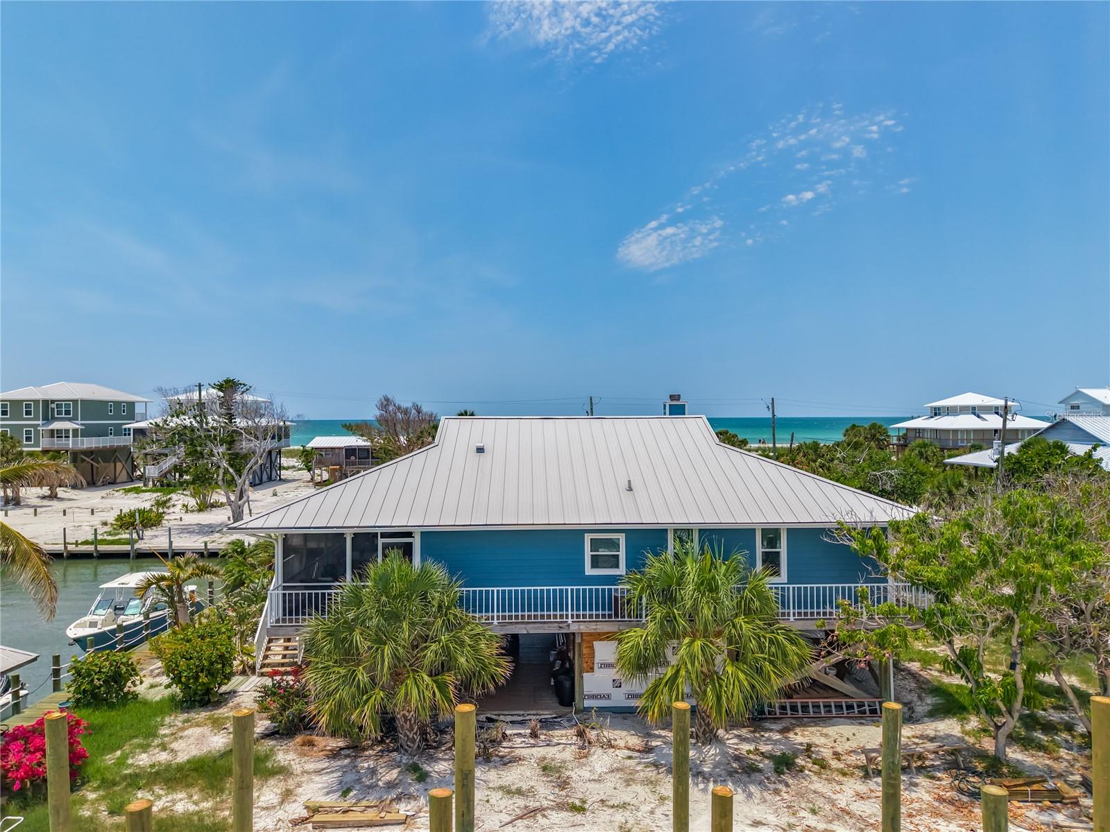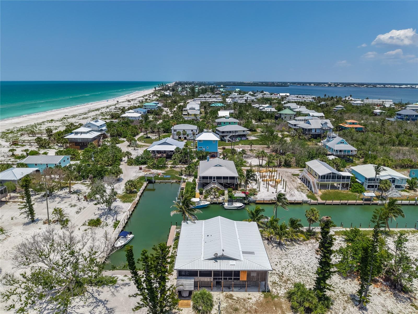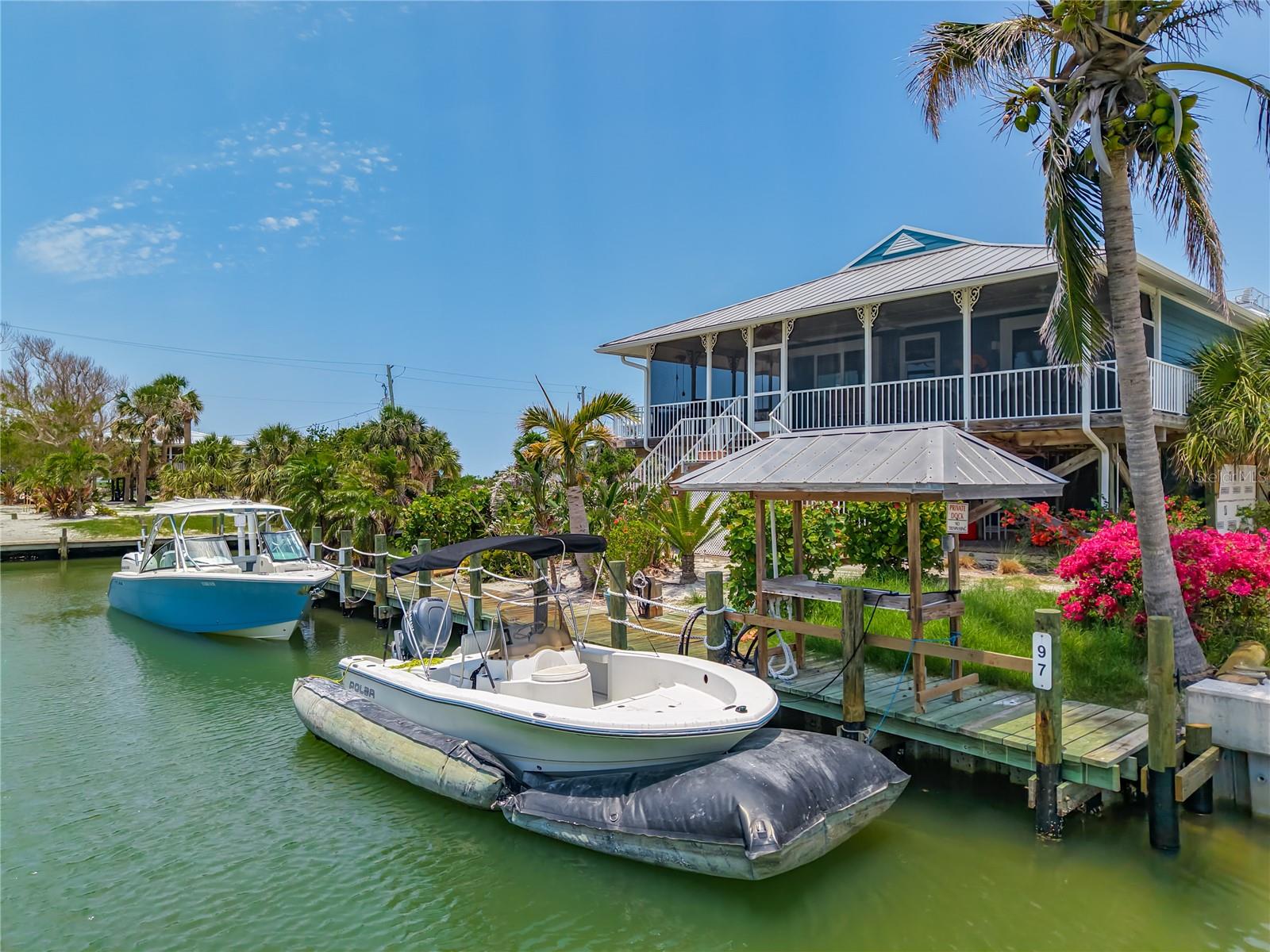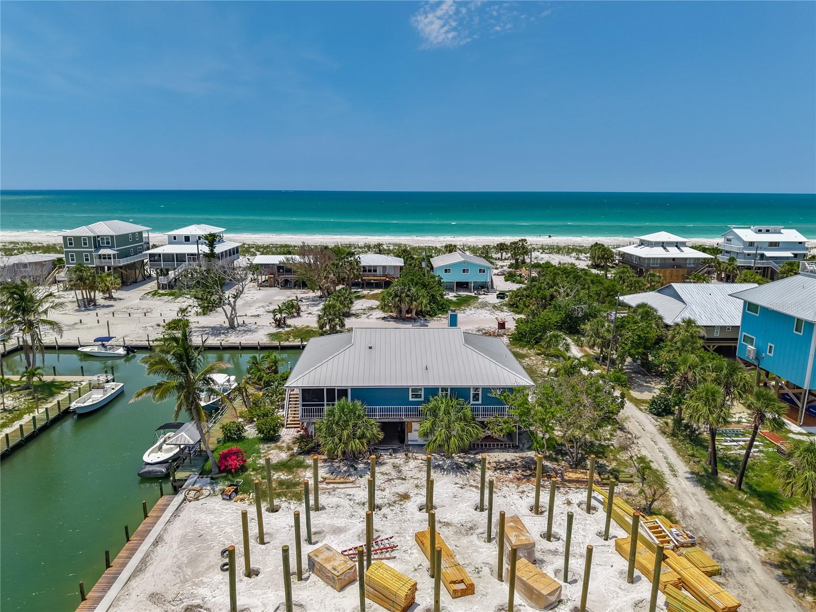 Come With Two Boat, Furnished PLUS More ! Welcome to your Key West-style retreat on Little Gasparilla Island! Nestled on the desirable southwest corner of the North Canal—one of only two canals on the island—this rare gem offers 65 feet of private dock frontage. The well-maintained property features a newly updated seawall and dock (2019), offering effortless boat access. As you arrive, tropical landscaping and lush foliage set the tone for your serene island oasis. Inside, an open-concept layout is highlighted by a stunning vaulted ceiling with coastal plank accents and brand-new luxury vinyl plank flooring. A wood-burning fireplace—perfect for cool island nights—anchors the spacious great room, ideal for entertaining family and friends. The kitchen, fully renovated in 2022, features beautiful Cambria countertops, new upper and lower cabinetry, and GE Café appliances, including a stove, oven, and dishwasher. The oversized island includes an under-cabinet microwave and large wine fridge—perfect for entertaining. This home offers three well-appointed bedrooms, thoughtfully spaced for privacy. The primary suite boasts partial Gulf views and an ensuite bath with a modern, open-concept design, including a double-sink vanity, walk-in glass shower with penny tile, and water closet. A deep closet offers plenty of space for all your island gear. The second bedroom is a peaceful sanctuary with two large windows that bring in Florida sunshine, a queen-sized layout, and a generous closet. The third bedroom overlooks the canal, features ample closet space, and direct access via sliding doors to the screened sun porch—perfect as a guest room, flex space, or home office. Between the guest bedrooms, you'll find the first-floor laundry room—rare for LGI—equipped with LG washer/dryer and overhead shelving. The adjacent second bathroom mirrors the black-and-white penny tile theme found in the primary suite. Additional upgrades include PGT Miami-Dade hurricane-rated windows and doors, new Hardie board siding and soffits, and an aluminum double-strapped seamless roof. The fireplace was rebuilt to code in 2024, and the upgraded, permitted electrical panel supports a new tankless water heater. The lower deck features 1,200 sq ft of outdoor living space with a TV, fire pit, outdoor shower, and a dumbwaiter for supplies from the dock. There’s also a secure enclosed space for golf cart storage and an adjacent workshop. Enjoy water views from nearly every room—including the living room, dining area, kitchen, and primary bedroom. Sliding doors open onto a large open-air porch that spans the west side of the home, overlooking the canal and Gulf. A screened front porch provides shady comfort with canal views. Deeded beach access is just minutes away, and the island offers miles of uncrowded beaches and world-class fishing for snook, redfish, snapper, and more. This turnkey home includes an inflatable boat lift, and the seller is open to negotiating the inclusion of a 21' Polar center console boat and a six-person Club Car golf cart. Experience the best of island living—schedule your private showing today!