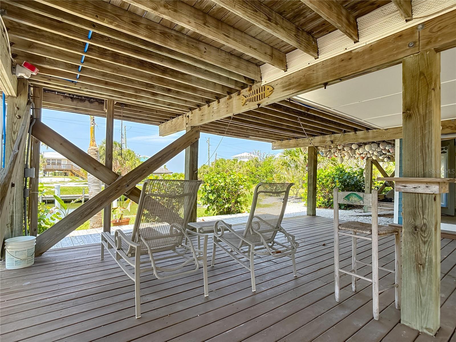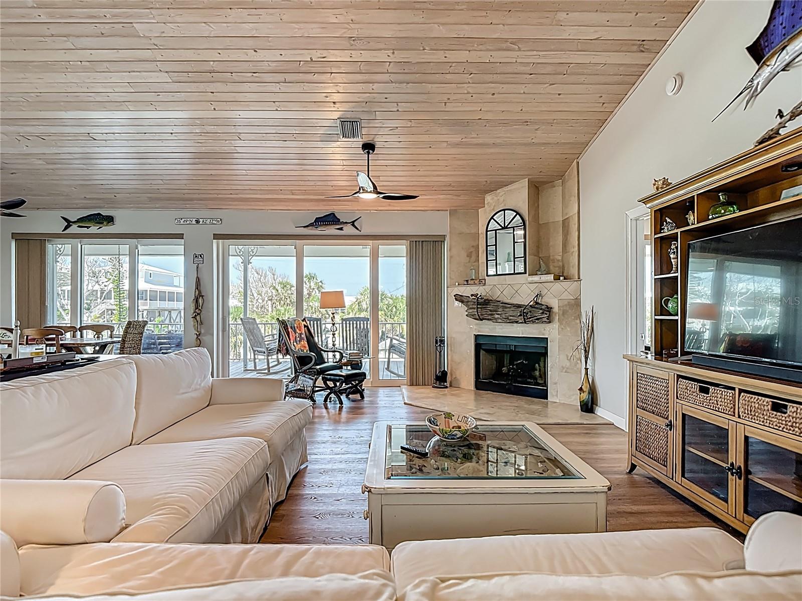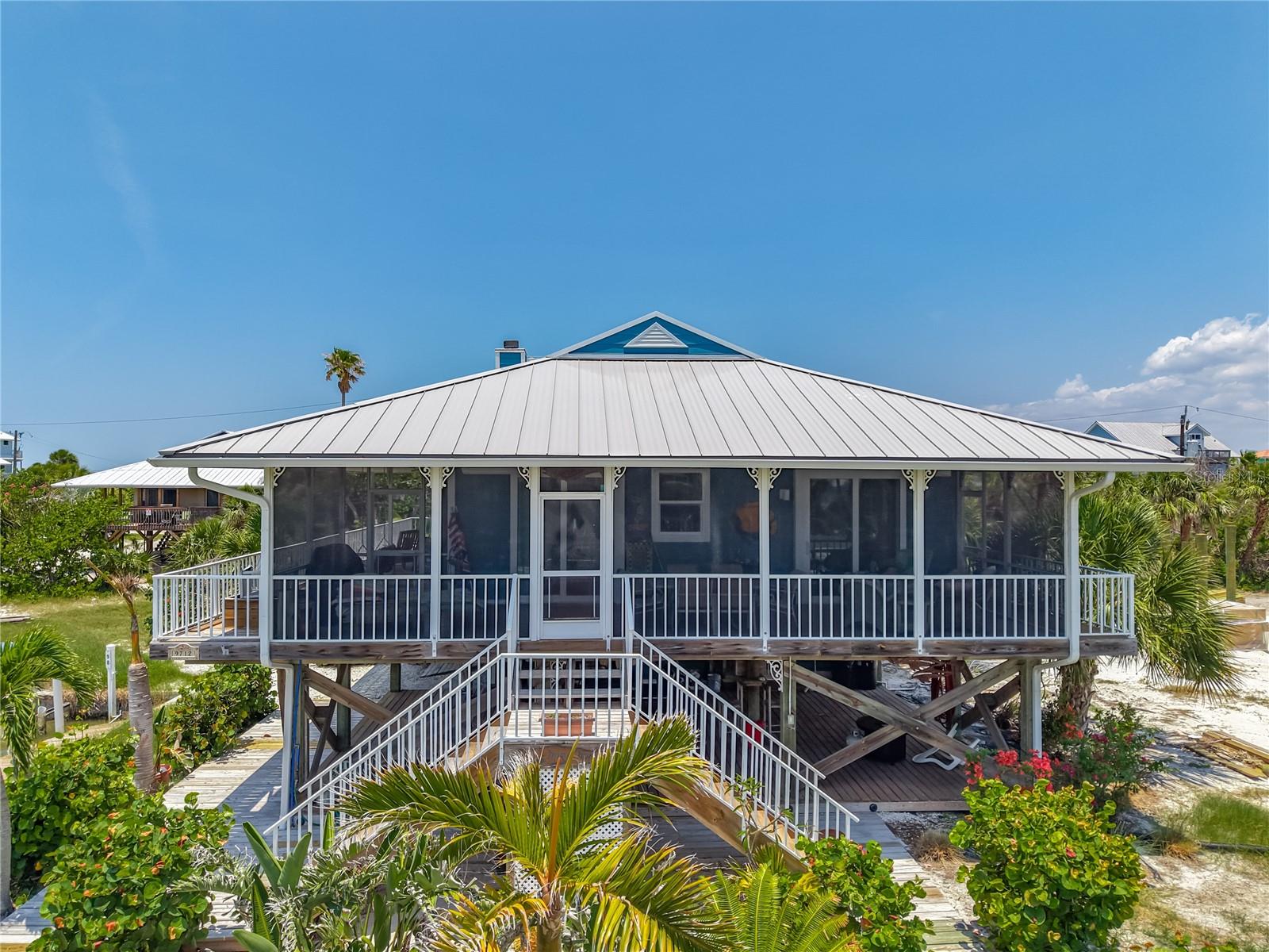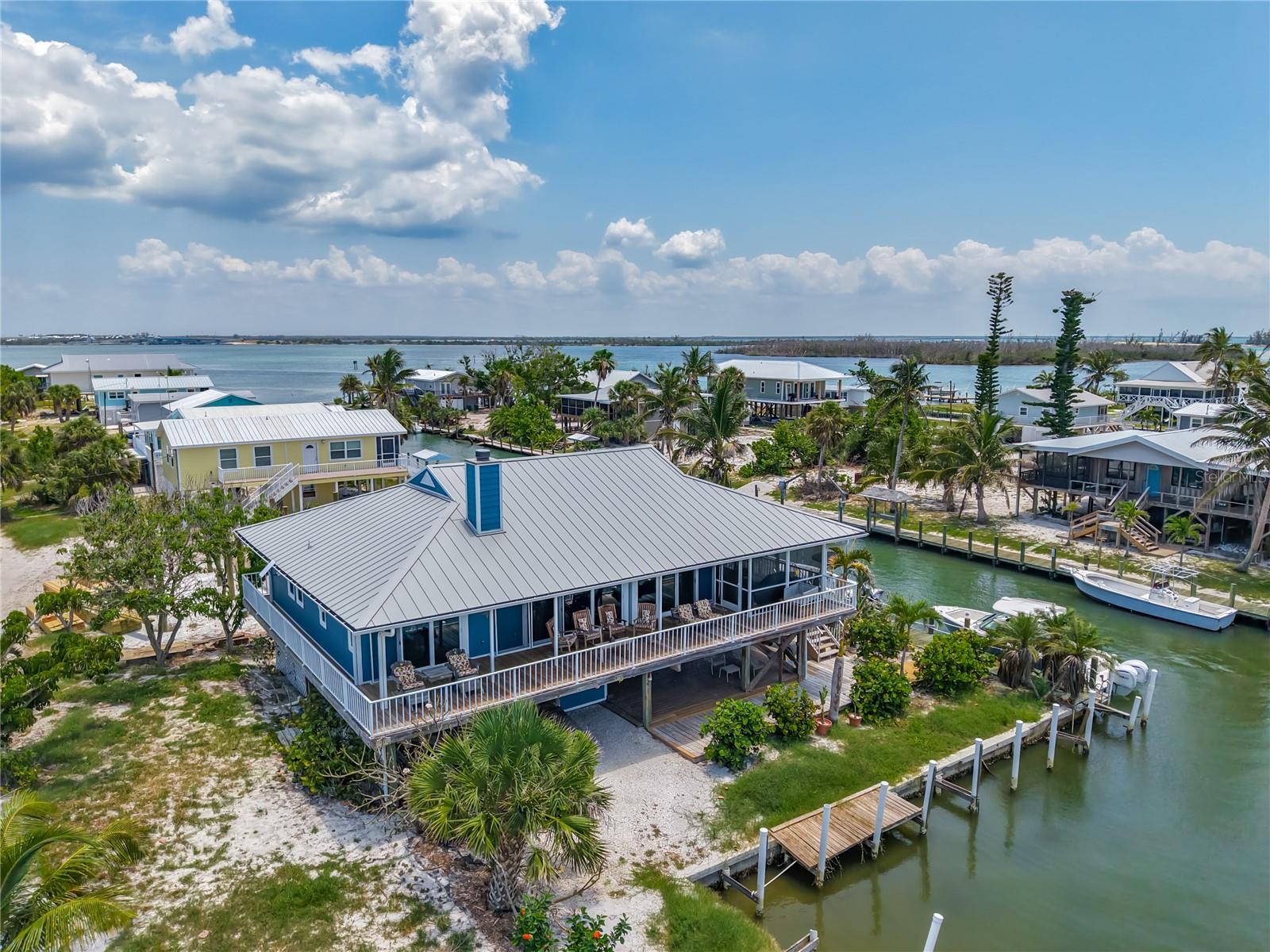 Come With Two Boat, Furnished PLUS More ! Welcome to your Key West-style retreat on Little Gasparilla Island! Nestled on the desirable southwest corner of the North Canal—one of only two canals on the island—this rare gem offers 65 feet of private dock frontage. The well-maintained property features a newly updated seawall and dock (2019), offering effortless boat access. As you arrive, tropical landscaping and lush foliage set the tone for your serene island oasis. Inside, an open-concept layout is highlighted by a stunning vaulted ceiling with coastal plank accents and brand-new luxury vinyl plank flooring. A wood-burning fireplace—perfect for cool island nights—anchors the spacious great room, ideal for entertaining family and friends. The kitchen, fully renovated in 2022, features beautiful Cambria countertops, new upper and lower cabinetry, and GE Café appliances, including a stove, oven, and dishwasher. The oversized island includes an under-cabinet microwave and large wine fridge—perfect for entertaining. This home offers three well-appointed bedrooms, thoughtfully spaced for privacy. The primary suite boasts partial Gulf views and an ensuite bath with a modern, open-concept design, including a double-sink vanity, walk-in glass shower with penny tile, and water closet. A deep closet offers plenty of space for all your island gear. The second bedroom is a peaceful sanctuary with two large windows that bring in Florida sunshine, a queen-sized layout, and a generous closet. The third bedroom overlooks the canal, features ample closet space, and direct access via sliding doors to the screened sun porch—perfect as a guest room, flex space, or home office. Between the guest bedrooms, you'll find the first-floor laundry room—rare for LGI—equipped with LG washer/dryer and overhead shelving. The adjacent second bathroom mirrors the black-and-white penny tile theme found in the primary suite. Additional upgrades include PGT Miami-Dade hurricane-rated windows and doors, new Hardie board siding and soffits, and an aluminum double-strapped seamless roof. The fireplace was rebuilt to code in 2024, and the upgraded, permitted electrical panel supports a new tankless water heater. The lower deck features 1,200 sq ft of outdoor living space with a TV, fire pit, outdoor shower, and a dumbwaiter for supplies from the dock. There’s also a secure enclosed space for golf cart storage and an adjacent workshop. Enjoy water views from nearly every room—including the living room, dining area, kitchen, and primary bedroom. Sliding doors open onto a large open-air porch that spans the west side of the home, overlooking the canal and Gulf. A screened front porch provides shady comfort with canal views. Deeded beach access is just minutes away, and the island offers miles of uncrowded beaches and world-class fishing for snook, redfish, snapper, and more. This turnkey home includes an inflatable boat lift, and the seller is open to negotiating the inclusion of a 21' Polar center console boat and a six-person Club Car golf cart. Experience the best of island living—schedule your private showing today!