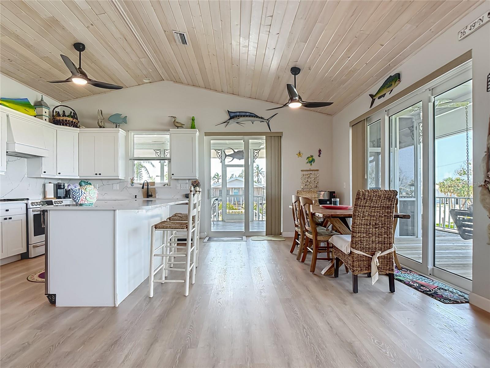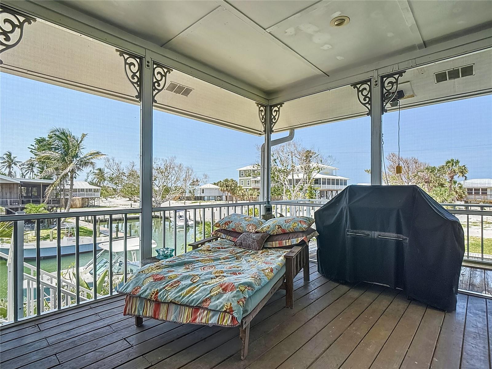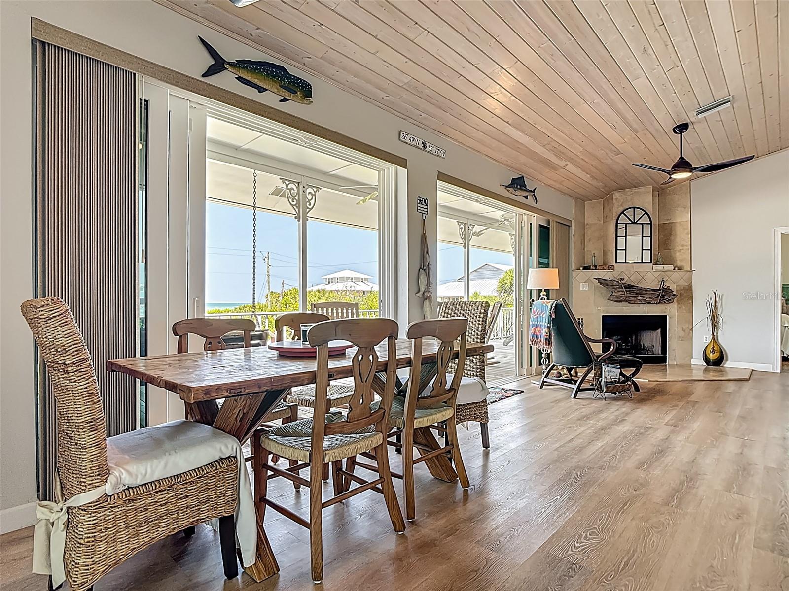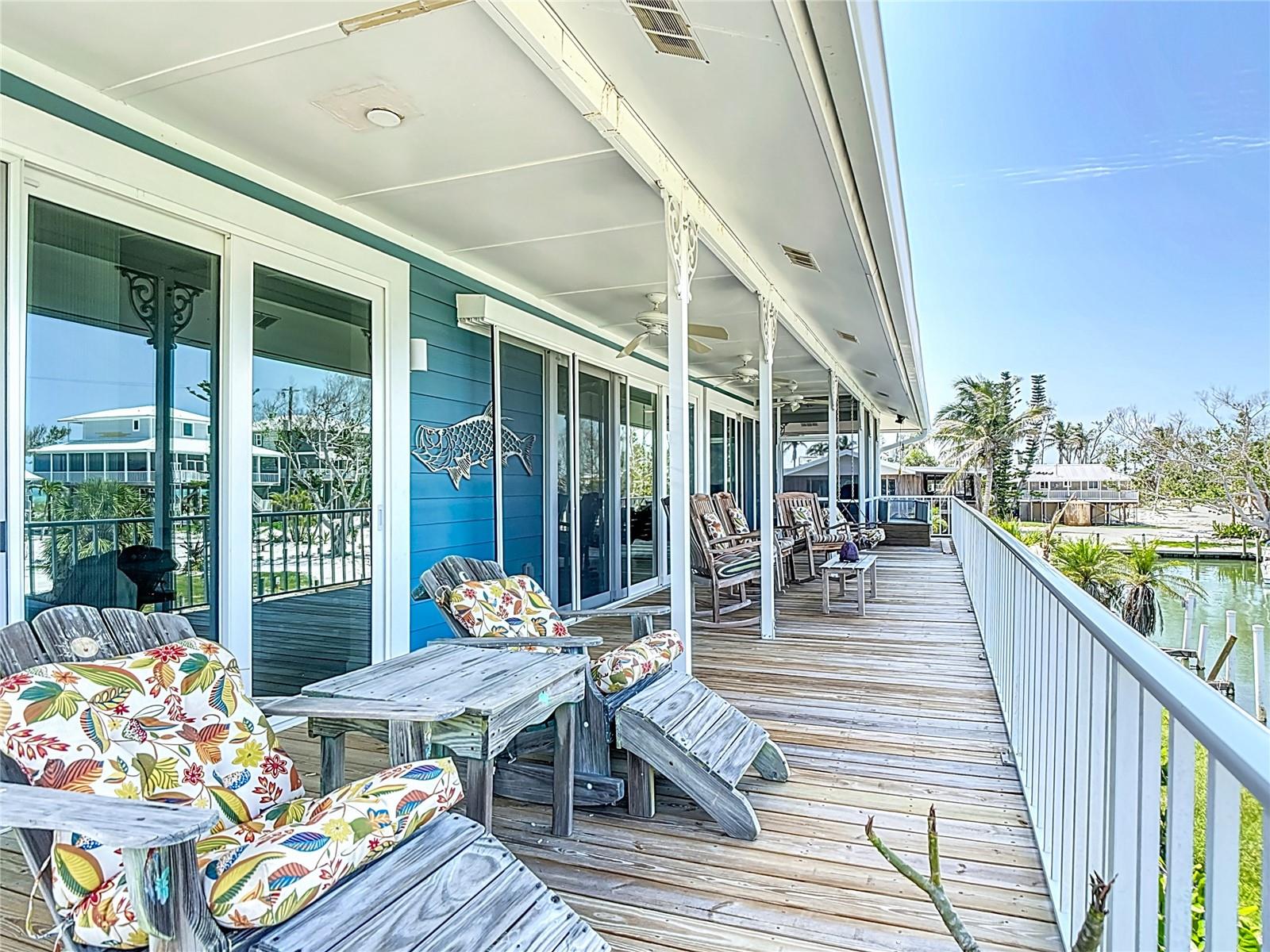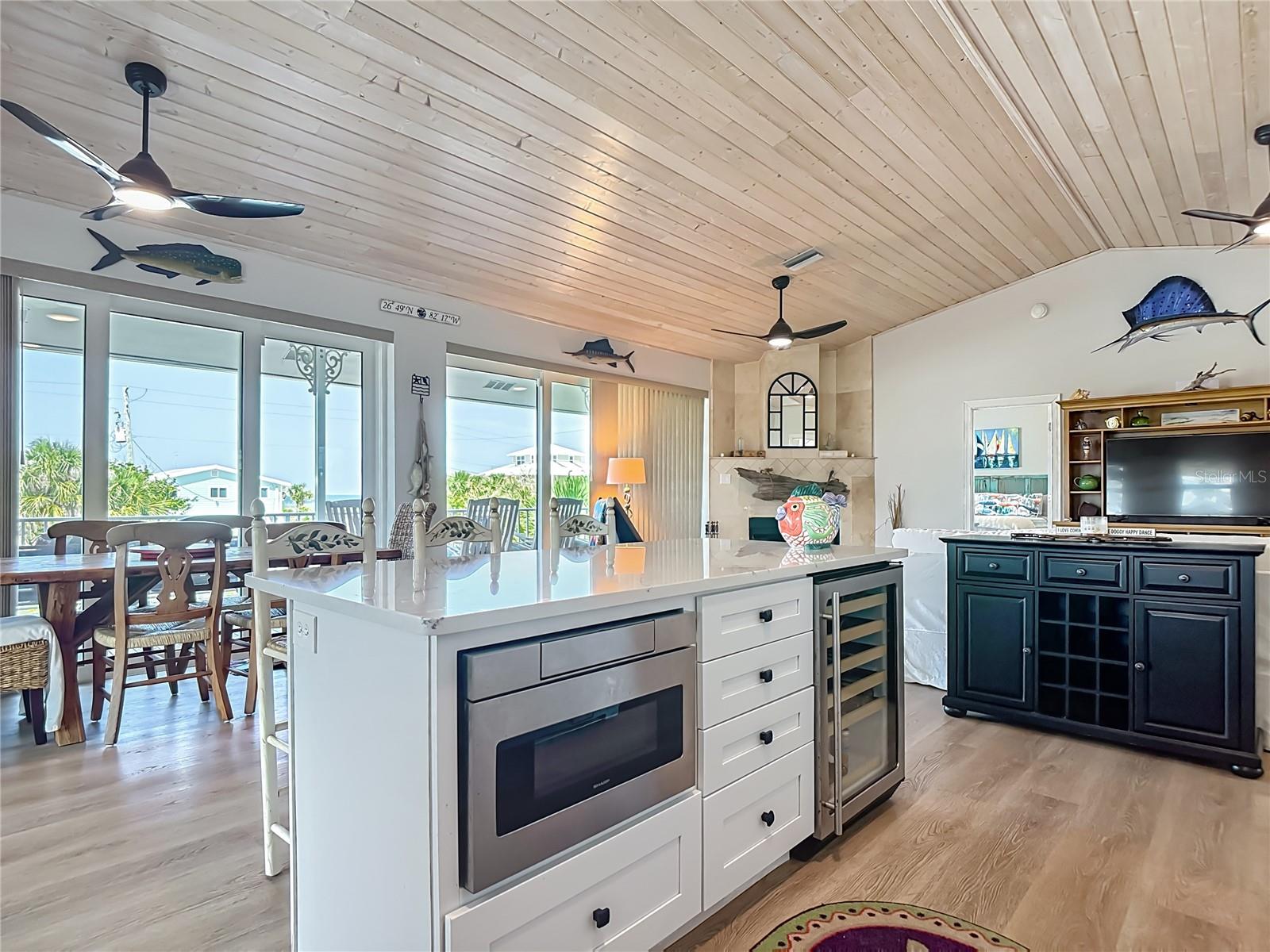 Come With Two Boat, Furnished PLUS More ! Welcome to your Key West-style retreat on Little Gasparilla Island! Nestled on the desirable southwest corner of the North Canal—one of only two canals on the island—this rare gem offers 65 feet of private dock frontage. The well-maintained property features a newly updated seawall and dock (2019), offering effortless boat access. As you arrive, tropical landscaping and lush foliage set the tone for your serene island oasis. Inside, an open-concept layout is highlighted by a stunning vaulted ceiling with coastal plank accents and brand-new luxury vinyl plank flooring. A wood-burning fireplace—perfect for cool island nights—anchors the spacious great room, ideal for entertaining family and friends. The kitchen, fully renovated in 2022, features beautiful Cambria countertops, new upper and lower cabinetry, and GE Café appliances, including a stove, oven, and dishwasher. The oversized island includes an under-cabinet microwave and large wine fridge—perfect for entertaining. This home offers three well-appointed bedrooms, thoughtfully spaced for privacy. The primary suite boasts partial Gulf views and an ensuite bath with a modern, open-concept design, including a double-sink vanity, walk-in glass shower with penny tile, and water closet. A deep closet offers plenty of space for all your island gear. The second bedroom is a peaceful sanctuary with two large windows that bring in Florida sunshine, a queen-sized layout, and a generous closet. The third bedroom overlooks the canal, features ample closet space, and direct access via sliding doors to the screened sun porch—perfect as a guest room, flex space, or home office. Between the guest bedrooms, you'll find the first-floor laundry room—rare for LGI—equipped with LG washer/dryer and overhead shelving. The adjacent second bathroom mirrors the black-and-white penny tile theme found in the primary suite. Additional upgrades include PGT Miami-Dade hurricane-rated windows and doors, new Hardie board siding and soffits, and an aluminum double-strapped seamless roof. The fireplace was rebuilt to code in 2024, and the upgraded, permitted electrical panel supports a new tankless water heater. The lower deck features 1,200 sq ft of outdoor living space with a TV, fire pit, outdoor shower, and a dumbwaiter for supplies from the dock. There’s also a secure enclosed space for golf cart storage and an adjacent workshop. Enjoy water views from nearly every room—including the living room, dining area, kitchen, and primary bedroom. Sliding doors open onto a large open-air porch that spans the west side of the home, overlooking the canal and Gulf. A screened front porch provides shady comfort with canal views. Deeded beach access is just minutes away, and the island offers miles of uncrowded beaches and world-class fishing for snook, redfish, snapper, and more. This turnkey home includes an inflatable boat lift, and the seller is open to negotiating the inclusion of a 21' Polar center console boat and a six-person Club Car golf cart. Experience the best of island living—schedule your private showing today!