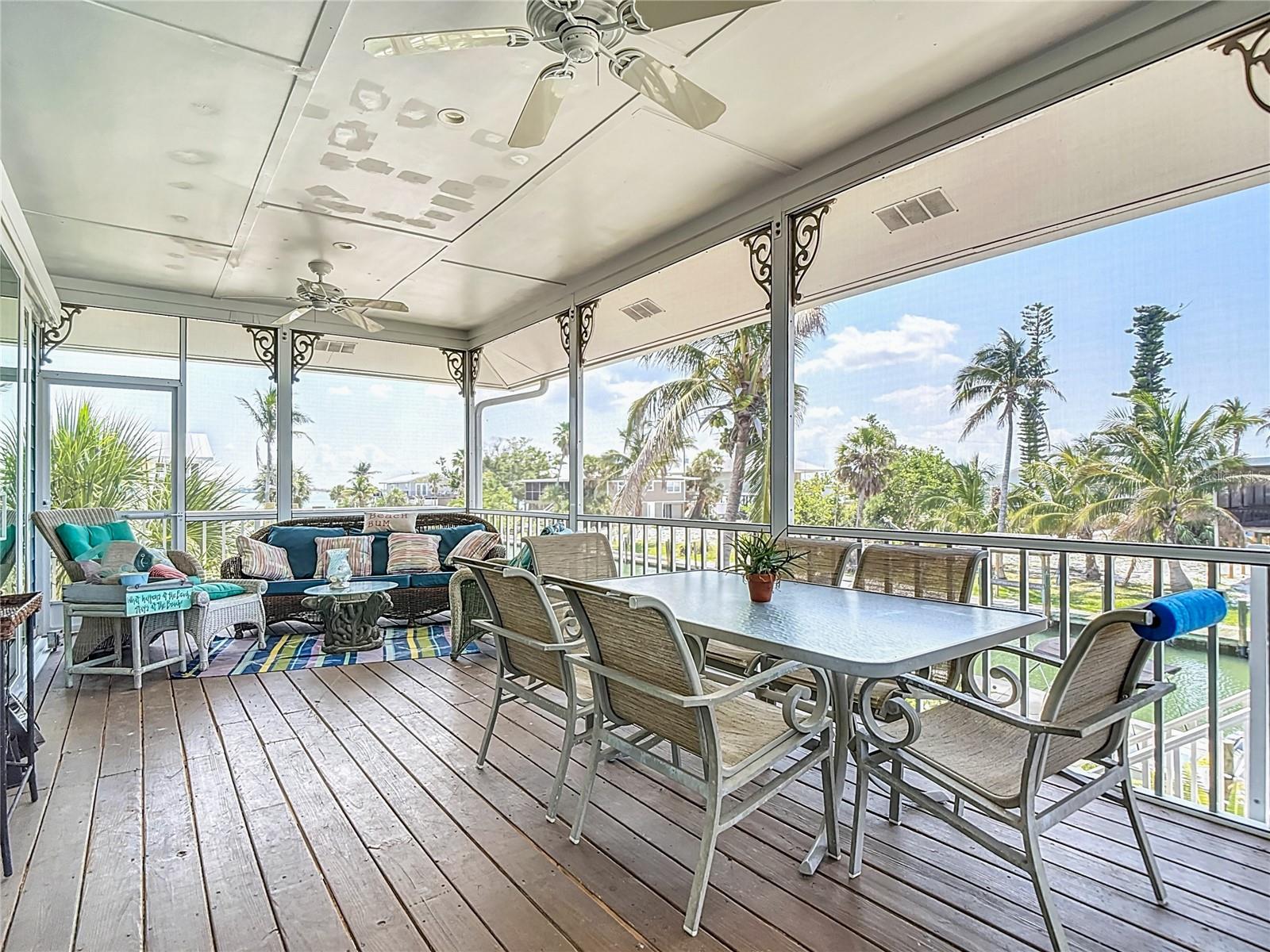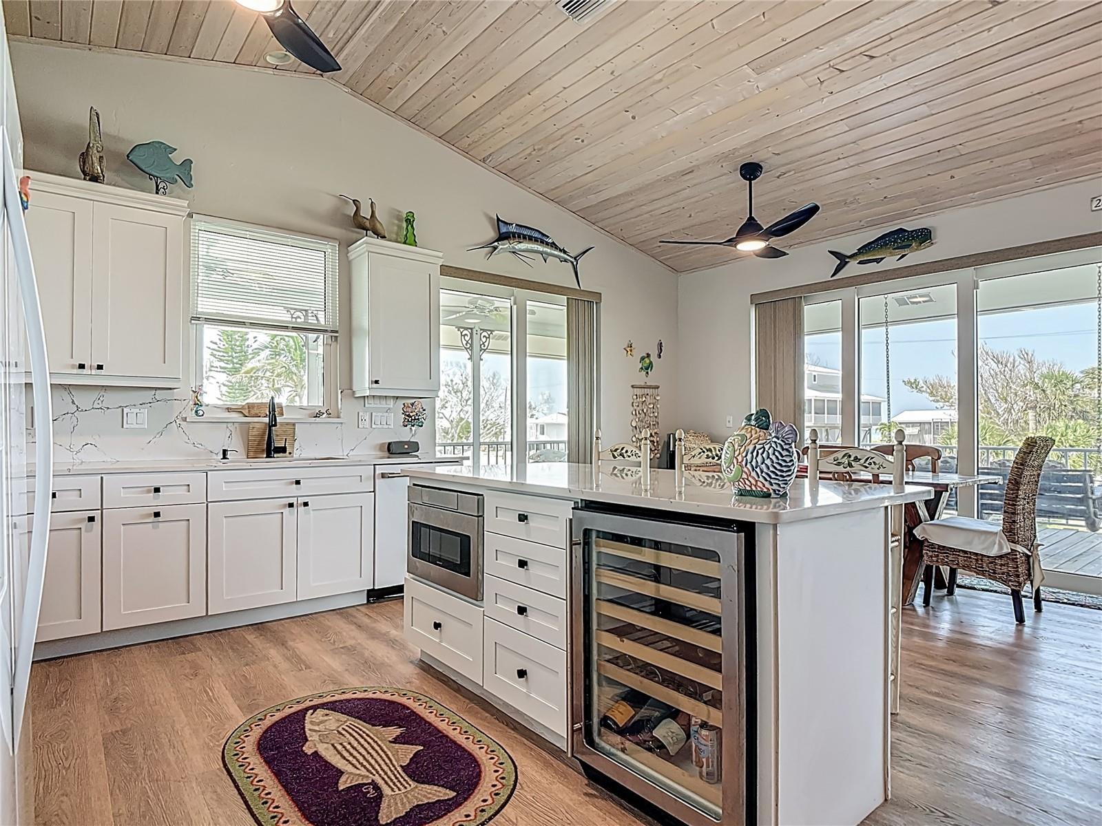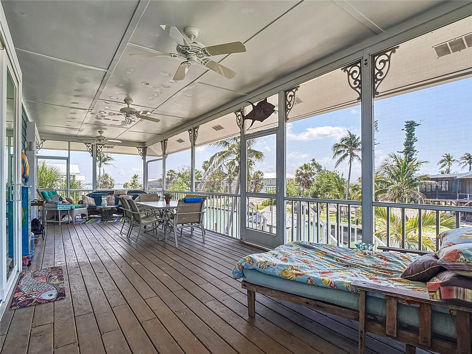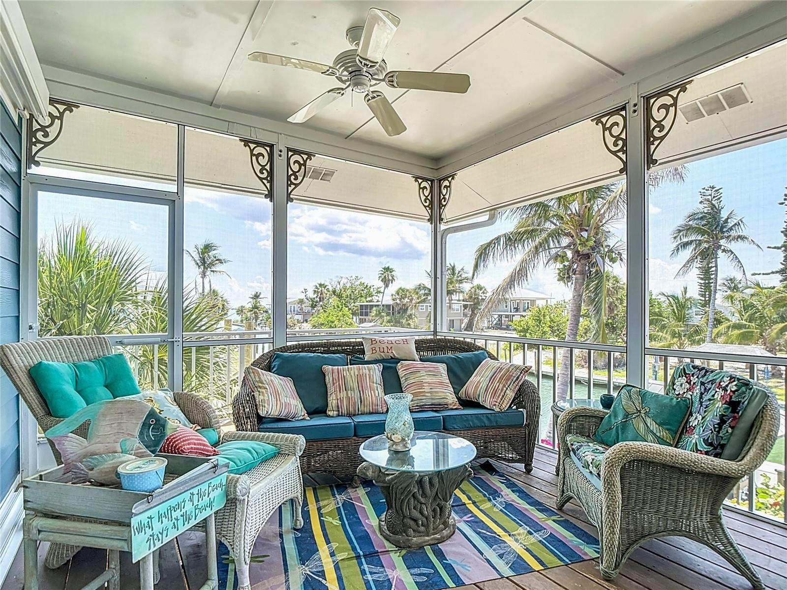 Come With Two Boat, Furnished PLUS More ! Welcome to your Key West-style retreat on Little Gasparilla Island! Nestled on the desirable southwest corner of the North Canal—one of only two canals on the island—this rare gem offers 65 feet of private dock frontage. The well-maintained property features a newly updated seawall and dock (2019), offering effortless boat access. As you arrive, tropical landscaping and lush foliage set the tone for your serene island oasis. Inside, an open-concept layout is highlighted by a stunning vaulted ceiling with coastal plank accents and brand-new luxury vinyl plank flooring. A wood-burning fireplace—perfect for cool island nights—anchors the spacious great room, ideal for entertaining family and friends. The kitchen, fully renovated in 2022, features beautiful Cambria countertops, new upper and lower cabinetry, and GE Café appliances, including a stove, oven, and dishwasher. The oversized island includes an under-cabinet microwave and large wine fridge—perfect for entertaining. This home offers three well-appointed bedrooms, thoughtfully spaced for privacy. The primary suite boasts partial Gulf views and an ensuite bath with a modern, open-concept design, including a double-sink vanity, walk-in glass shower with penny tile, and water closet. A deep closet offers plenty of space for all your island gear. The second bedroom is a peaceful sanctuary with two large windows that bring in Florida sunshine, a queen-sized layout, and a generous closet. The third bedroom overlooks the canal, features ample closet space, and direct access via sliding doors to the screened sun porch—perfect as a guest room, flex space, or home office. Between the guest bedrooms, you'll find the first-floor laundry room—rare for LGI—equipped with LG washer/dryer and overhead shelving. The adjacent second bathroom mirrors the black-and-white penny tile theme found in the primary suite. Additional upgrades include PGT Miami-Dade hurricane-rated windows and doors, new Hardie board siding and soffits, and an aluminum double-strapped seamless roof. The fireplace was rebuilt to code in 2024, and the upgraded, permitted electrical panel supports a new tankless water heater. The lower deck features 1,200 sq ft of outdoor living space with a TV, fire pit, outdoor shower, and a dumbwaiter for supplies from the dock. There’s also a secure enclosed space for golf cart storage and an adjacent workshop. Enjoy water views from nearly every room—including the living room, dining area, kitchen, and primary bedroom. Sliding doors open onto a large open-air porch that spans the west side of the home, overlooking the canal and Gulf. A screened front porch provides shady comfort with canal views. Deeded beach access is just minutes away, and the island offers miles of uncrowded beaches and world-class fishing for snook, redfish, snapper, and more. This turnkey home includes an inflatable boat lift, and the seller is open to negotiating the inclusion of a 21' Polar center console boat and a six-person Club Car golf cart. Experience the best of island living—schedule your private showing today!