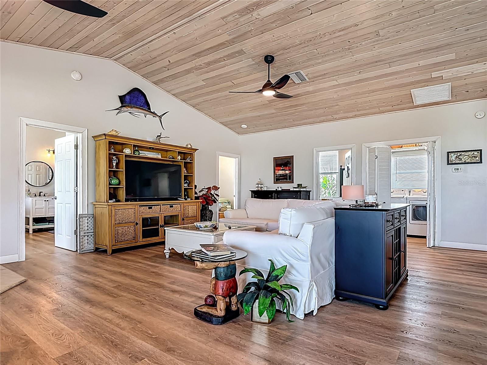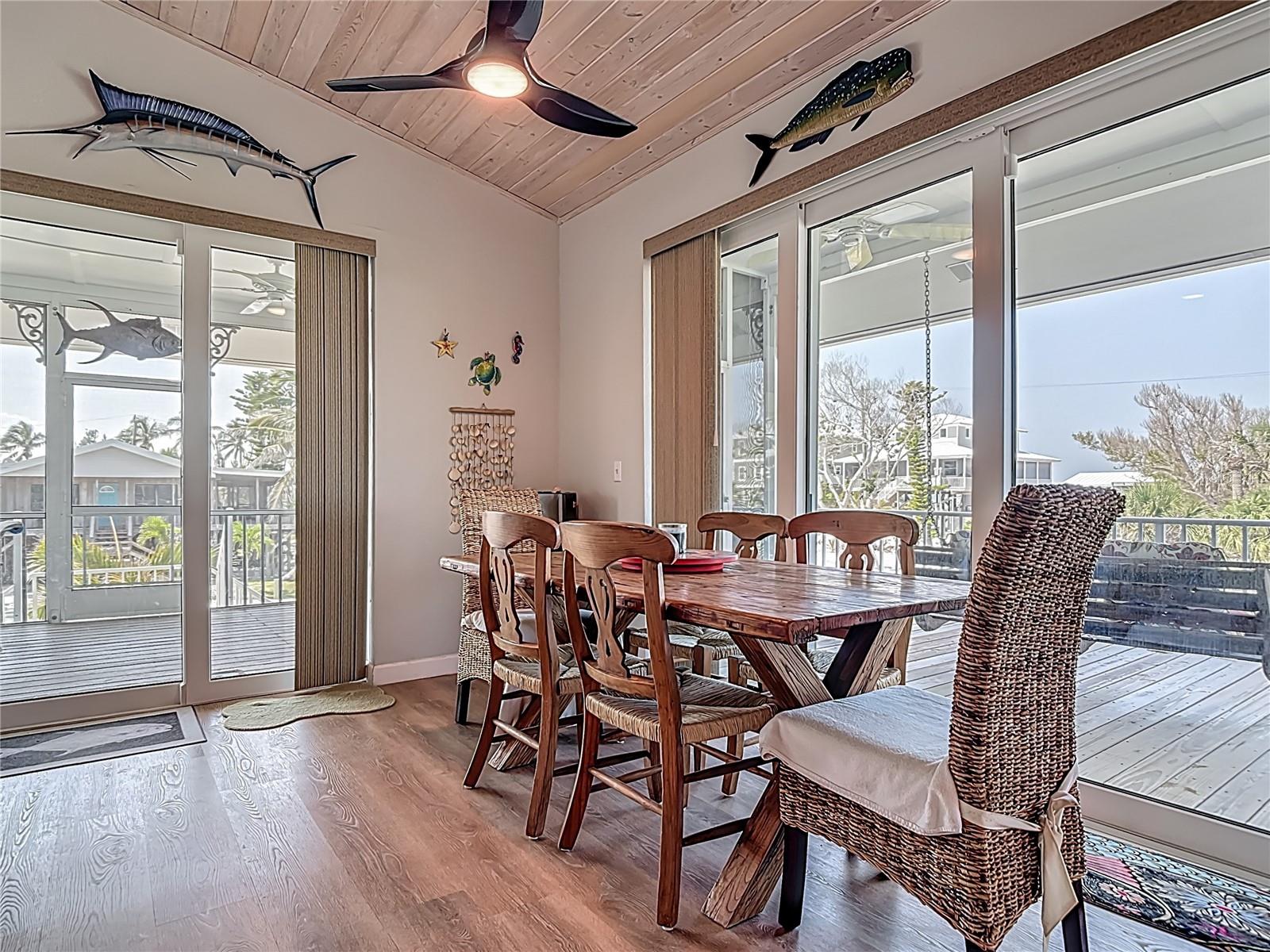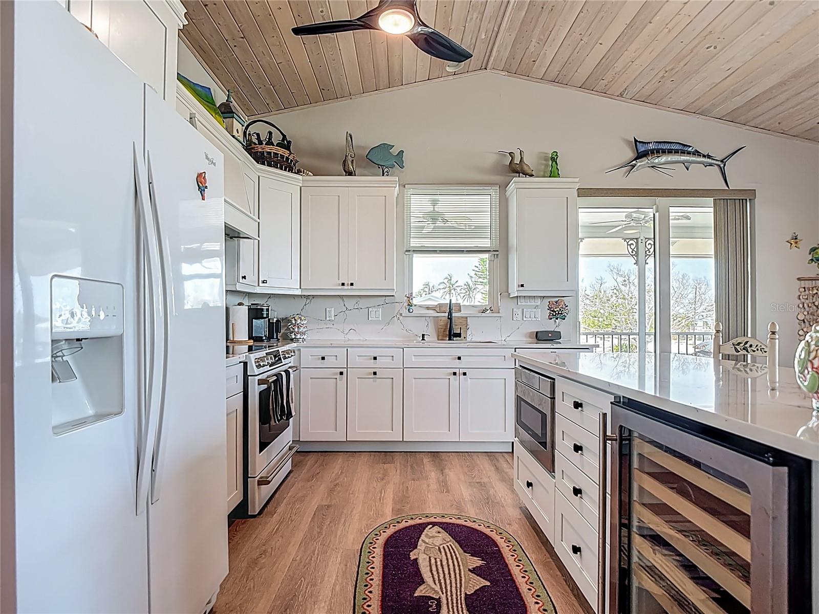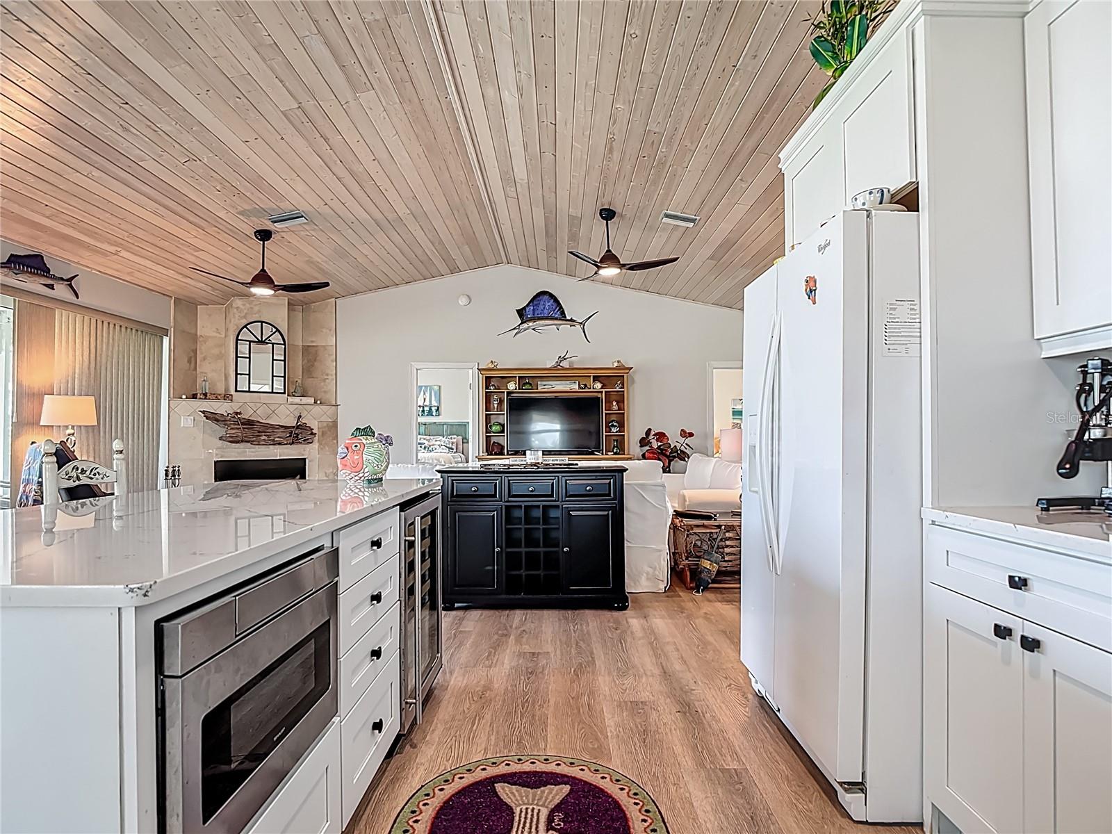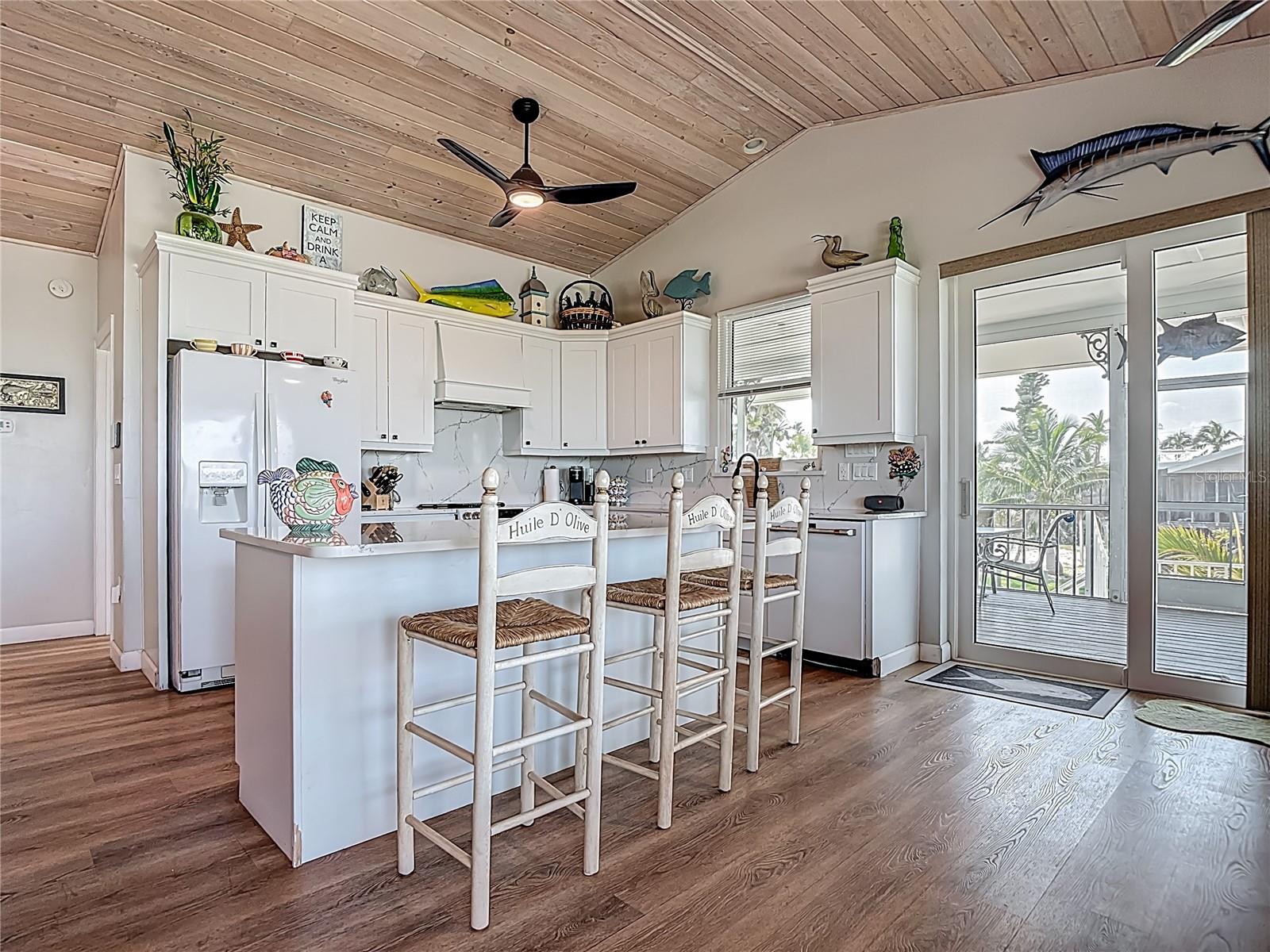 Come With Two Boat, Furnished PLUS More ! Welcome to your Key West-style retreat on Little Gasparilla Island! Nestled on the desirable southwest corner of the North Canal—one of only two canals on the island—this rare gem offers 65 feet of private dock frontage. The well-maintained property features a newly updated seawall and dock (2019), offering effortless boat access. As you arrive, tropical landscaping and lush foliage set the tone for your serene island oasis. Inside, an open-concept layout is highlighted by a stunning vaulted ceiling with coastal plank accents and brand-new luxury vinyl plank flooring. A wood-burning fireplace—perfect for cool island nights—anchors the spacious great room, ideal for entertaining family and friends. The kitchen, fully renovated in 2022, features beautiful Cambria countertops, new upper and lower cabinetry, and GE Café appliances, including a stove, oven, and dishwasher. The oversized island includes an under-cabinet microwave and large wine fridge—perfect for entertaining. This home offers three well-appointed bedrooms, thoughtfully spaced for privacy. The primary suite boasts partial Gulf views and an ensuite bath with a modern, open-concept design, including a double-sink vanity, walk-in glass shower with penny tile, and water closet. A deep closet offers plenty of space for all your island gear. The second bedroom is a peaceful sanctuary with two large windows that bring in Florida sunshine, a queen-sized layout, and a generous closet. The third bedroom overlooks the canal, features ample closet space, and direct access via sliding doors to the screened sun porch—perfect as a guest room, flex space, or home office. Between the guest bedrooms, you'll find the first-floor laundry room—rare for LGI—equipped with LG washer/dryer and overhead shelving. The adjacent second bathroom mirrors the black-and-white penny tile theme found in the primary suite. Additional upgrades include PGT Miami-Dade hurricane-rated windows and doors, new Hardie board siding and soffits, and an aluminum double-strapped seamless roof. The fireplace was rebuilt to code in 2024, and the upgraded, permitted electrical panel supports a new tankless water heater. The lower deck features 1,200 sq ft of outdoor living space with a TV, fire pit, outdoor shower, and a dumbwaiter for supplies from the dock. There’s also a secure enclosed space for golf cart storage and an adjacent workshop. Enjoy water views from nearly every room—including the living room, dining area, kitchen, and primary bedroom. Sliding doors open onto a large open-air porch that spans the west side of the home, overlooking the canal and Gulf. A screened front porch provides shady comfort with canal views. Deeded beach access is just minutes away, and the island offers miles of uncrowded beaches and world-class fishing for snook, redfish, snapper, and more. This turnkey home includes an inflatable boat lift, and the seller is open to negotiating the inclusion of a 21' Polar center console boat and a six-person Club Car golf cart. Experience the best of island living—schedule your private showing today!