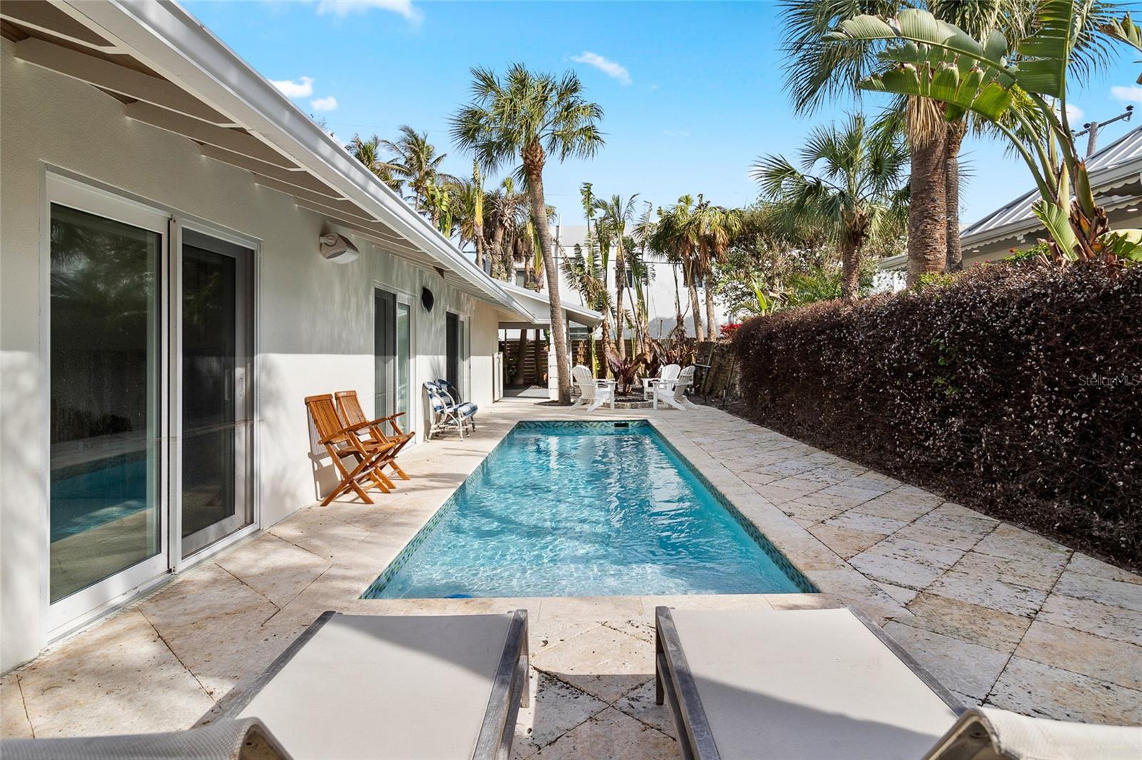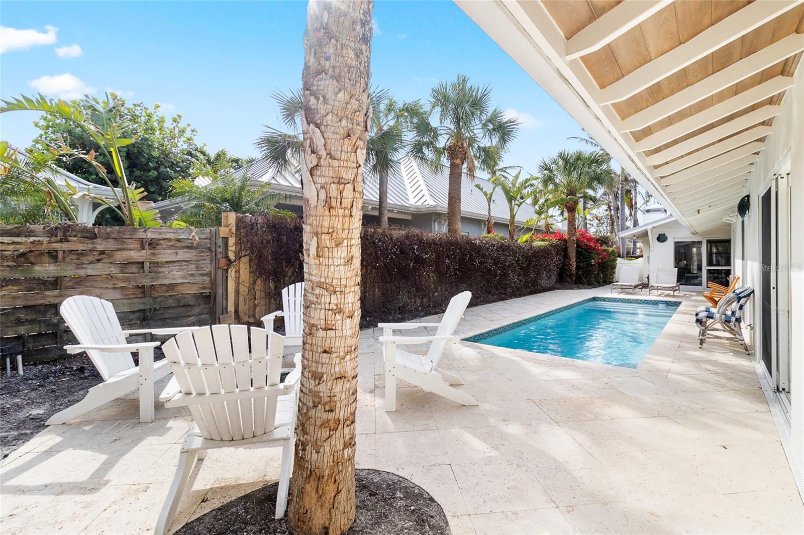 LOCATION LOCATION LOCATION-Walk to everything from this truly exquisite 3 bedroom, 2 ½ bathroom Gilchrist Cottage in the heart of the “Historic District”. Loaded with mid-century charm, updated professionally with modern coastal contemporary influence throughout, all nestled onto a deep 50’ by 150’ lot. The property is being beautifully remodeled nearly new and will be delivered Designer furnished for immediate use! This delightful home offers a very private swimming pool area tucked behind privacy fencing covered with fragrant Jasmine, among just planted new lush and additional landscaping. A standing seam metal roof protects the Cottage along with back alley access to a large covered carport. The main living area provides a Great Room concept with Philippine Shellstone flooring throughout and a comfortably spacious 10’ by 28’ old fashioned front porch facing the Gulf of Mexico! Estate Wall, extensive pavers, and luminous night lighting offers a very special ambiance at this superb location. A rare opportunity to own in this very limited heart of the Village…Act now and pick your colors!