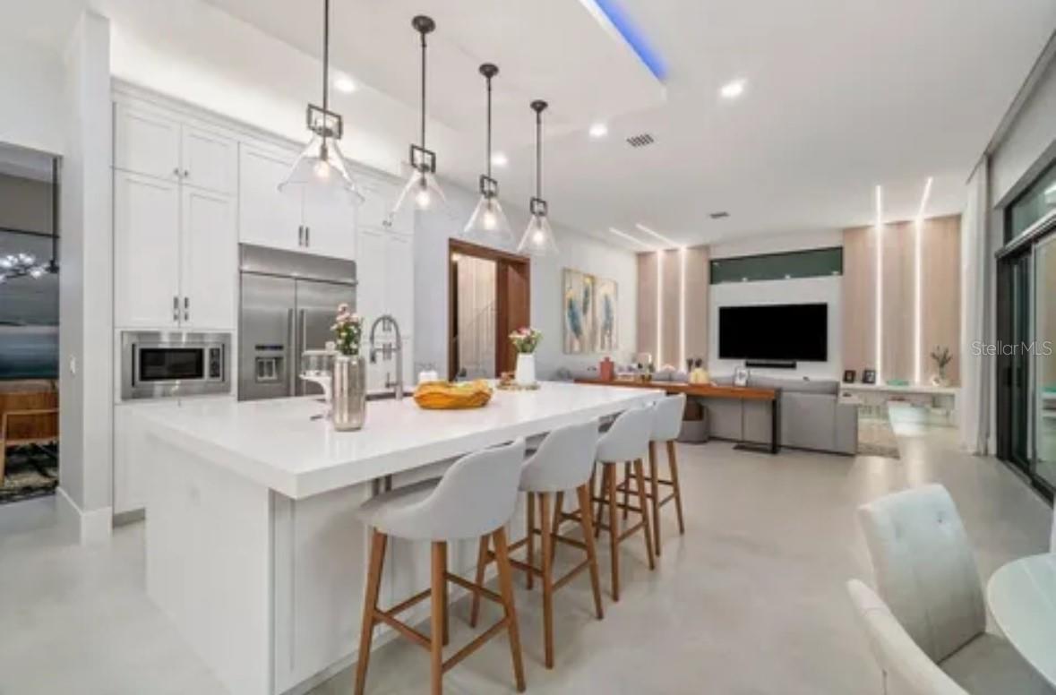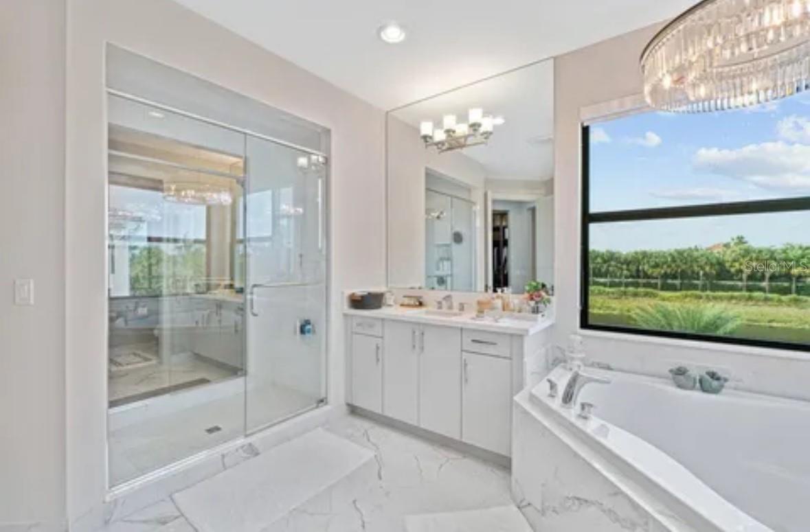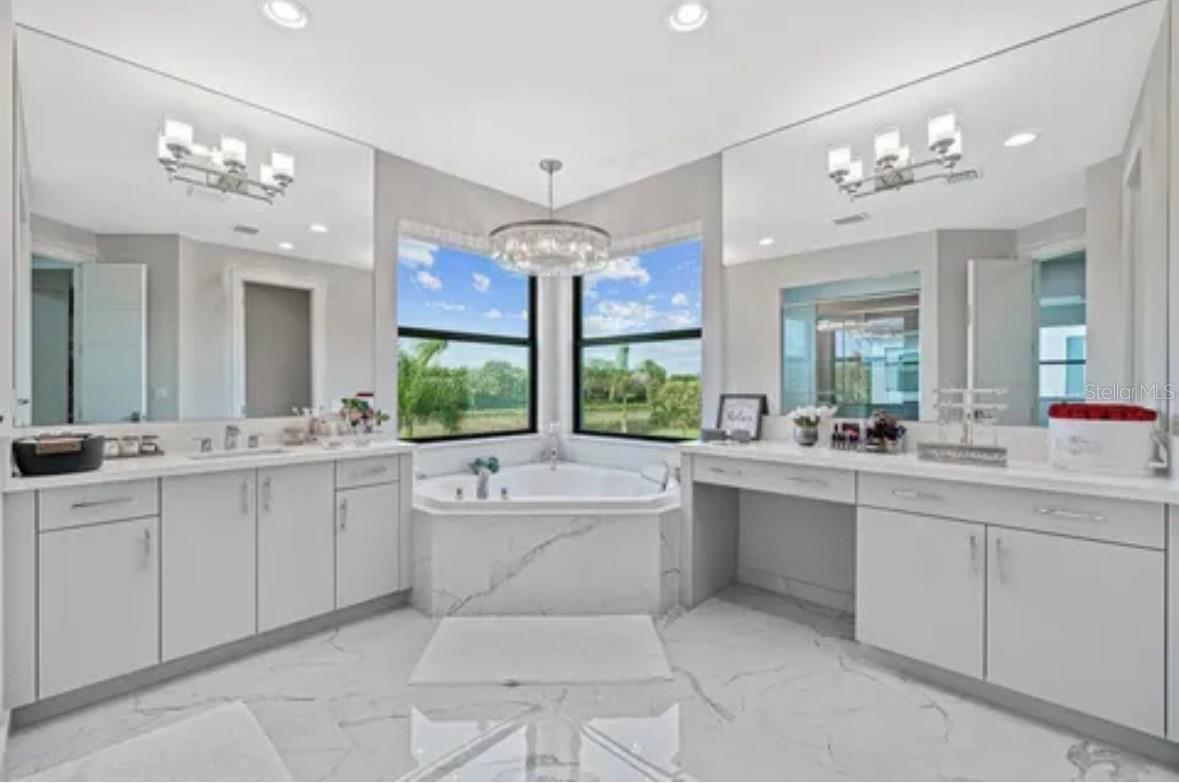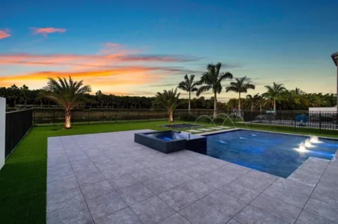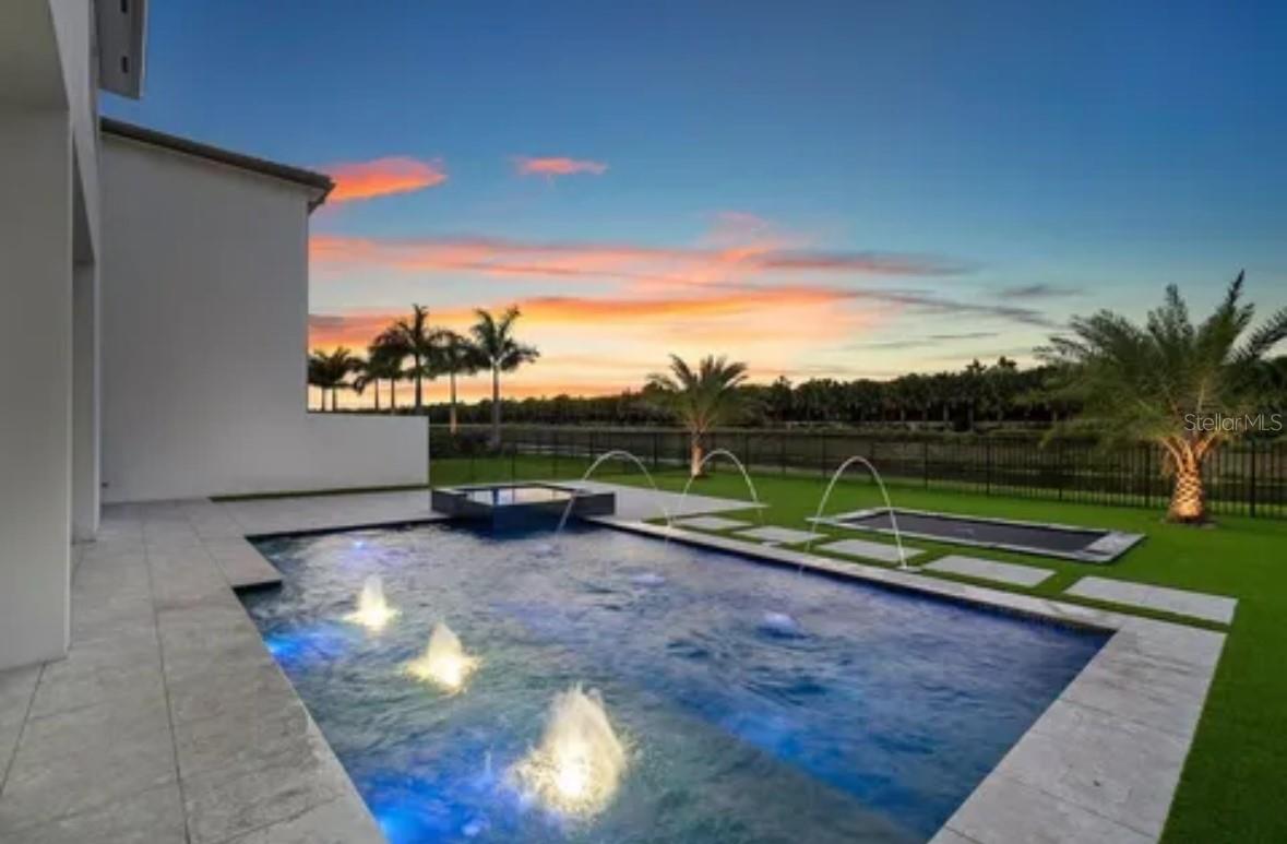 Immaculate "Alure"" model home, built in 2020, situated on an oversized premium lot with breathtaking lake views. This exquisite residence spans 5,170 sq. ft. of living space and 6,552 sq. ft. total, featuring 5 bedrooms, 6 bathrooms, a spacious loft, a media room, and a playroom. The upstairs primary suite offers privacy and luxury with a balcony overlooking the pool and lake. All bedrooms have en-suite bathrooms. The convenient upstairs laundry room adds ease to daily living. The open, spacious kitchen is equipped with top-of-the-line Wolf and Sub-Zero appliances. A custom-built marble bar in the living room opens to the expansive outdoor living area, perfect for entertaining with a saltwater pool, spa, and ample turf for a playground or sport court. Boca Bridges provides exceptional amenities including a resort-style pool, kids' aqua tot area, outdoor bar, lap pool, tennis and pickleball courts, indoor basketball court, spa services, and a full-service restaurant. The grand 27,000 square-foot clubhouse offers the perfect South Florida lifestyle without country club fees. Features include a breakfast area, eat-in kitchen, formal dining, snack bar, family room, loft, media room, built-in shelves, custom mirrors, kitchen island, Roman tub, split bedroom design, upstairs living area, volume ceilings, walk-in closets, wet bar, and turnkey furnished options. Flooring includes ceramic tile, and the primary bathroom boasts 2 master baths, dual sinks, and a separate tub. Pool features: private concrete, gunite, heated, inground pool, and spa.