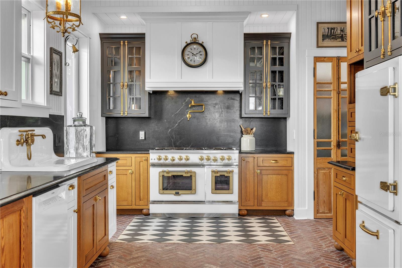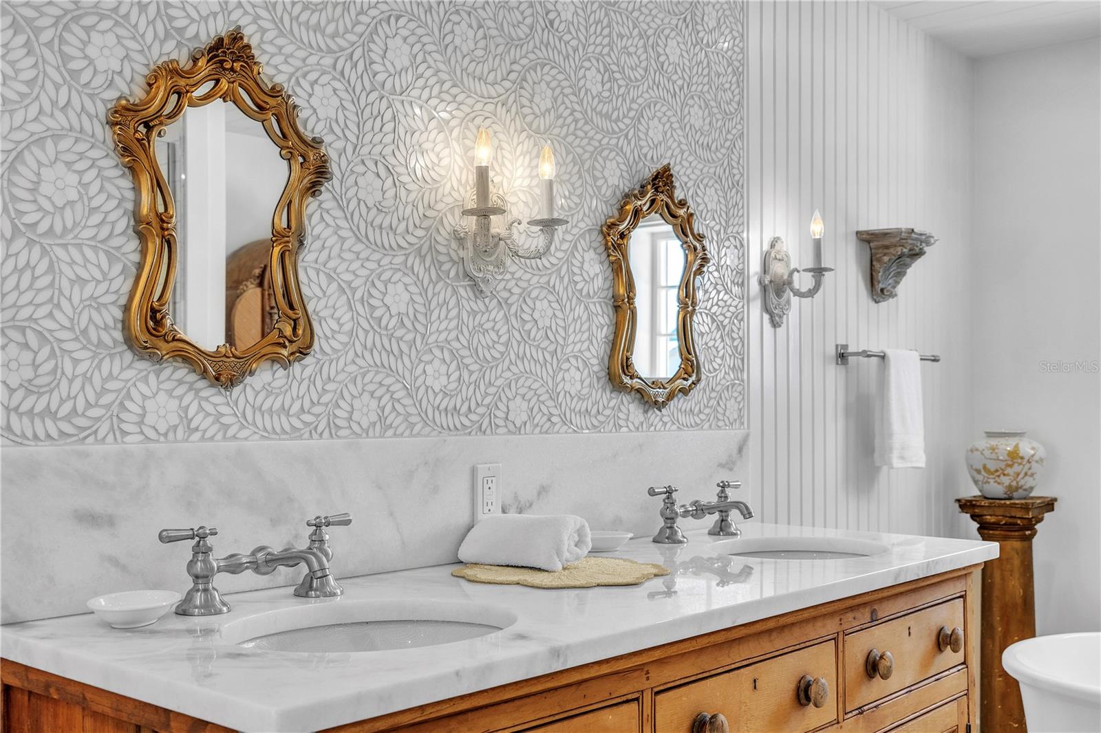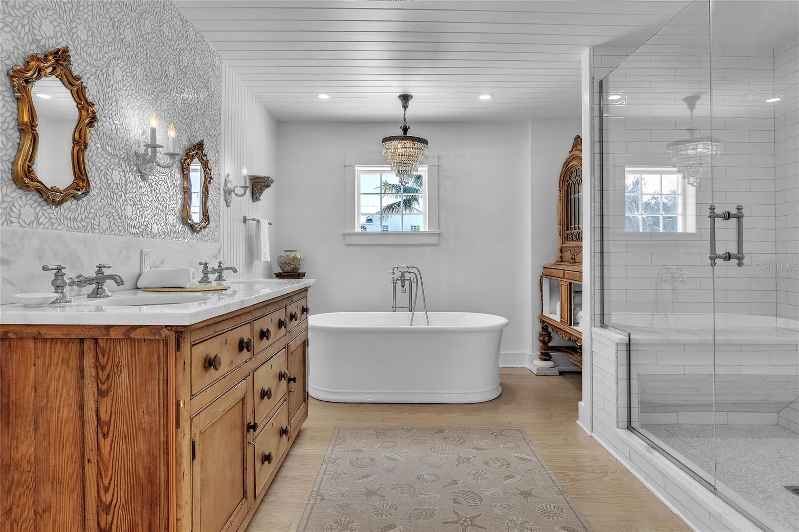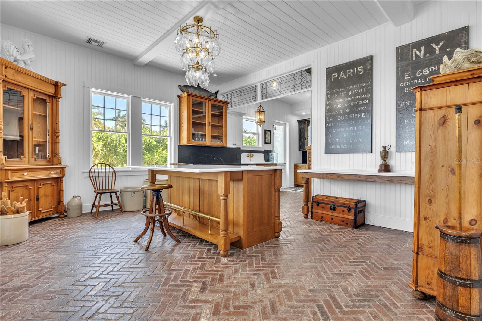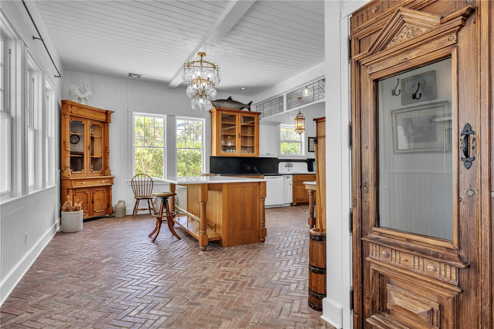 Formerly known as the iconic Bokeelia Tarpon Inn featuring 4 bedrooms, 5 bathrooms and may be purchased TURN-KEY. This historic estate blends early 1900s character with over $1 MILLION in high-end upgrades. PLUS, This home qualifies for 100% Bonus Depreciation on FF&E values!! Located on the northern tip of Pine Island, where the views simply do not get better. Enjoy water views from nearly every window in the home. Primary has Panoramic Views of Charlotte Harbor! With 2 BOAT SLIPS and lift access, you’ll have quick and easy entry into Charlotte Harbor, Matlacha Pass, and the Gulf. Stepping into the home, the grand front entrance offers a massive covered sitting space, a perfect place to soak in the sunshine, coastal breezes, and peaceful waterfront scenery. Vintage charm greets you at every turn, beautifully preserved and enhanced with thoughtful modern updates. Natural light fills the home, creating a bright and airy feel throughout. The gourmet kitchen is a true showpiece, featuring a Big Chill refrigerator and gas range with unlacquered brass hardware, a designer industrial Zephyr ventilation hood, and a brass pot filler for added convenience. Brick flooring is laid in a classic herringbone pattern, while dramatic soapstone countertops elevate the space. The open-concept living area showcases porcelain tile flooring and a stunning touchstone built-in electric fireplace. Just off the main living area, the laundry room adds convenience. Enjoy garden views from the only downstairs guest bedroom. Upstairs, solid wood flooring and custom hardwood stair treads maintain the home’s historic integrity. You will find the expansive primary suite features vaulted ceilings and a cozy revolution, built-in electric fireplace. The spa-inspired primary bath offers water jet-cut marble mosaic tile on the vanity wall, shower inset, and shower floor, a freestanding soaking tub with a Kingston Brass floor-mounted tub filler and hand shower, and custom solid wood cabinetry beneath quartz countertops. Additional Features include: 2 A/C units, spray foam insulation, a walkable attic with additional storage, a high-efficiency tankless water heater, a permanently installed Generac standby generator, a HOOT aerobic septic system, ELECTRIC HURRICANE protection, and Kevlar protection for the upstairs lanai. The exterior is equally impressive with James Hardie shake siding, all-new Azek decking, railings, and stairs, and a custom-built pergola with electric. The oversized lot is beautifully landscaped with mature fruit trees along with a coral fountain surrounded by a rose garden. You are just minutes from world-class boating and fishing destinations including Boca Grande Pass and Cayo Costa. You’re also close to the Bokeelia Fishing Pier, charming island dining, Pine Island Center, and everything that makes Pine Island such a peaceful and desirable coastal community. With breathtaking water views, historic significance, luxury finishes, and unmatched zoning flexibility, this is truly a one-of-a-kind investment and lifestyle opportunity.
