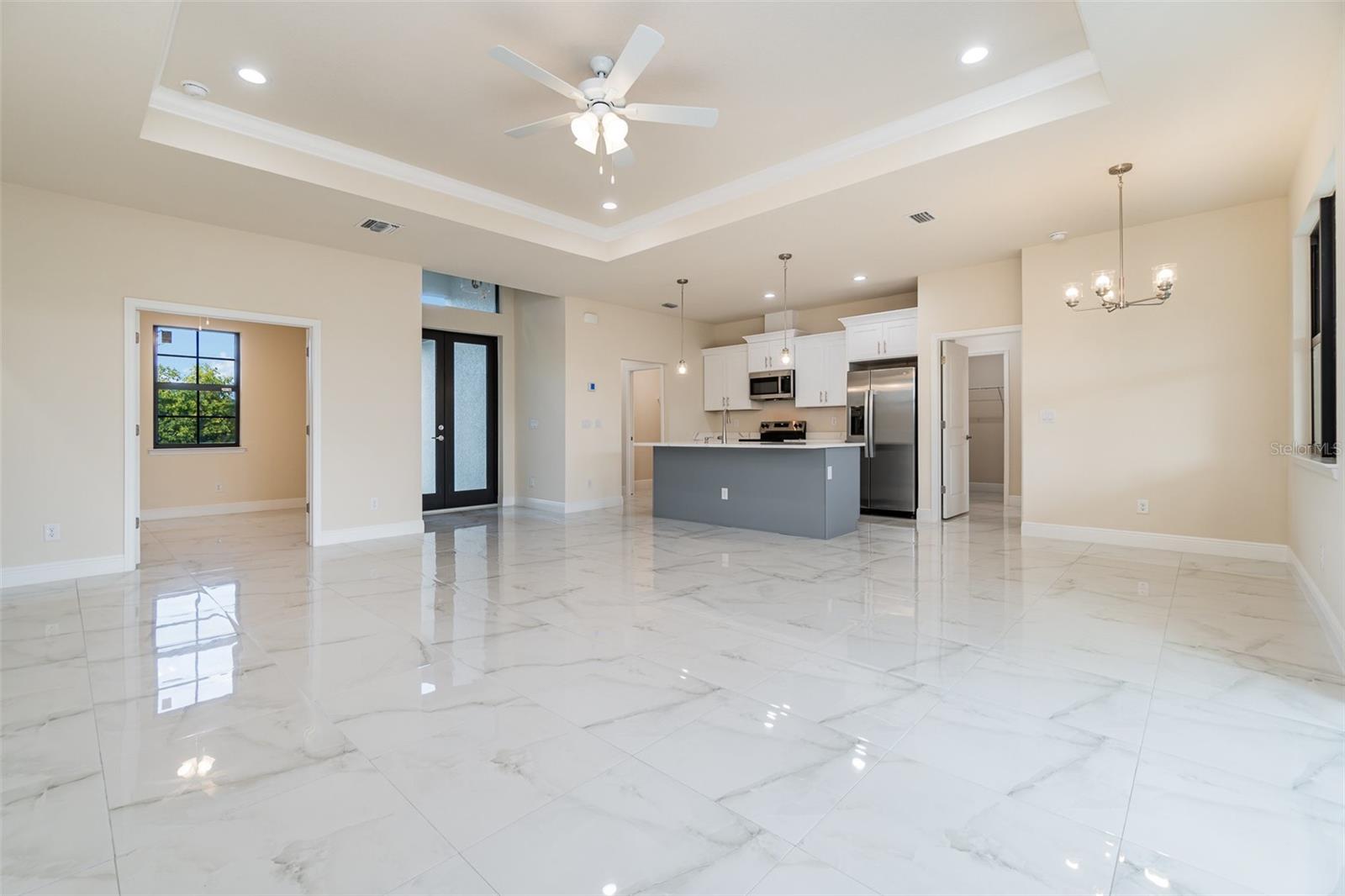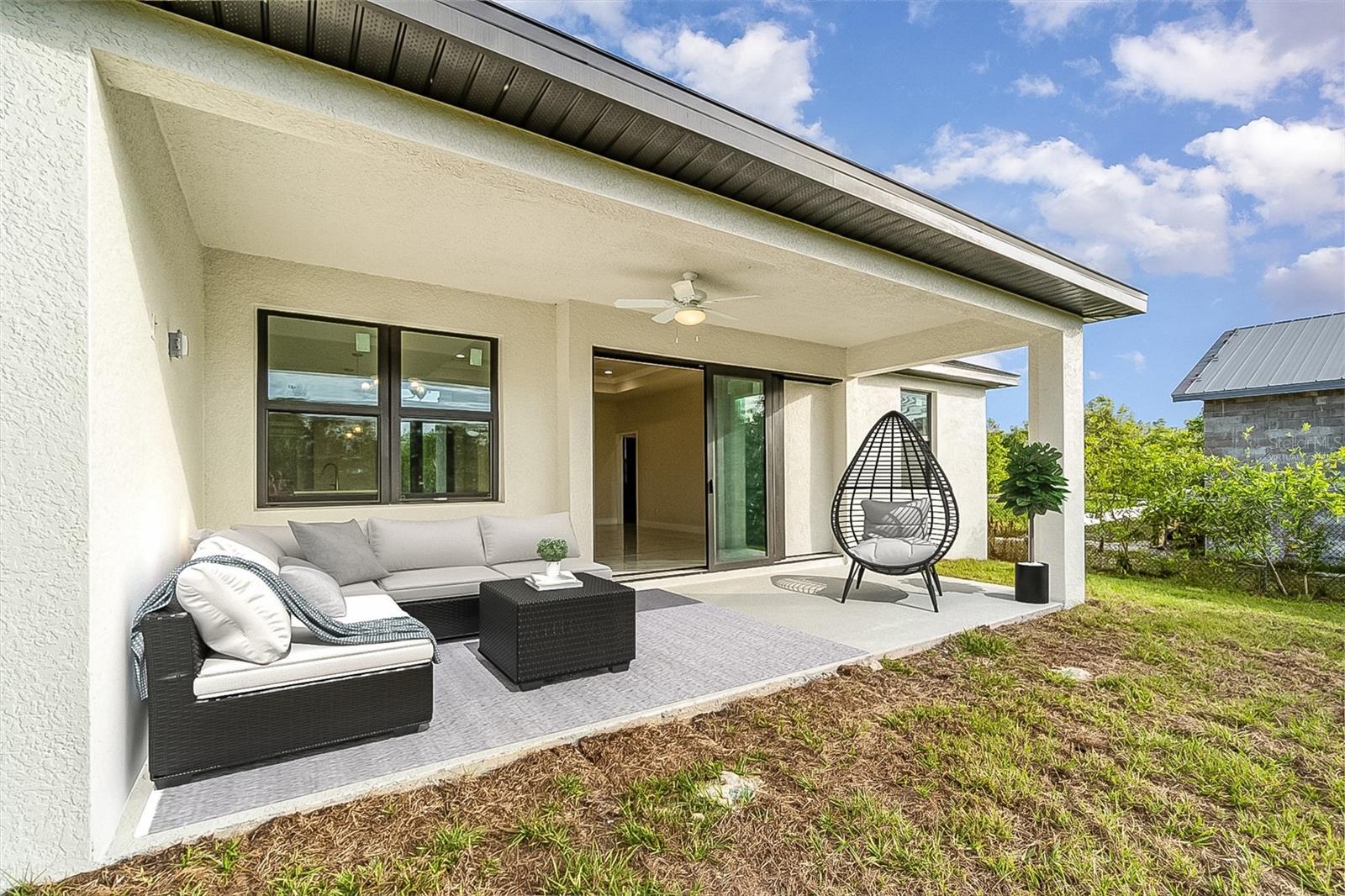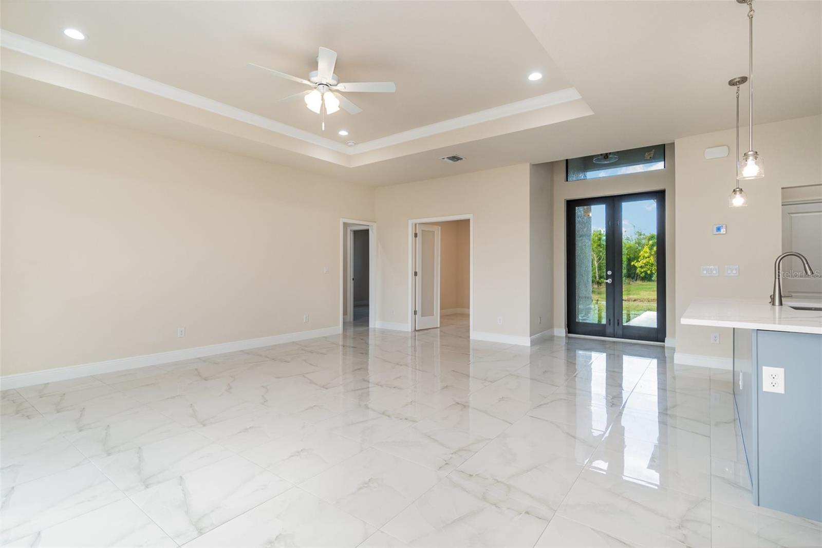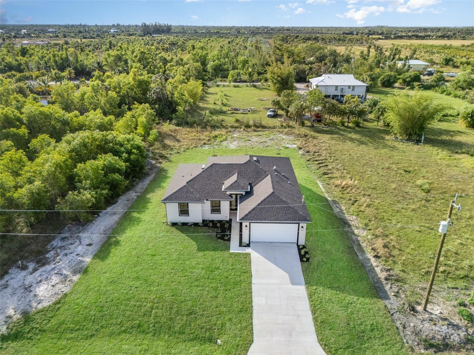 MOTIVATED SELLER! BRAND-NEW CONSTRUCTION – READY FOR MOVE-IN! This stunning newly built home in Bokeelia on Pine Island is officially complete—be the first to call it home! This home is built with solid concrete block construction and hurricane-rated windows and doors, ensuring safety and peace of mind. Step inside to discover 3 bedrooms + a den, 2 bathrooms, and elegant tile flooring throughout, creating a seamless and sophisticated ambiance. The open-concept layout enhances the home's spacious feel, while pocket sliders lead to an expansive lanai—perfect for embracing the island breeze and outdoor living at its best. With plenty of room to add a pool, this property offers the privacy and space you desire. Every inch of this home showcases high-end craftsmanship, from the 5 1/4" baseboards to the tray ceilings with crown molding in the living room and primary bedroom. The gourmet kitchen is a chef’s dream, featuring a large island, luxurious granite countertops, soft-close solid wood cabinetry, and top-of-the-line stainless-steel appliances. Whether cooking a casual meal or entertaining guests, this kitchen is designed to impress. Enjoy worry-free living with a one-year builder warranty and a 10-year structural warranty. Plus, the built-in irrigation system keeps your yard pristine year-round. Best of all—no flood insurance is required and has NO HOA fees! Nestled on a spacious 1/2-acre lot on a private road, this exquisite residence offers the perfect blend of luxury, durability, and island living. Located close to marinas, this home provides easy access to boating, fishing, and endless opportunities for outdoor adventure—embracing the true essence of island life. Don't miss this rare opportunity to own a piece of Pine Island paradise. This exceptional home is ready to welcome you—schedule your private showing today and start living the island lifestyle!