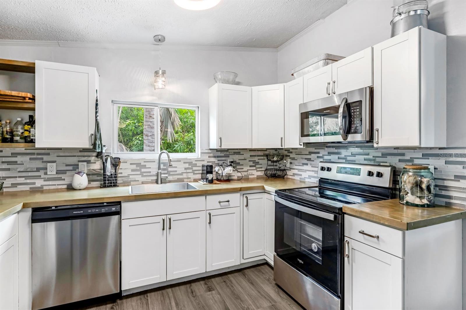 Under contract-accepting backup offers. PRICE IMPROVEMENT! Island Charmer in Bokeelia with Above-Ground Pool and Ample Outdoor Space. Welcome to this inviting Island home, featuring 2 bedrooms and 2 bathrooms, perfect for those seeking a tranquil retreat in the heart of Pine Island in SWFL. This home offers comfortable living, functional updates and plenty of natural light. Step inside to find LVP flooring and fresh paint throughout including a beautifully updated kitchen with solid wood countertops, stainless steel appliances, white shaker cabinets, and ample space, making meal prep a breeze. The residence boasts a cozy Florida room that serves as an ideal flex space for a home office, den, or additional living area. Relax and unwind in the screen enclosed lanai, which opens up to a spacious yard and a sparkling above-ground pool and sun deck —ideal for cooling off on those warm Florida days. The generous yard space includes a paved walkway leading to multiple sheds, offering convenient storage for lawn or pool equipment. This home is equipped with storm shutters, providing added peace of mind during hurricane season. Conveniently located within walking distance to the Pine Island community pool, play area, pickleball courts and more! Experience true island living on Pine Island including fishing charters, parks, and nature trails, you'll have endless opportunities for outdoor activities and exploration. Whether you're looking for a peaceful getaway or a place to enjoy Florida's active outdoor lifestyle, this property offers it all. Schedule your appointment today!