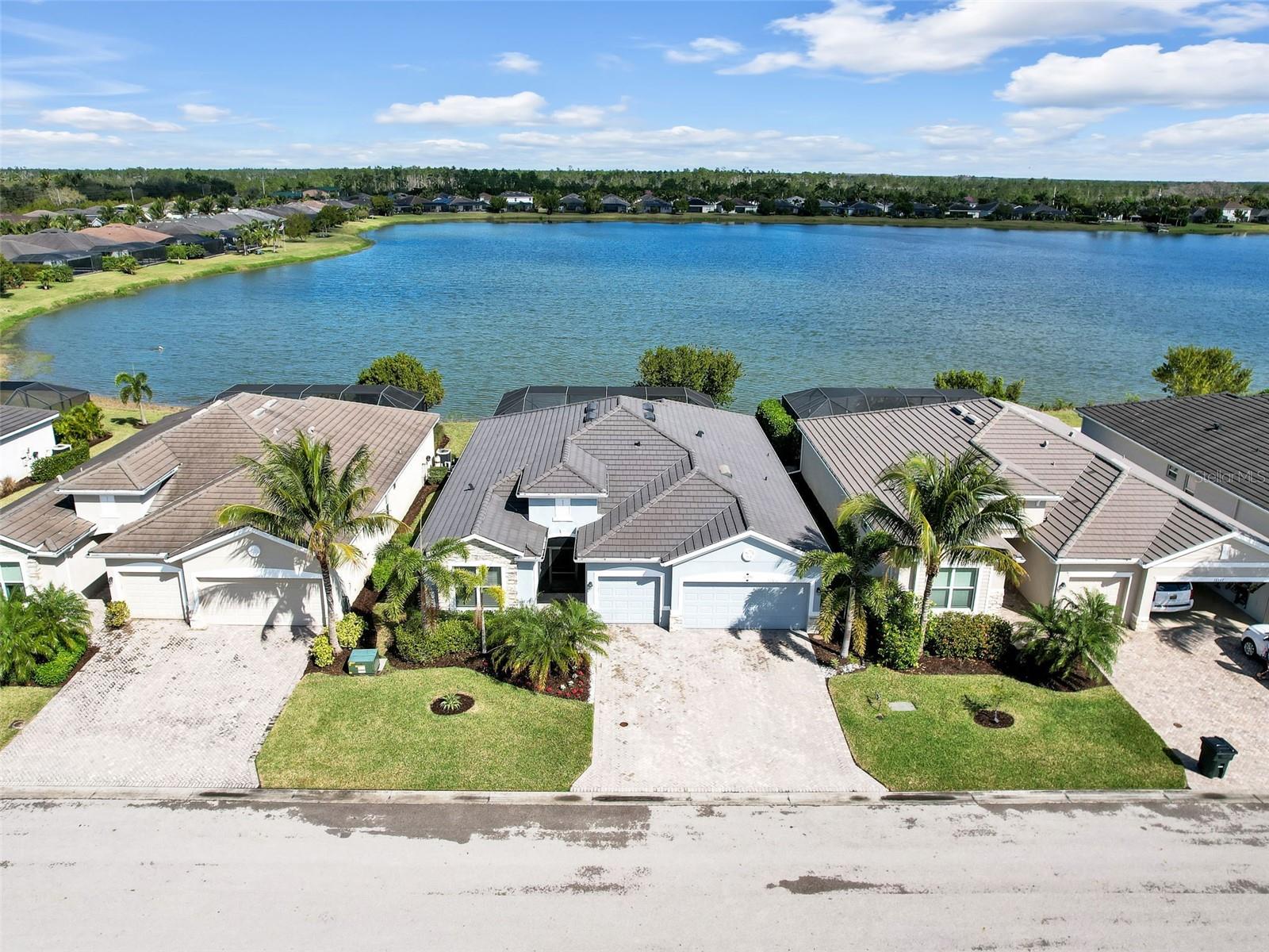 WOW! SUNRISES and SUNSETS INCLUDED!! Come see this Lakefront Beauty!! The desirable Summerville floorplan with 3 Bedrooms plus DEN, including a Guest suite w/private bath, 3 Baths, 2445 sf of bright, light living spaces, Lakeside POOL and 3 GAR GARAGE! Step through your double-door entry into the bright foyer with custom wall accents and immediate views of the Lake! Great room is open to Kitchen featuring HUGE Kitchen Island, tons of counter space, walk-in pantry, and eating area with lake views. Sliders with custom, auto-blinds lead you out to the Florida setting you won't want to leave, complete with screened Lakeside POOL and Lanai, and sunsets that never get old! Only 219 homes are in Bonita Landing surrounding a big Lake with fishing pier, play park, community gathering park, tennis court/basketball hoop, and low HOA fees that include Cable/internet, Lawncare & irrigation, and more! No flood insurance required! Only 11 miles to the beautiful Gulf Beaches!! Bedroom Closet Type: Walk-in Closet (Primary Bedroom).