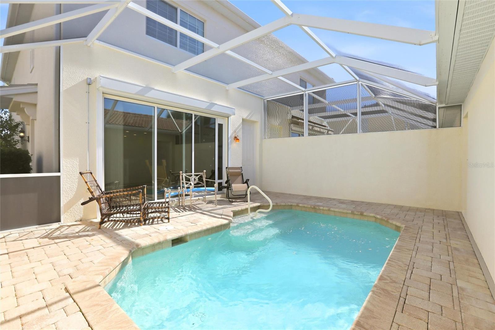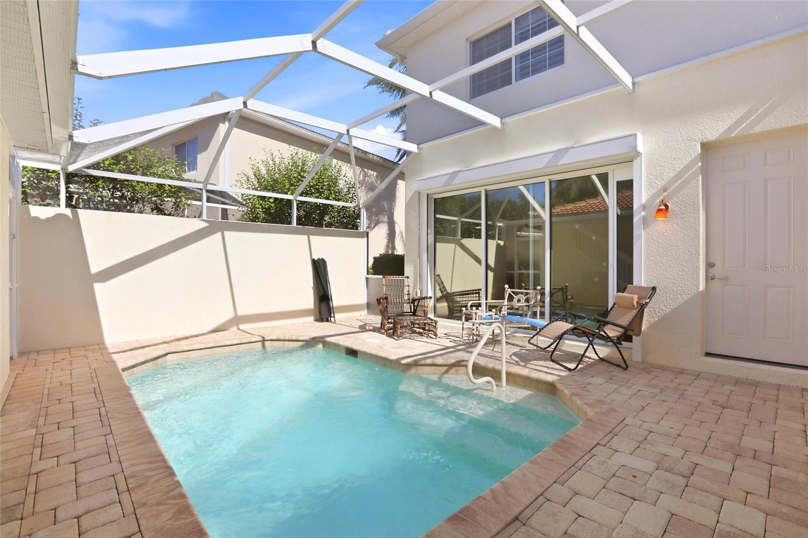 Set on a desirable pie-shaped lot, this beautifully maintained townhome offers exceptional privacy, especially around the lanai and pool. The sellers have enclosed the lanai and added a heated swimming pool with brick paver decking, creating a serene outdoor oasis framed by lush, meticulously manicured tropical landscaping and soaring palm trees. Featuring the popular Dubliner floor plan, this spacious 3-bedroom, 3-bath residence is located in the highly sought-after, gated community of Village Walk of Bonita Springs. With approximately 1,900 square feet under air and a two-car garage, this rarely available home offers dual master suites, with two of the three bedrooms featuring private balconies overlooking tranquil water views—plus no homes directly across the street, adding to the sense of privacy. The modern kitchen overlooks the expansive great room and is thoughtfully designed with granite countertops, a matching tile backsplash, upgraded 36" Maple Glazed cabinetry with crown molding, stainless steel appliances, and a convenient dining area. The first-floor bedroom includes a walk-in closet, private balcony, and full bathroom—perfect for guests or flexible living arrangements. Plush carpeting lines the staircase to the second floor, where two expansive master suites await, each with walk-in closets. One suite features a private balcony, while the bathrooms include a walk-in tub in one and a dual-sink vanity with a walk-in shower in the other. The laundry room is conveniently located upstairs. Additional highlights include plantation shutters, diagonal tile flooring, an upgraded security system directly connected to fire and police services, pre-wiring for surround sound, epoxy-coated garage flooring, electric storm shutters, and accordion storm shutters on windows and doors for added protection and peace of mind. Village Walk is renowned for its low HOA fees and resort-style amenities, including two swimming pools, an on-site café and full-service restaurant, post office, gas station, bank, fitness center, clay tennis courts, bocce ball and basketball courts, library, hair salon, and miles of scenic jogging and bike paths. Perfectly positioned just east of downtown Bonita Springs, the community offers quick access to FGCU, Southwest Florida International Airport, premier shopping, fine dining, and the white-sand beaches of Bonita Springs and Fort Myers Beach. **PLEASE ENJOY THE 3D INTERACTIVE VIRTUAL TOUR ASSOCIATED WITH THIS LISTING**